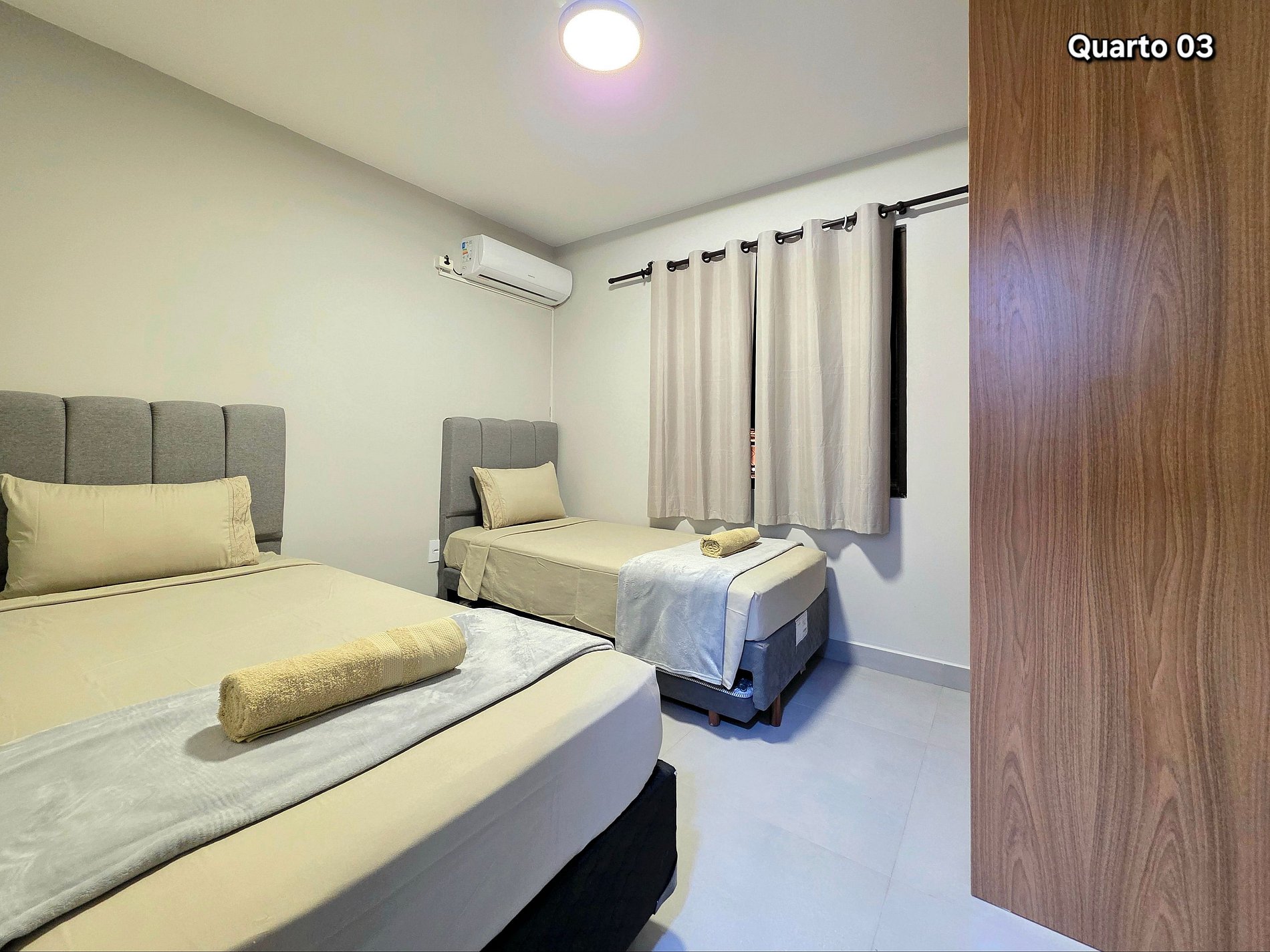 Quarto 03: 01 cama de queensize + 01 cama de solteiro auxiliar (com ar condicionado)