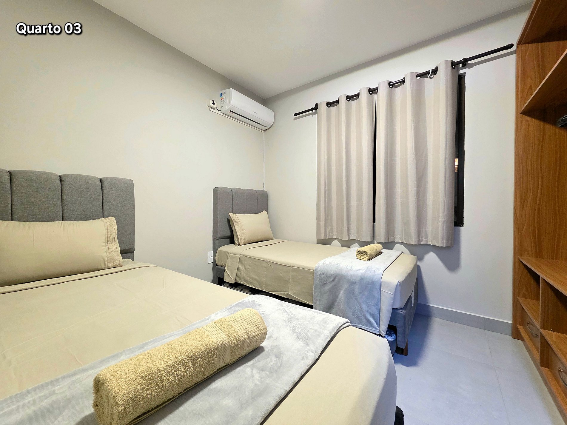 Quarto 03: 01 cama de queensize + 01 cama de solteiro auxiliar (com ar condicionado)