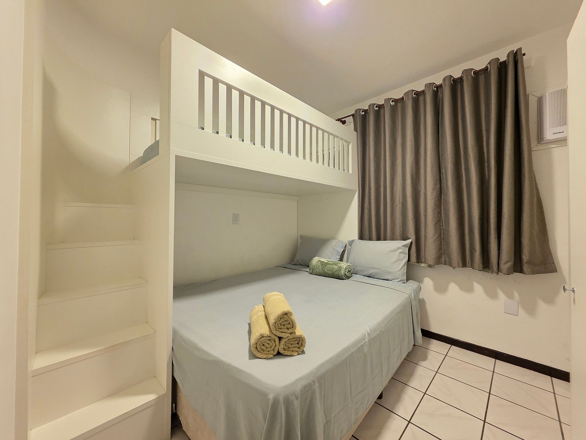 Quarto 02: 01 cama casal + 01 beliche para 1 pessoa (com ar condicionado)