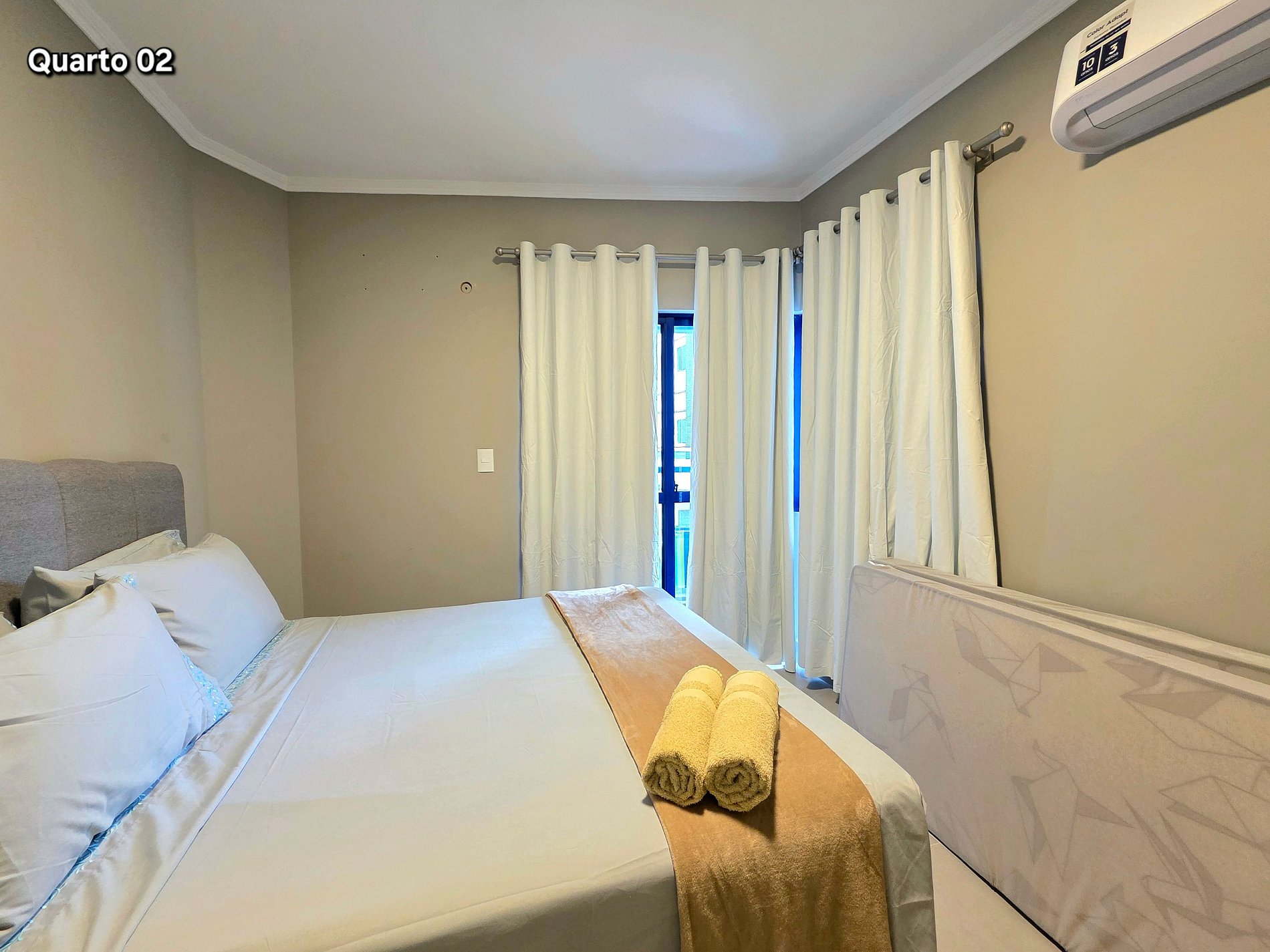 Quarto 02: 01 cama de casal + 01 cama de solteiro + 01 colchão avulso de solteiro (com ar condicionado)