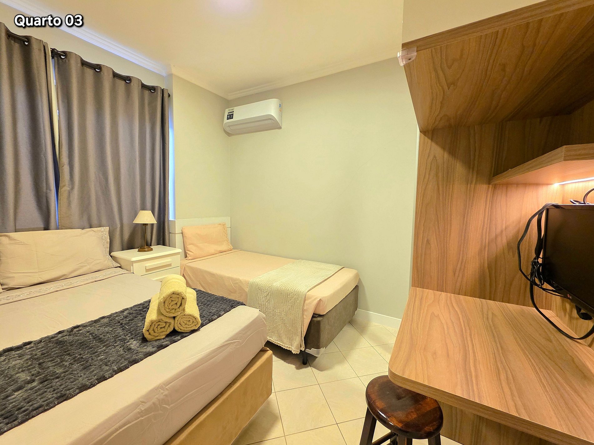 Quarto 02: 01 cama de casal + 01 cama de solteiro (com ar condicionado)