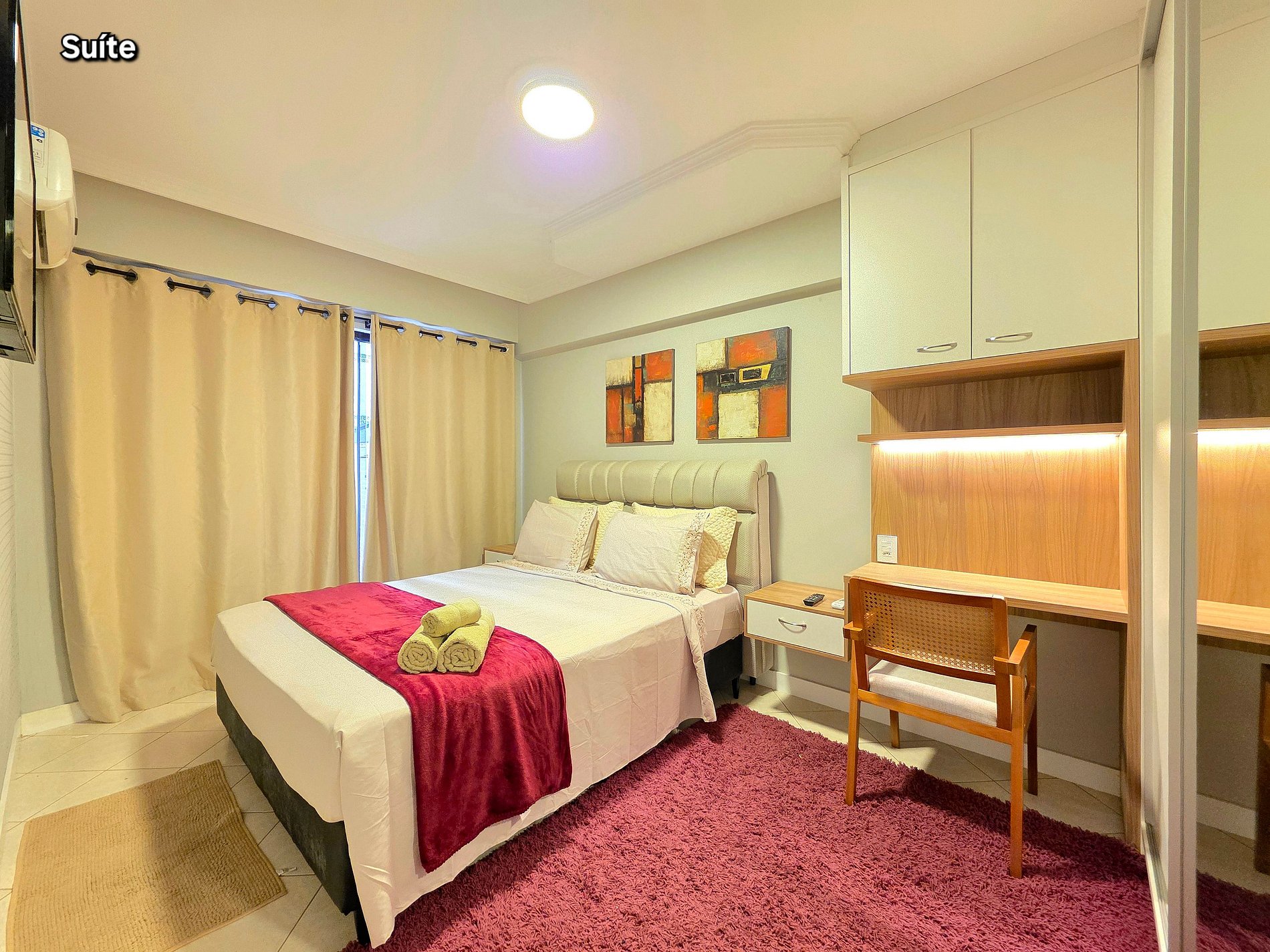Quarto 01: 01 suíte com 01 cama de queensize (com banheiro e ar condicionado)