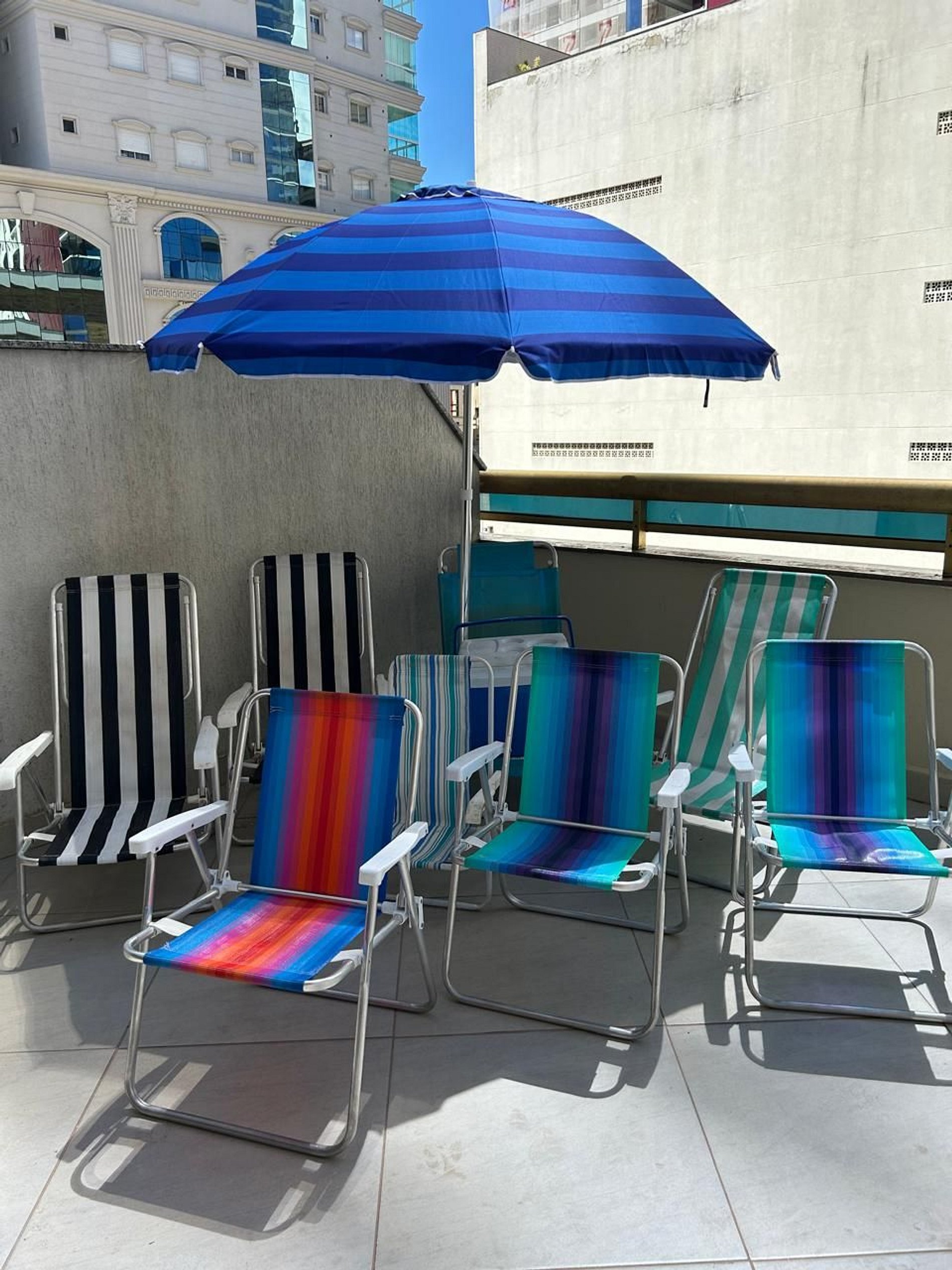 Kit Praia: 4 cadeiras + 1 guardasol + 1 cooler