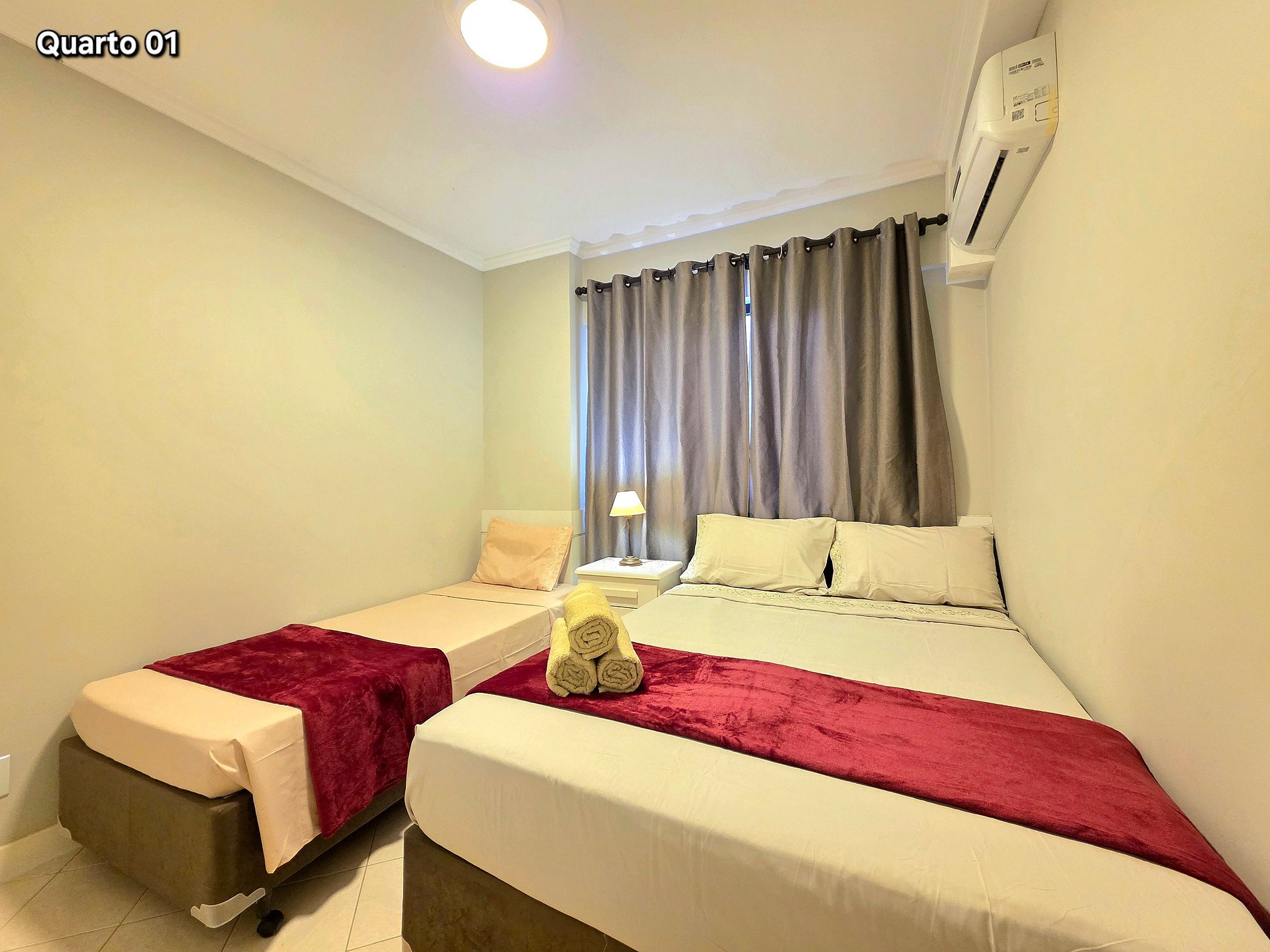 Quarto 02: 01 cama de casal + 01 cama de solteiro (com ar condicionado)