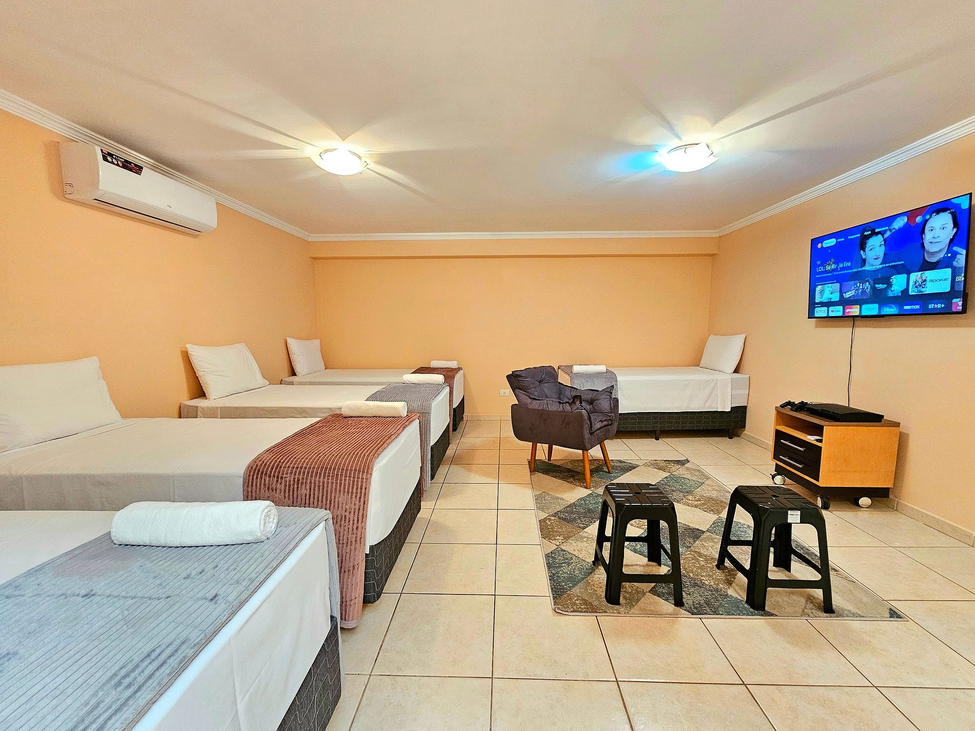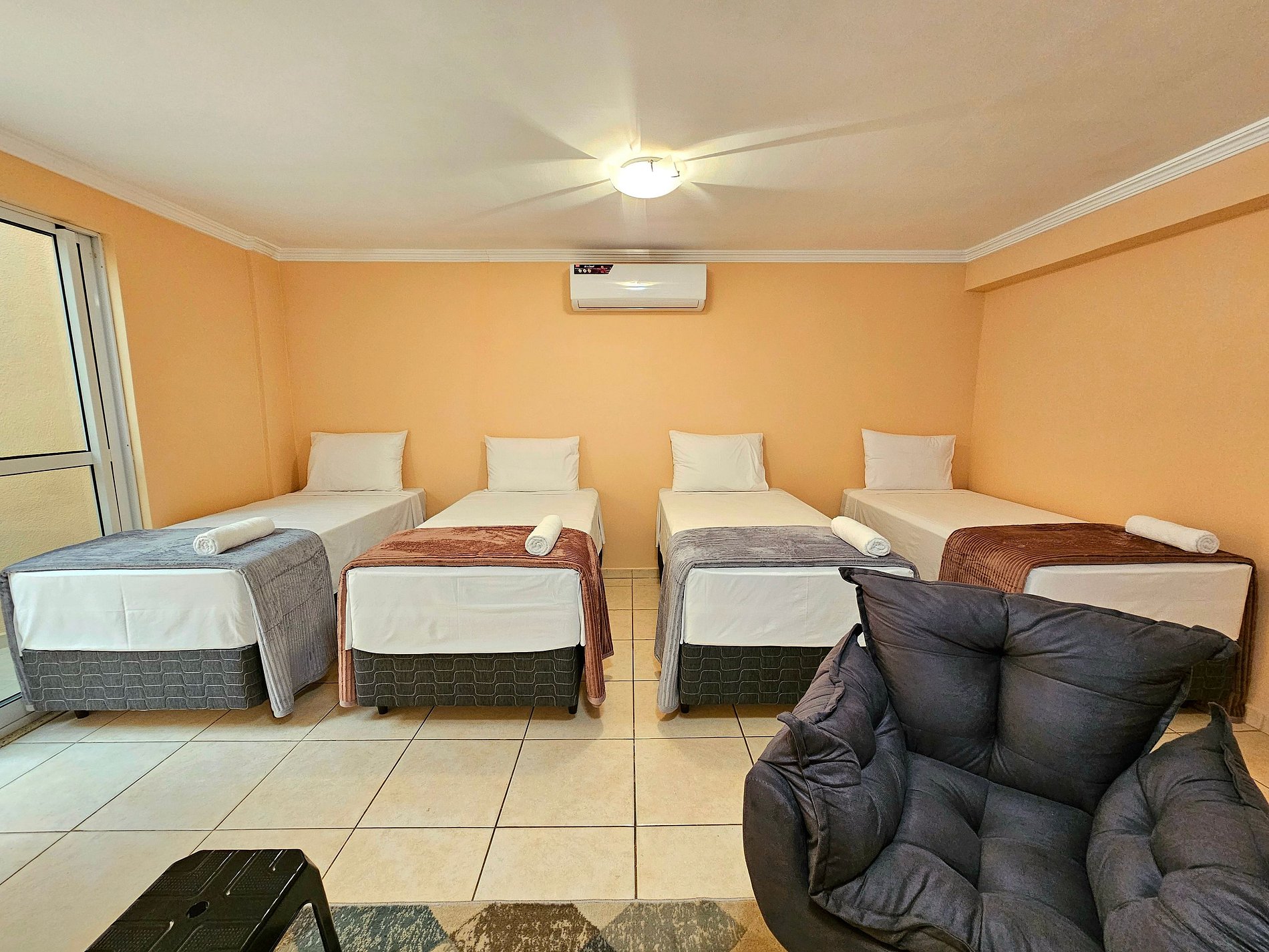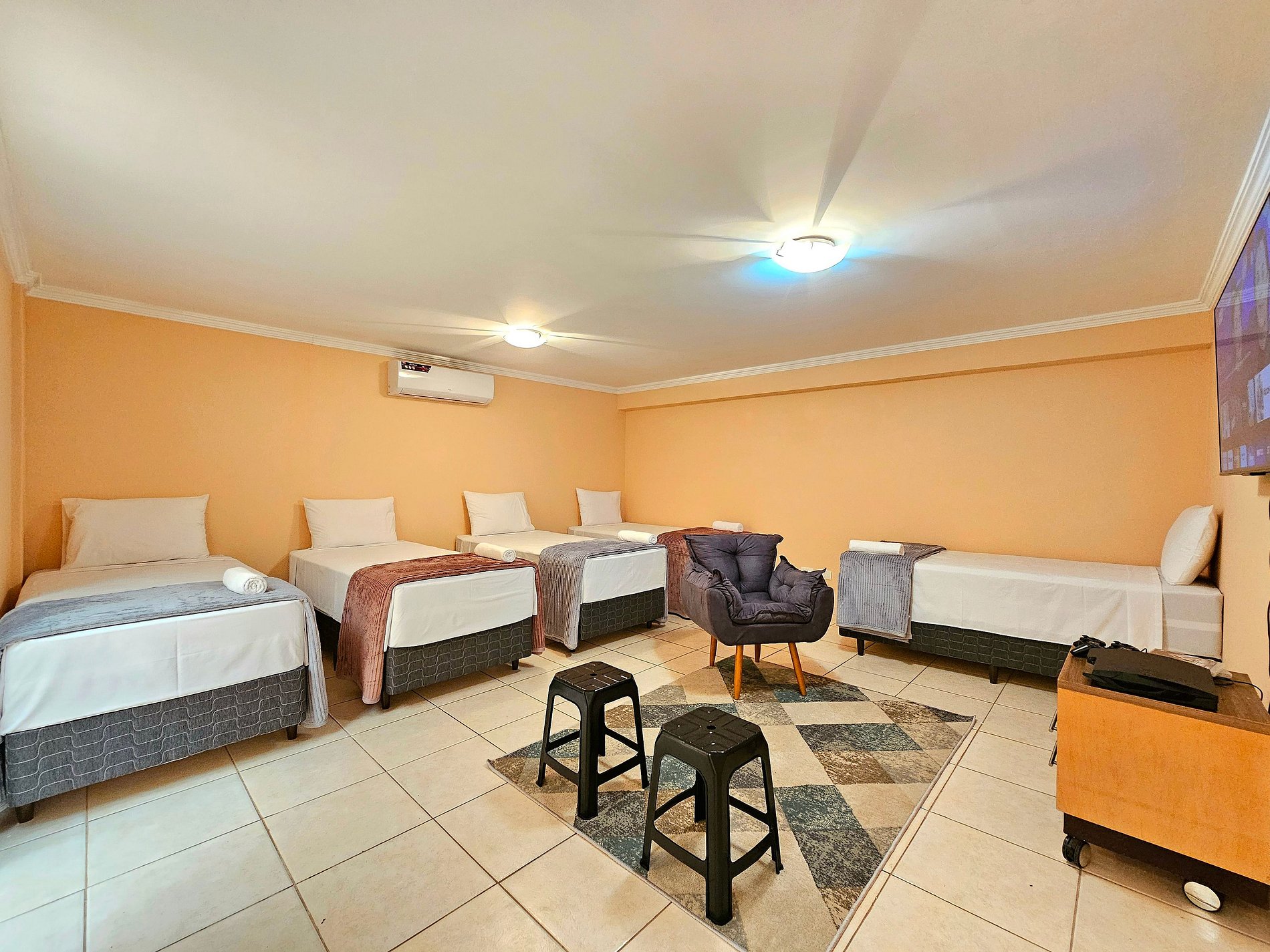 01 quarto com 05 camas de solteiro