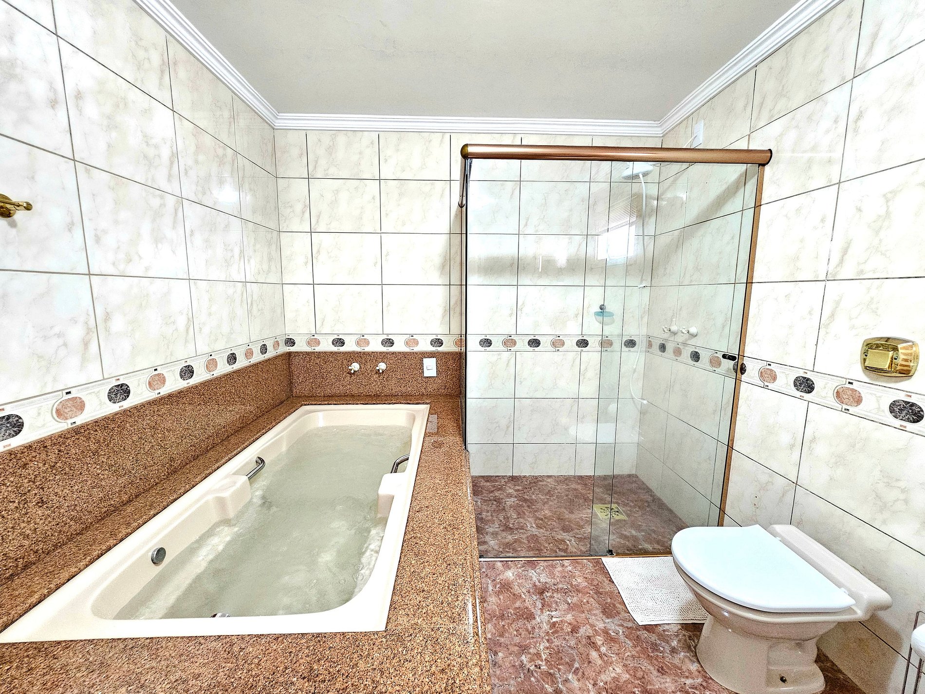 01 suite com banheira e hidro com 02 camas de casal