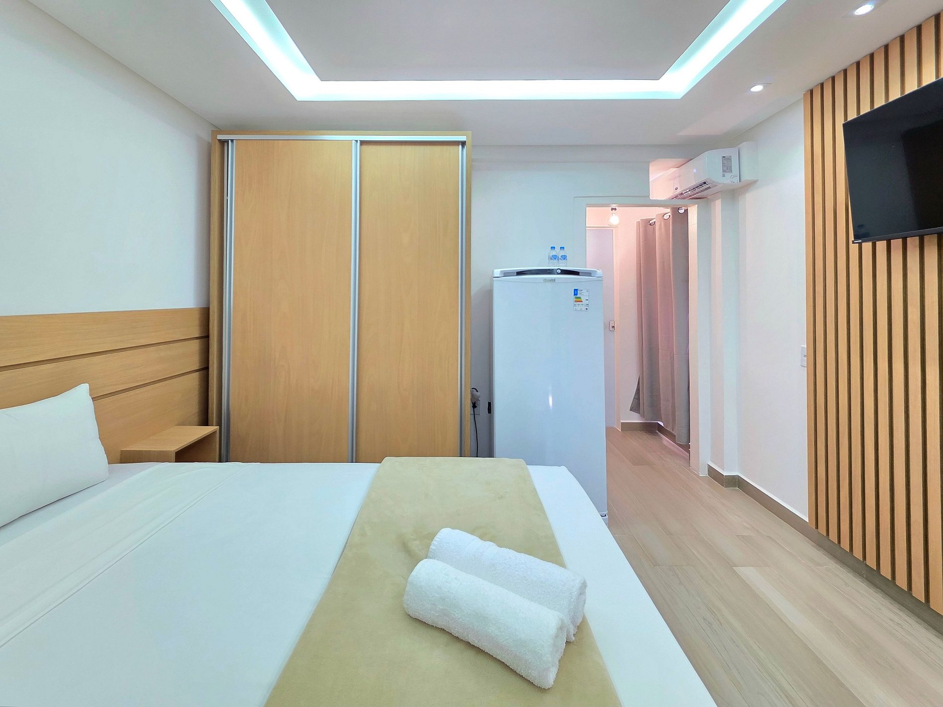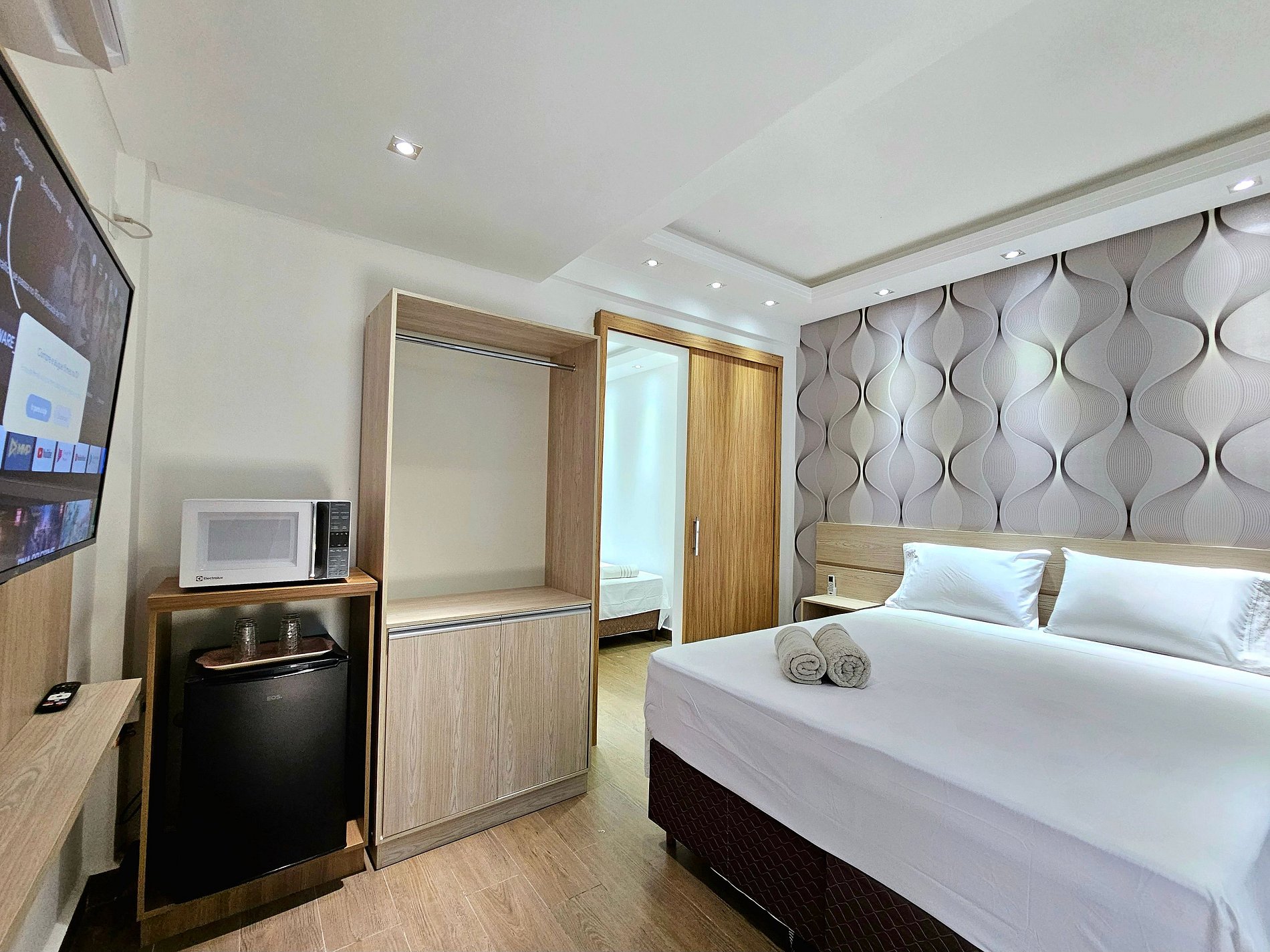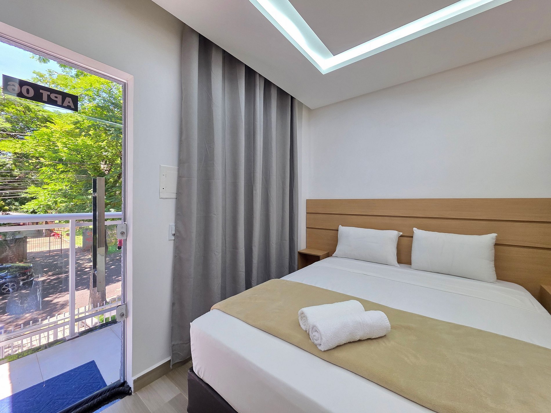 Studios novos no centro de Foz do Iguaçu, para até 4 pessoas - Cada apartamento é um espaço com 2 ambientes conectados e o banheiro privado. A poucos metros da principal avenida de restaurantes de Foz. 15 minutos dos principais atrativos como Cataratas e Paraguai. Seu PET é muito bem-vindo. Incluso roupa de cama e toalhas de banho. Ambiente climatizado com SmartTV, microondas e frigobar. Incluso WIFI e garagem. Somos anfitriões comprometidos para que você tenha uma excelente estadia.