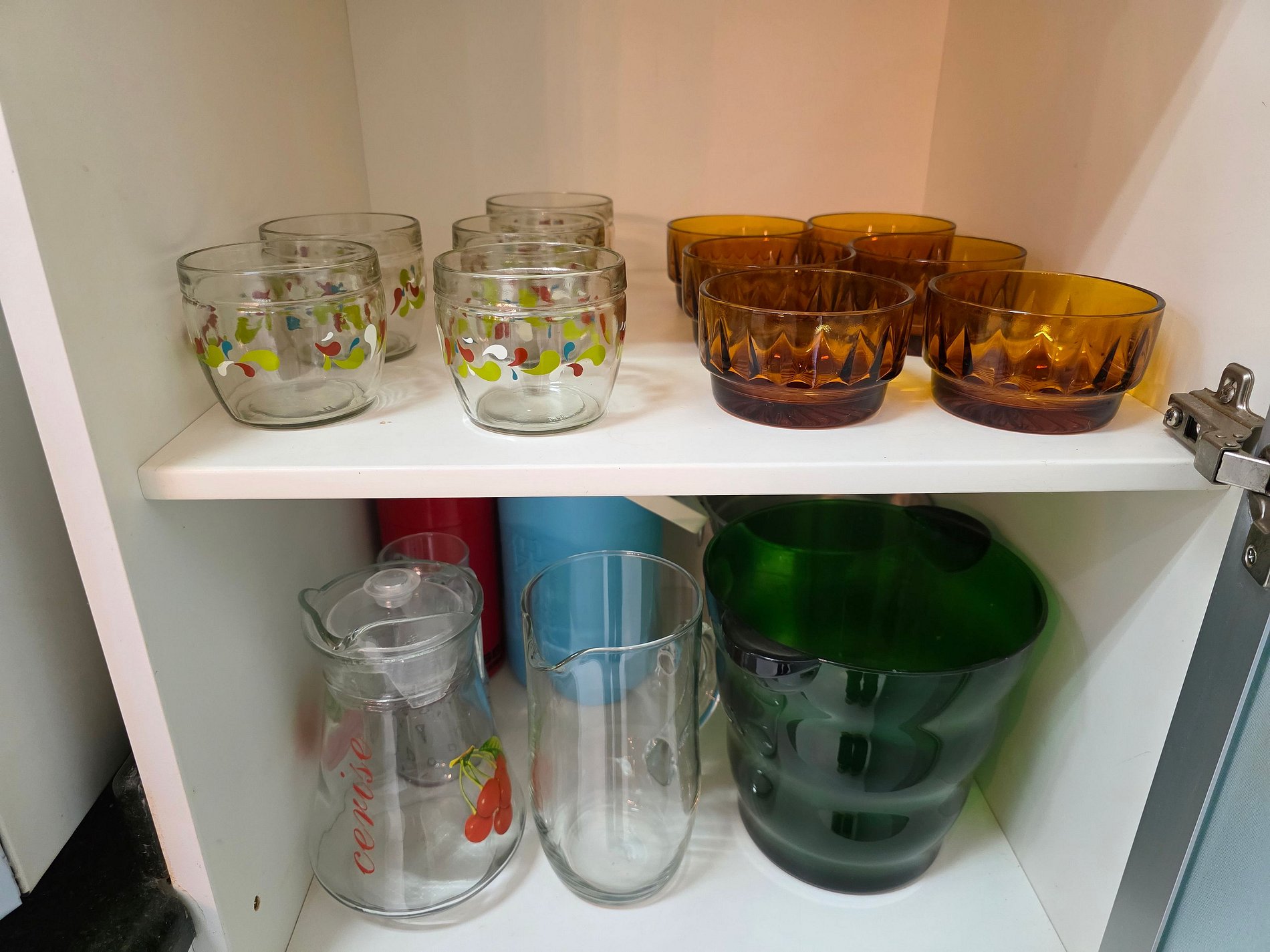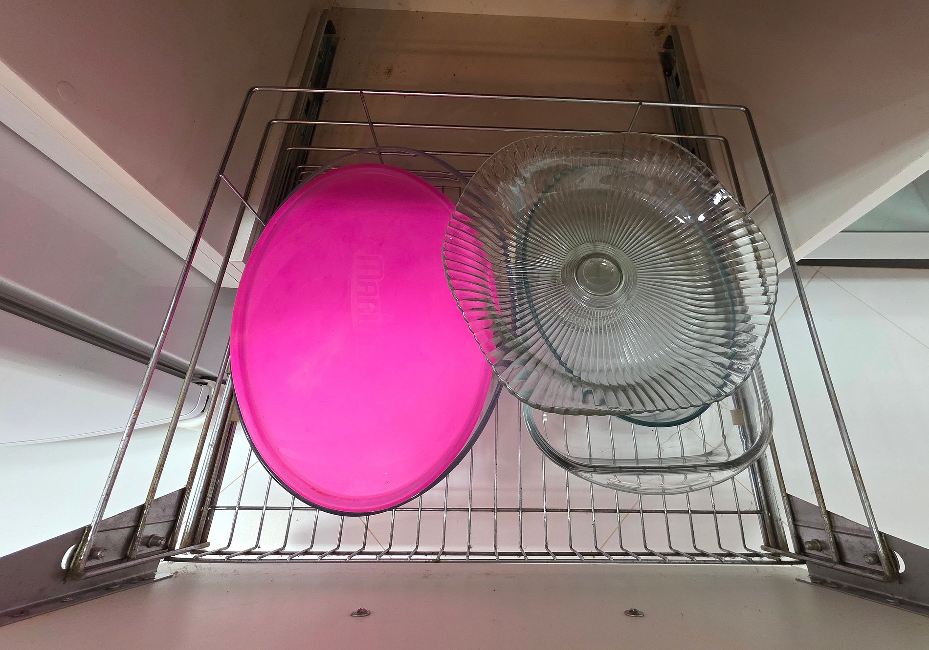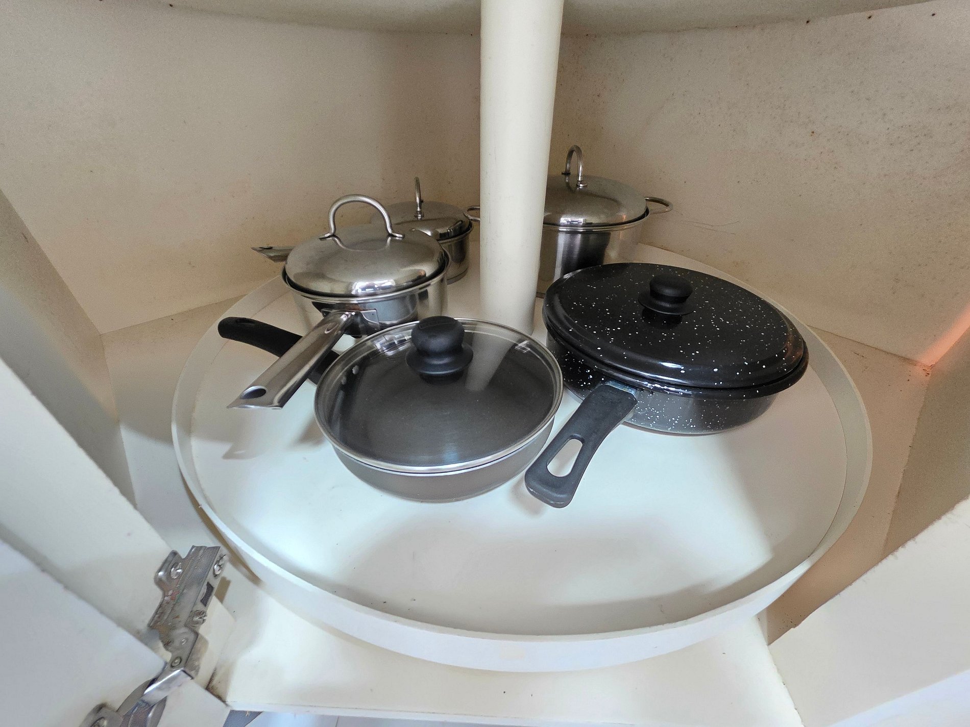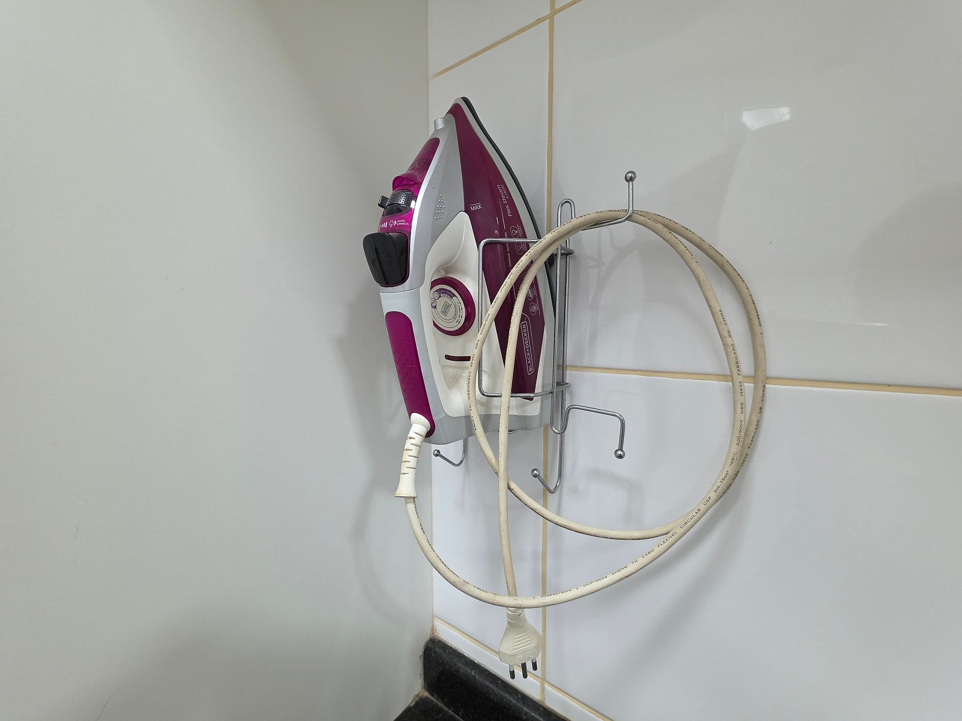 Cozinha completa com utensílios e louças para as refeições, microondas, forno, liquidificador, airfryer.