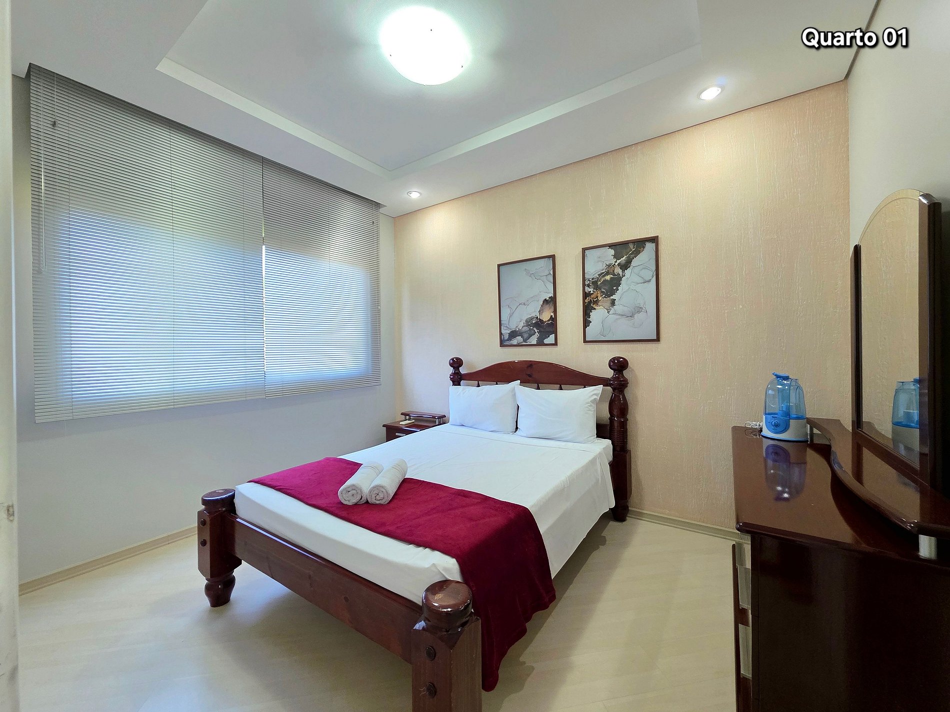 Quarto 01: suite com banheira aquecimento solar e hidro com 01 cama de queensize (com ar condicionado)