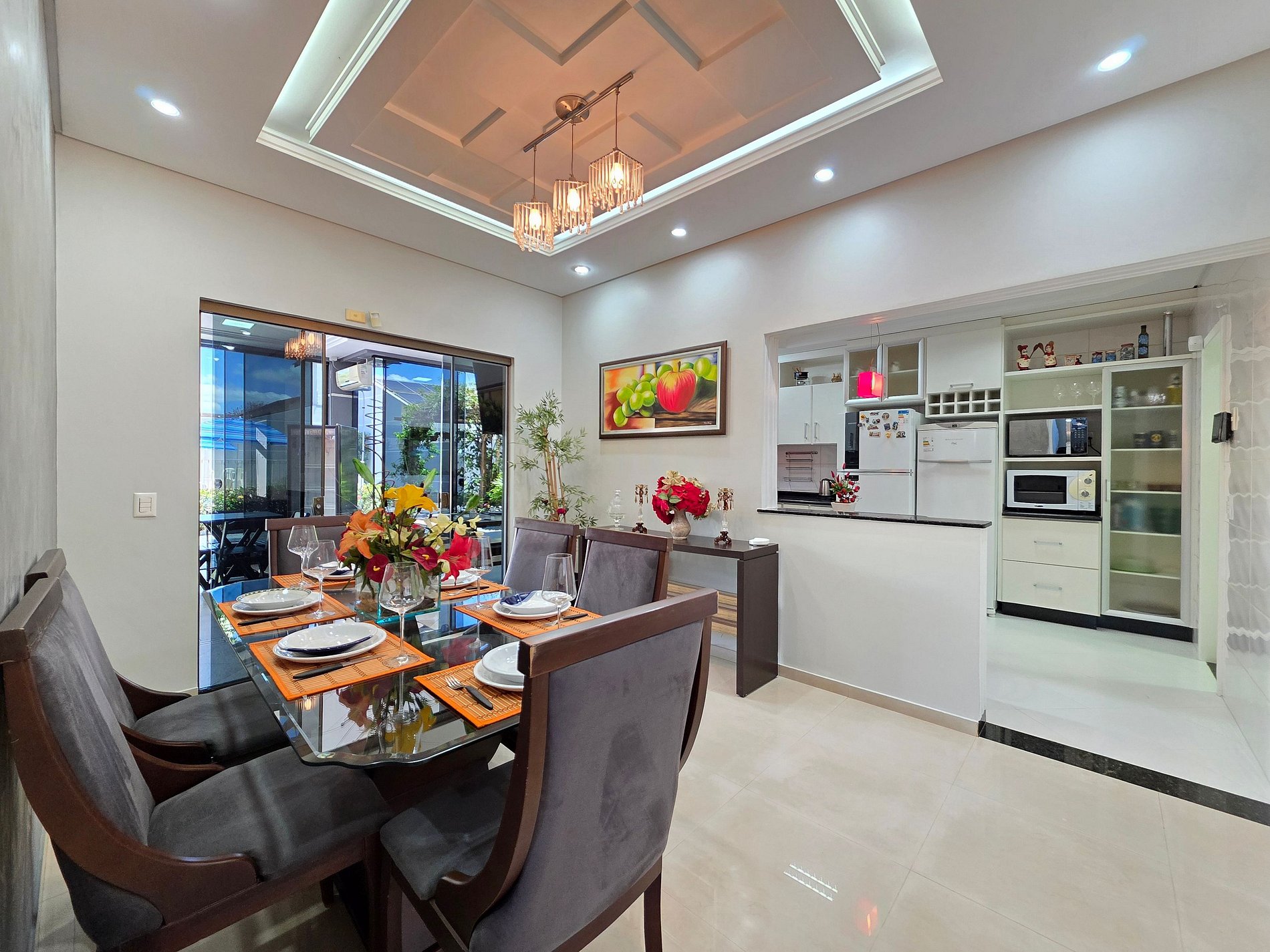 Descubra o seu refúgio em Foz do Iguaçu! Casa moderna e ampla oferece 4 quartos confortáveis, ideal para famílias ou grupos. Relaxe nas 2 jacuzzis ou aproveite a ampla piscina. Todos os ambientes climatizados, inclusive a área gourmet. Localizada em um bairro nobre, você estará a apenas 5 minutos do centro e cerca de 15 a 20 minutos das incríveis Cataratas do Iguaçu e da fronteira com o Paraguai. Com um ambiente acolhedor e elegante, sua estadia será inesquecível.