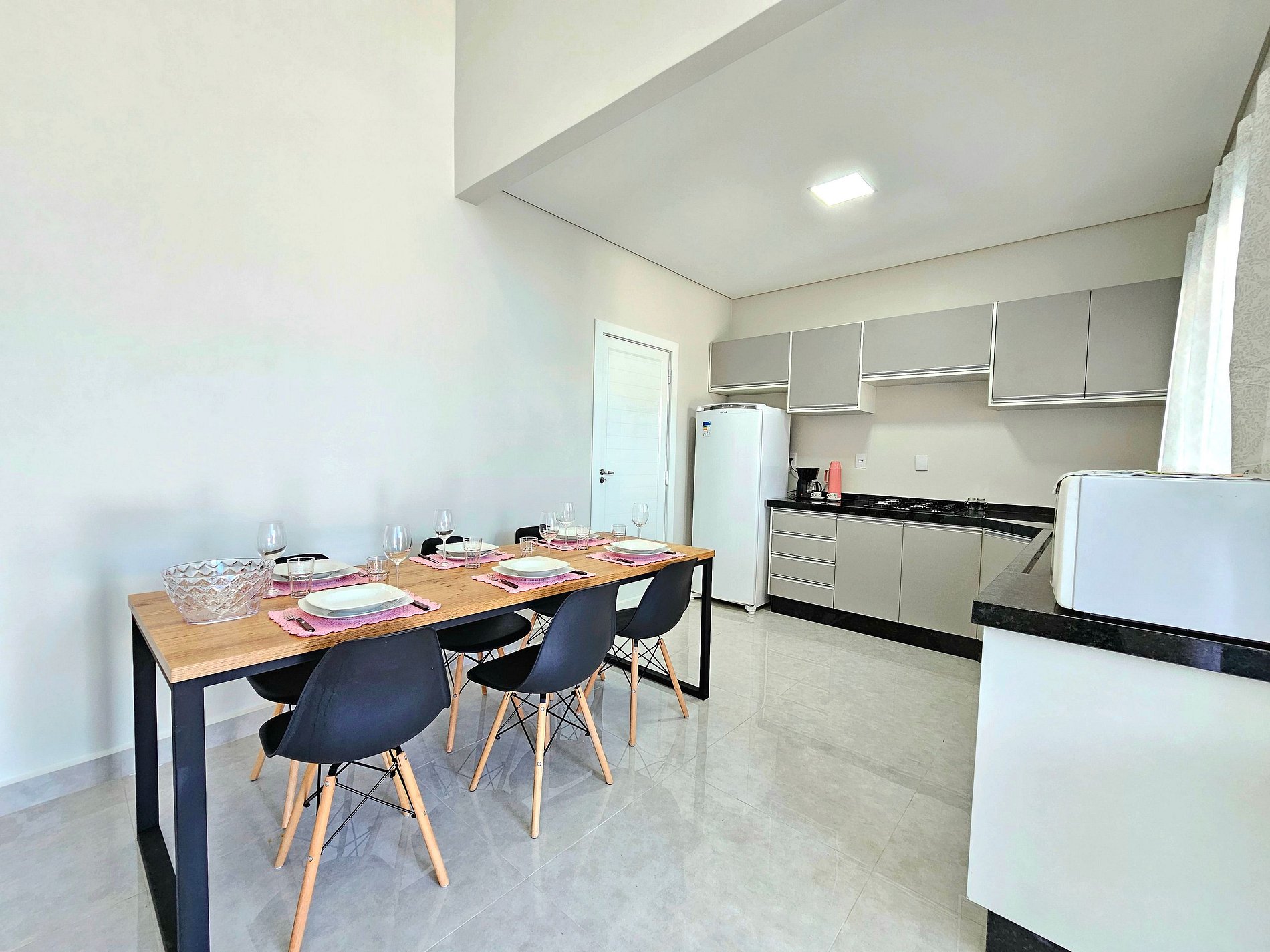 Cozinha completa com todos os utensílios domésticos, cafeteira elétrica, sanduicheira, microondas...