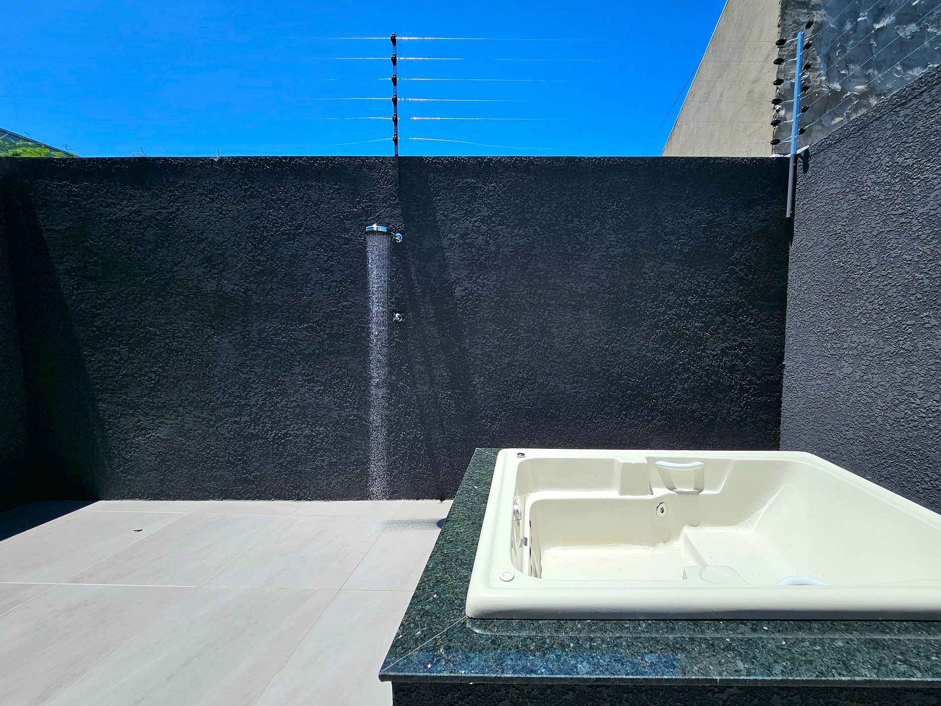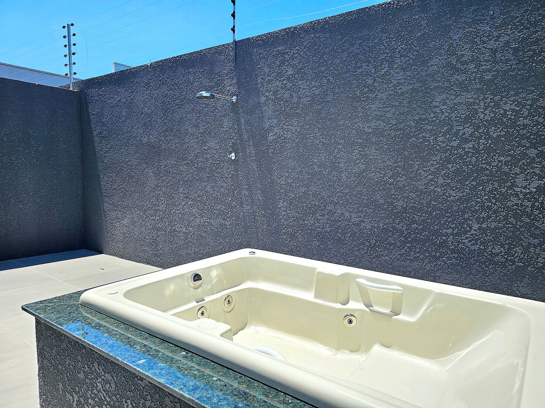 Banheira com hidromassagem na área de lazer da casa, agua fria somente.