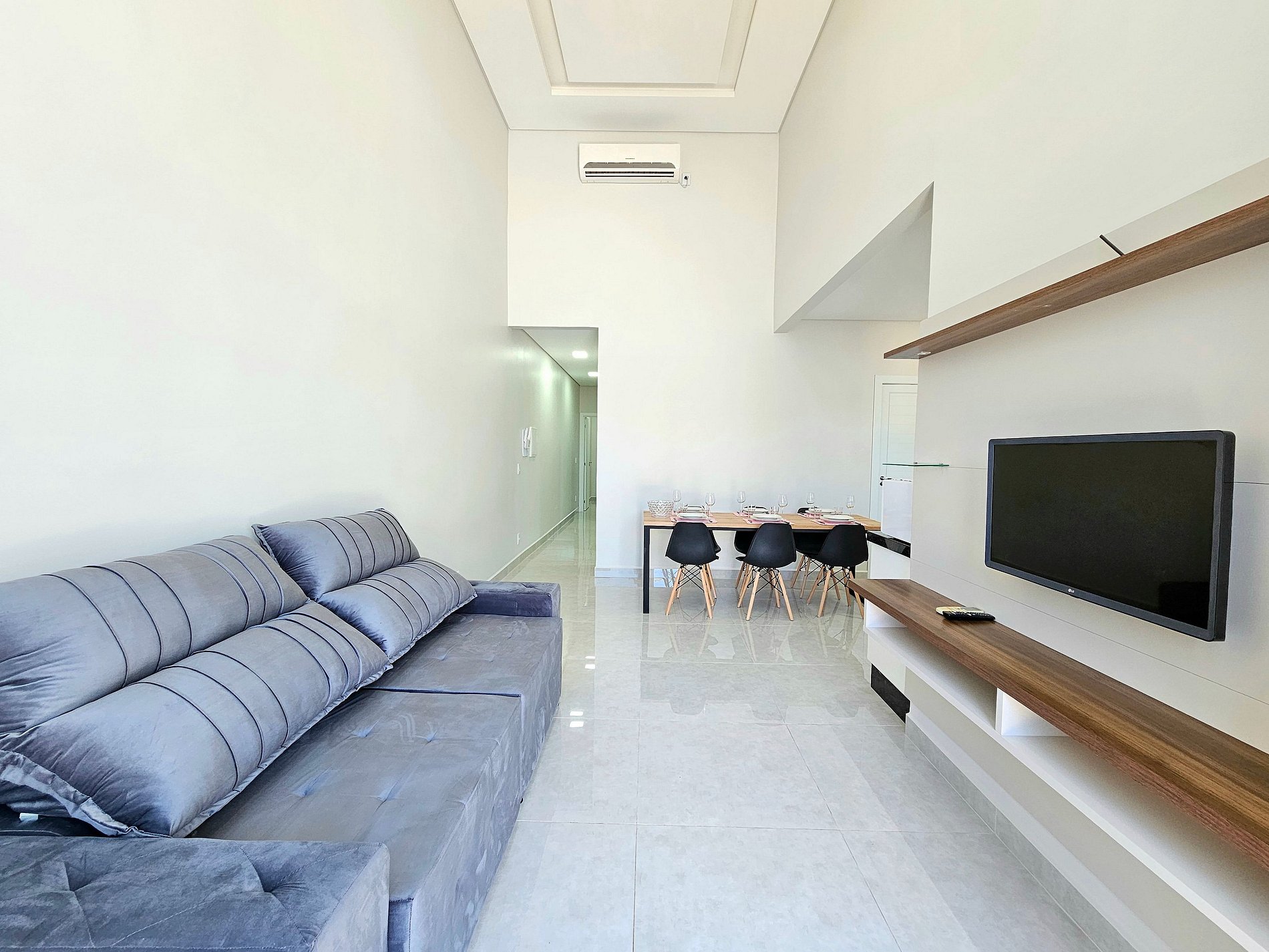 Sala de estar com o sofá cama e smartTV (sofá cama quando 8 hospedes, deixamos a roupa de cama e travesseiros)