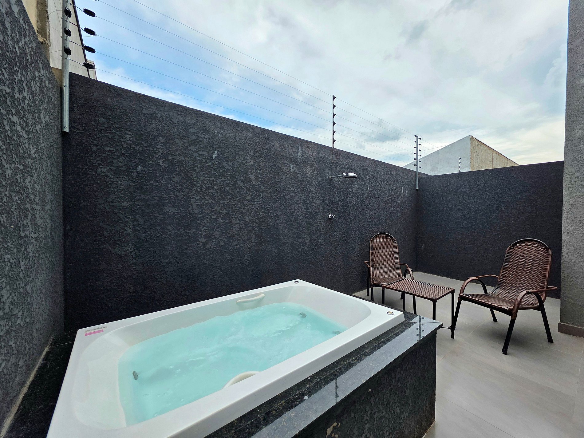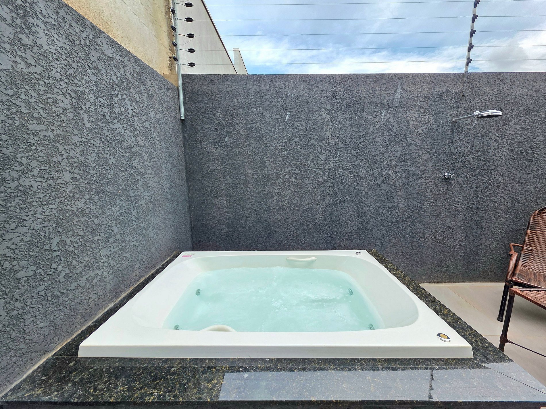 Banheira com hidromassagem na área de lazer da casa, agua fria somente.