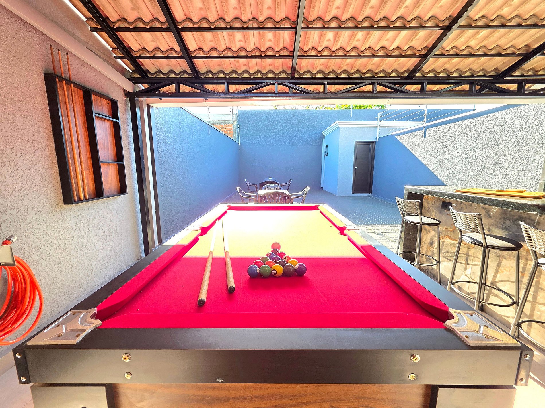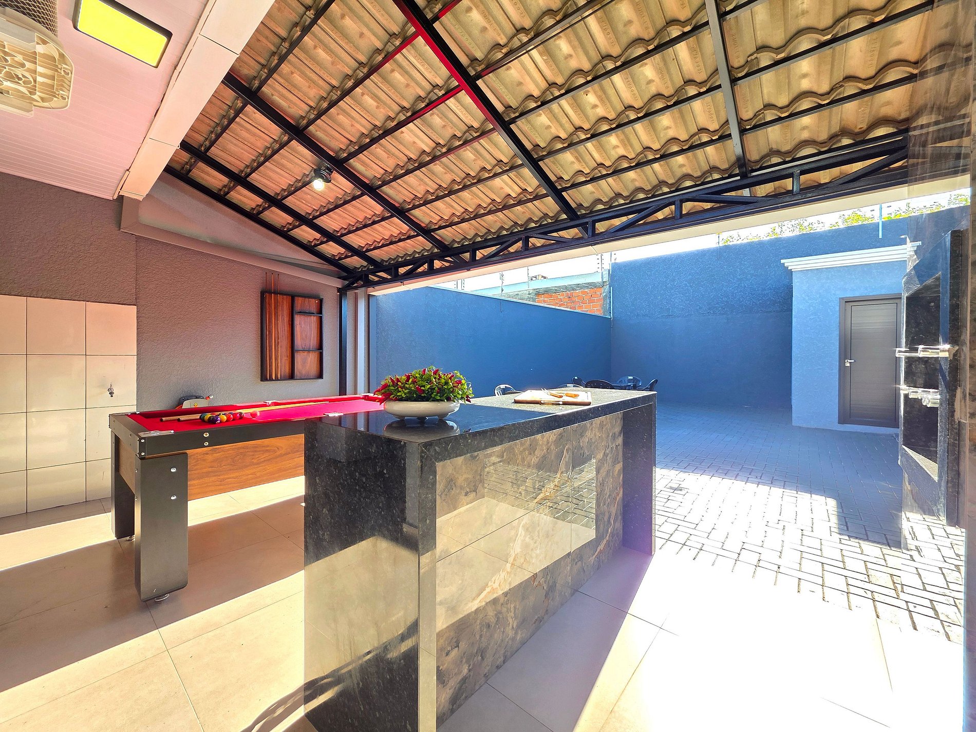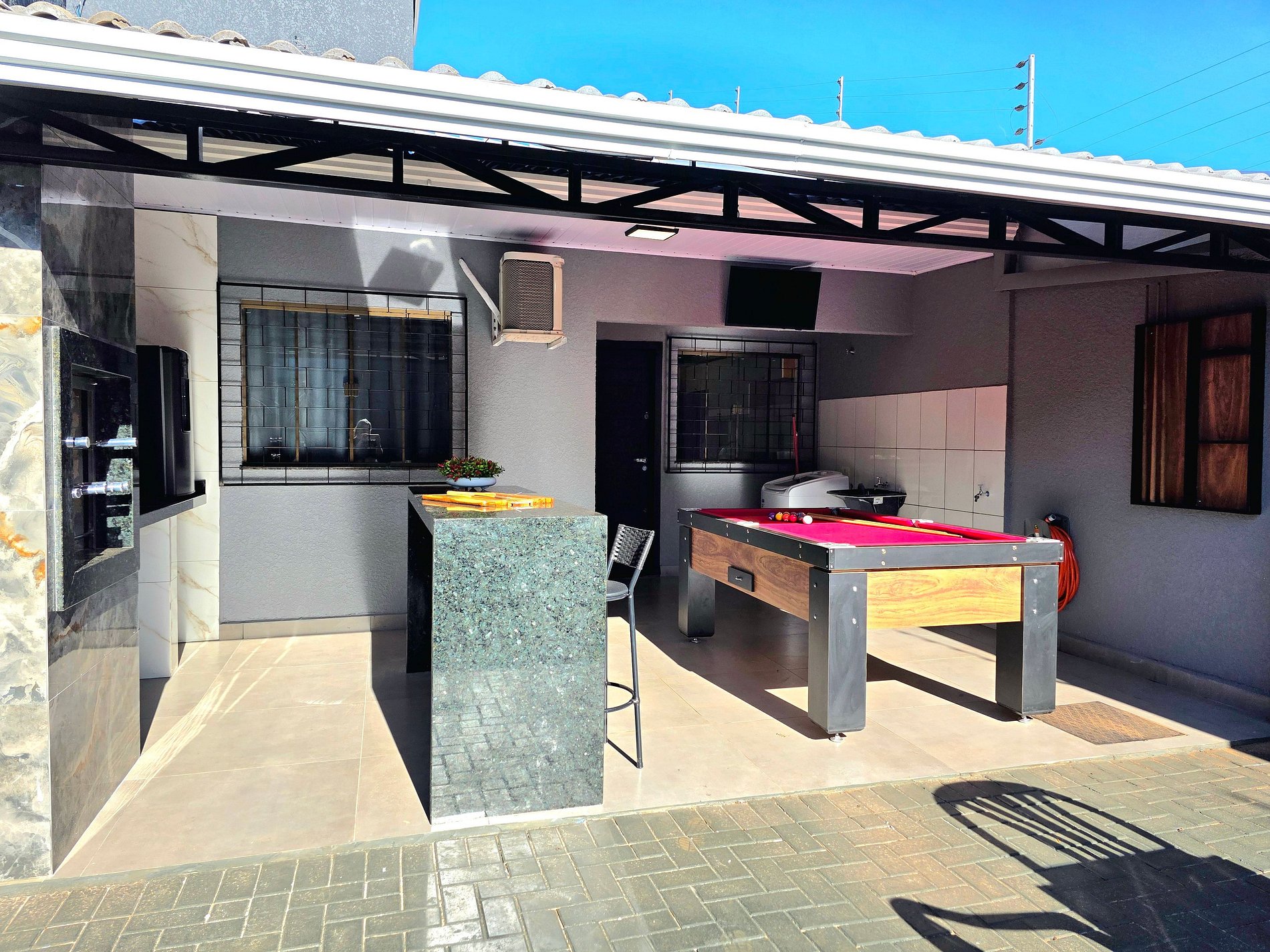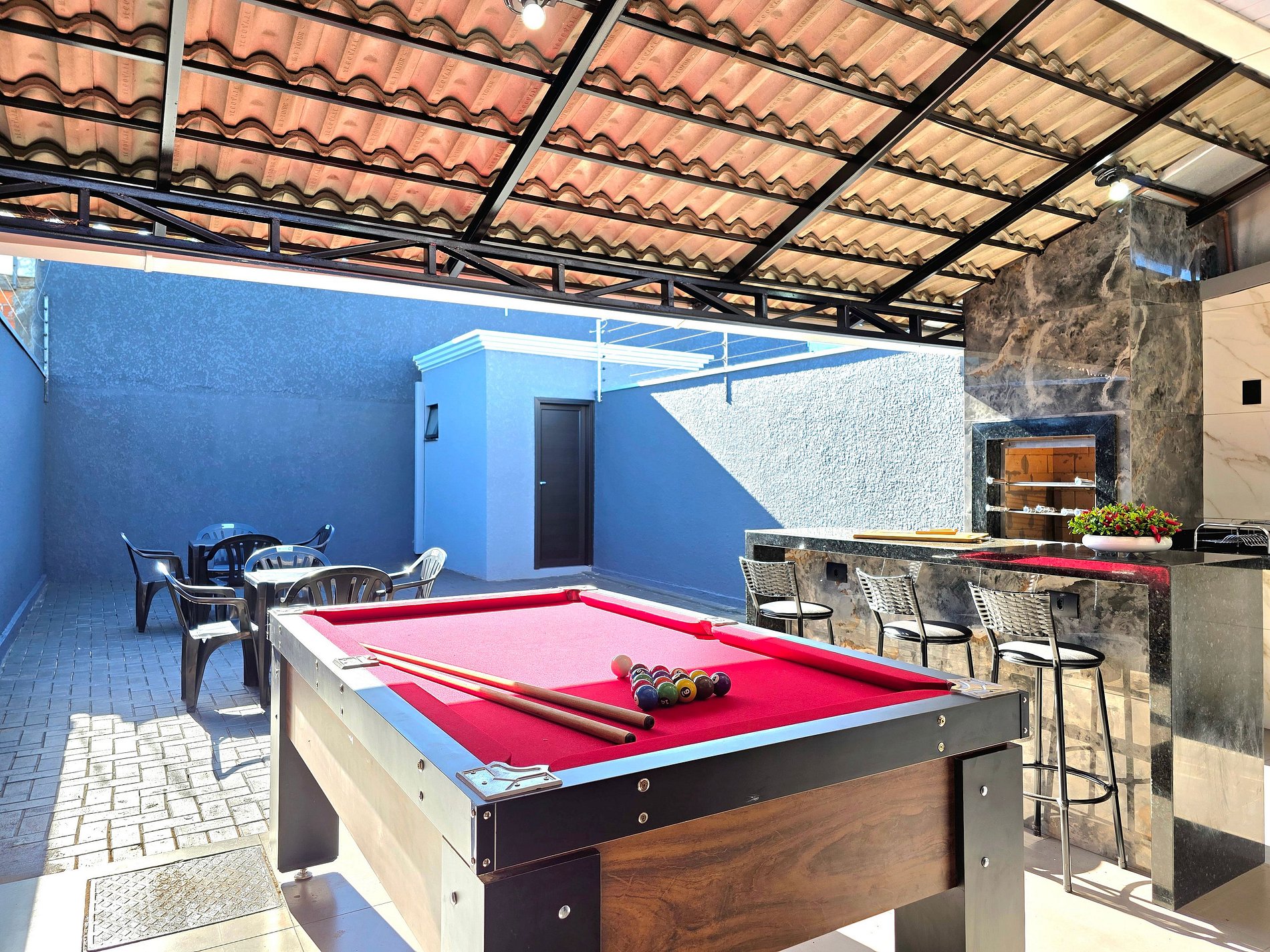 Casa com 3 quartos e uma área de lazer excelente para família e amigos com mesa de sinuca e churrasqueira. 10 minutos do Paraguai e da Itaipu, 30 minutos das Cataratas e Argentina. Para até 9 pessoas, com roupa de cama e toalha de banho, seu PET é bem-vindo.Cozinha bem equipada, cervejeira na área da churrasqueira. Garagem com portão eletrônico e Wi-Fi. Ar condicionado nos 3 quartos e na sala. Bairro seguro com supermercado. Somos anfitriões comprometidos com você.
