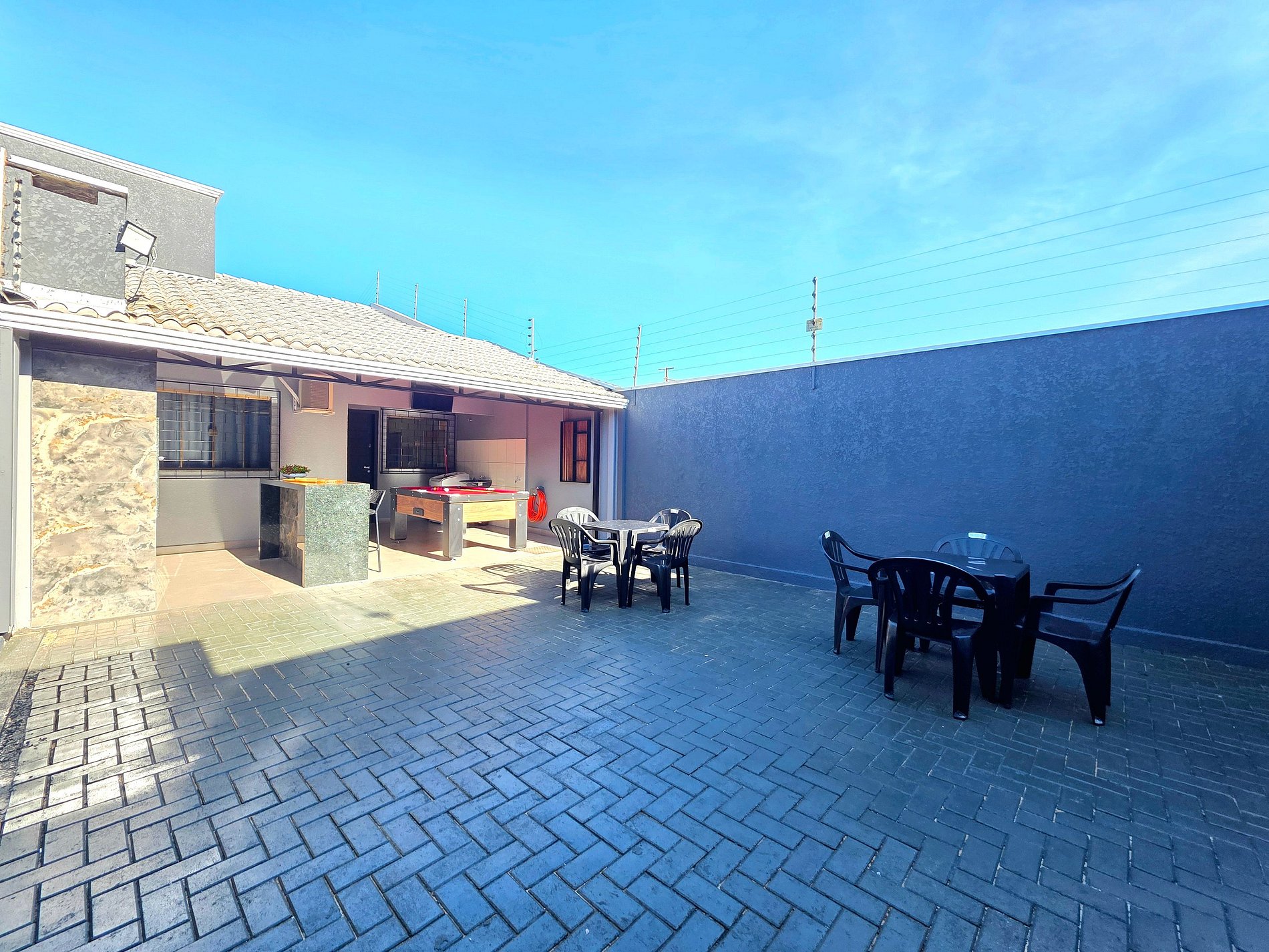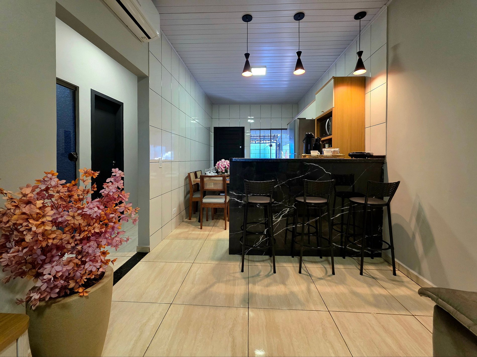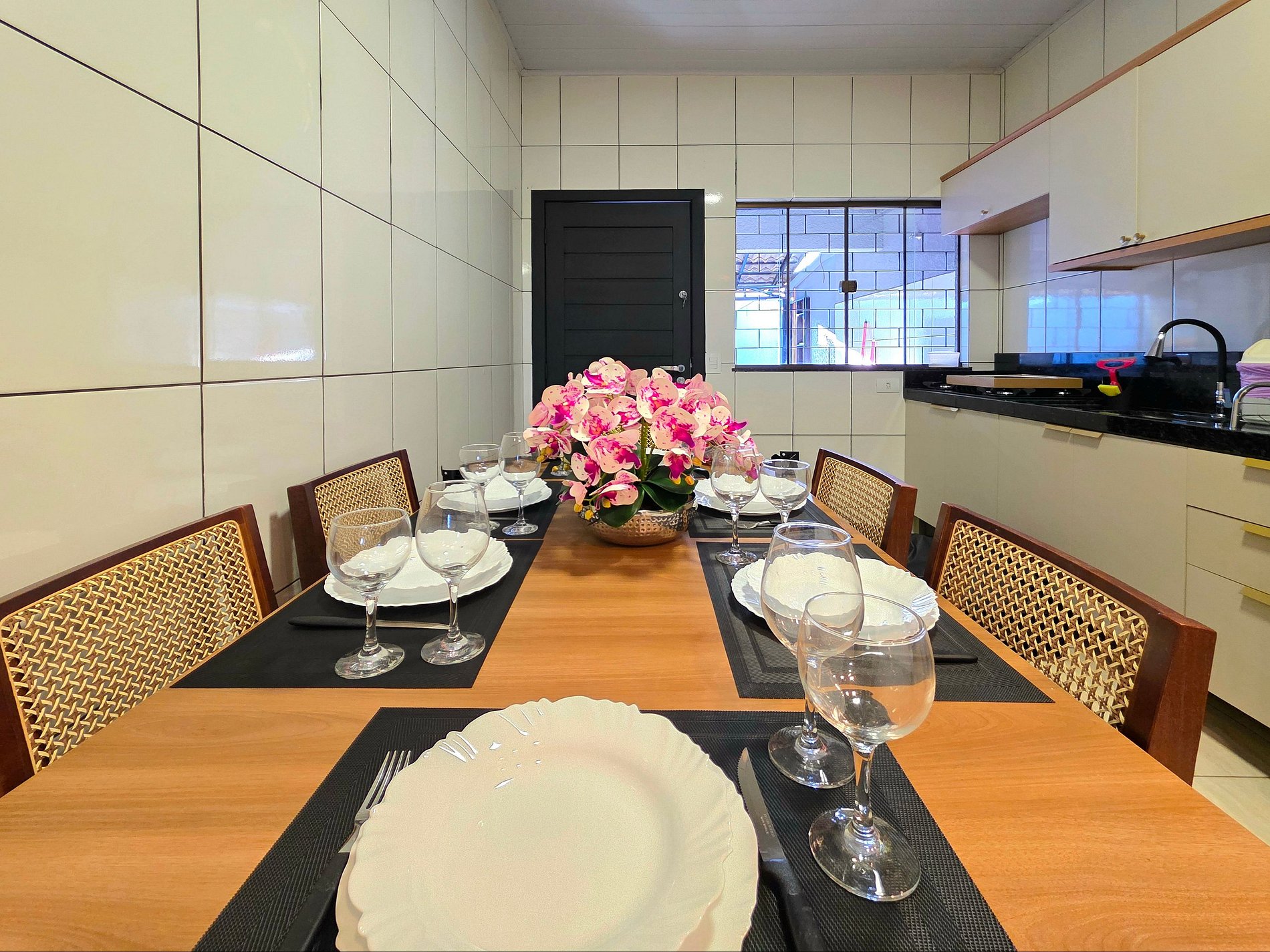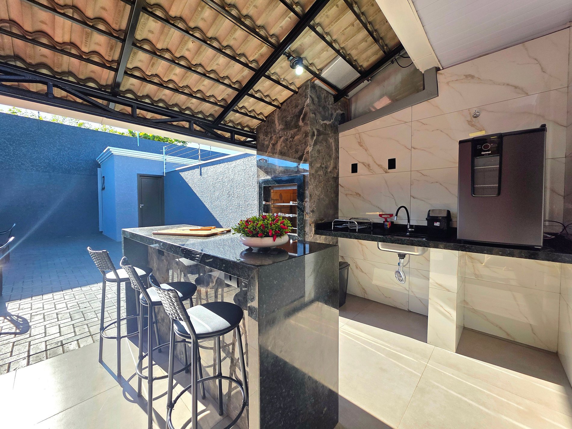 Casa com 3 quartos e uma área de lazer excelente para família e amigos com mesa de sinuca e churrasqueira. 10 minutos do Paraguai e da Itaipu, 30 minutos das Cataratas e Argentina. Para até 9 pessoas, com roupa de cama e toalha de banho, seu PET é bem-vindo.Cozinha bem equipada, cervejeira na área da churrasqueira. Garagem com portão eletrônico e Wi-Fi. Ar condicionado nos 3 quartos e na sala. Bairro seguro com supermercado. Somos anfitriões comprometidos com você.
