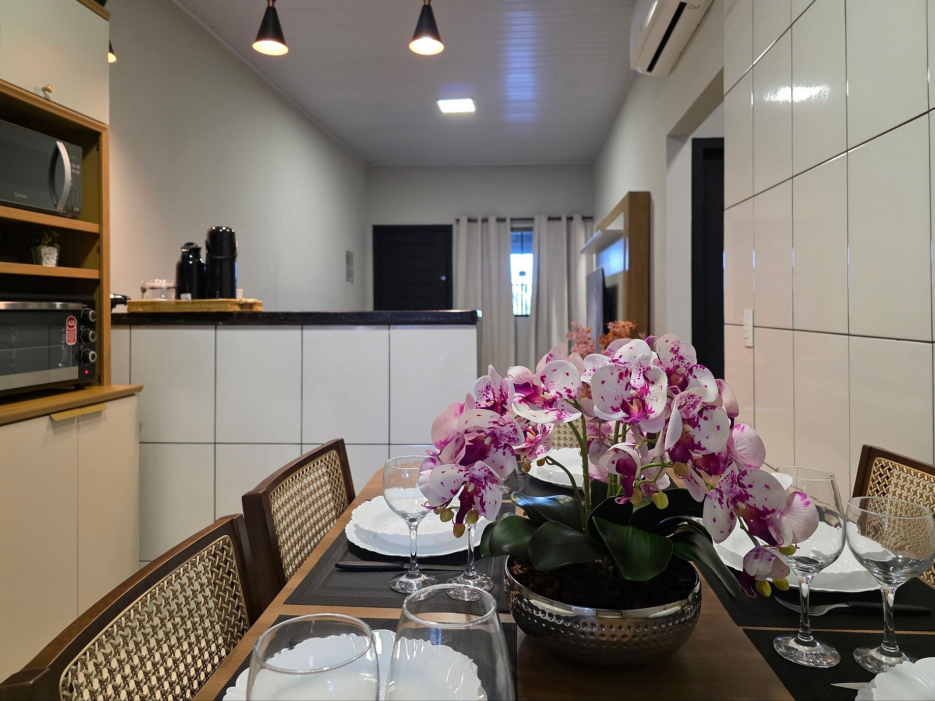 Sala de estar, jantar e cozinha - ambiente integrado. e climatizado com ar condicionado.
