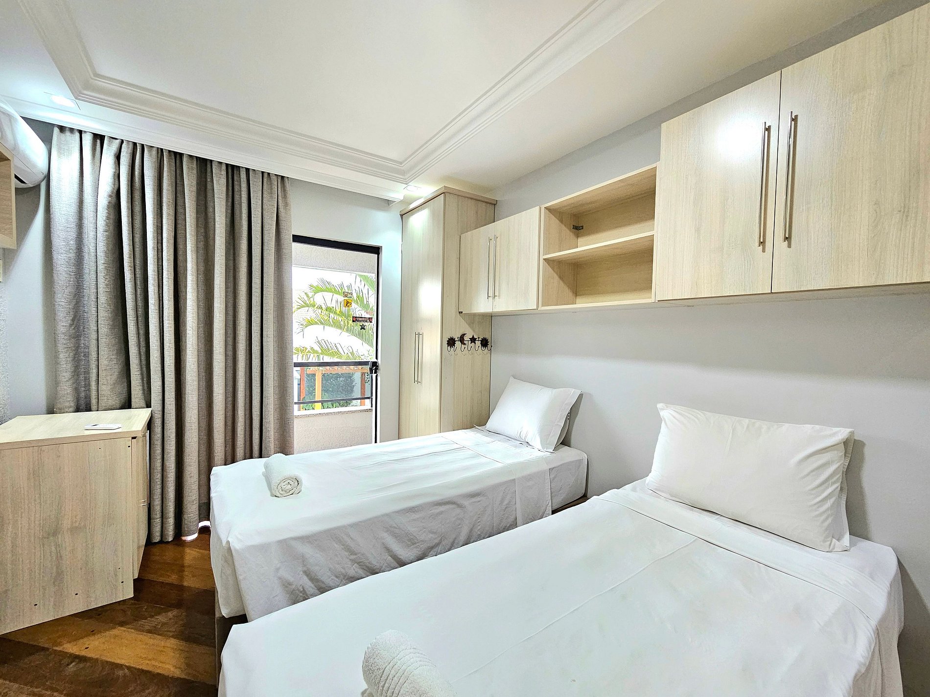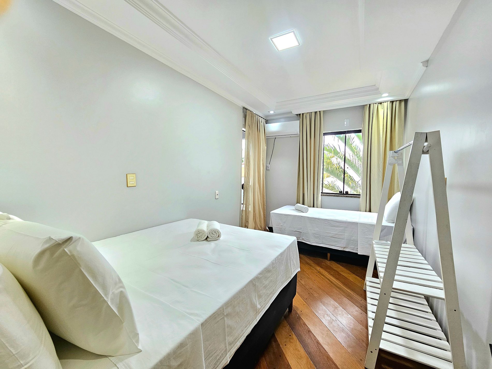 01 suíte com 01 cama de casal + 01 cama de solteiro