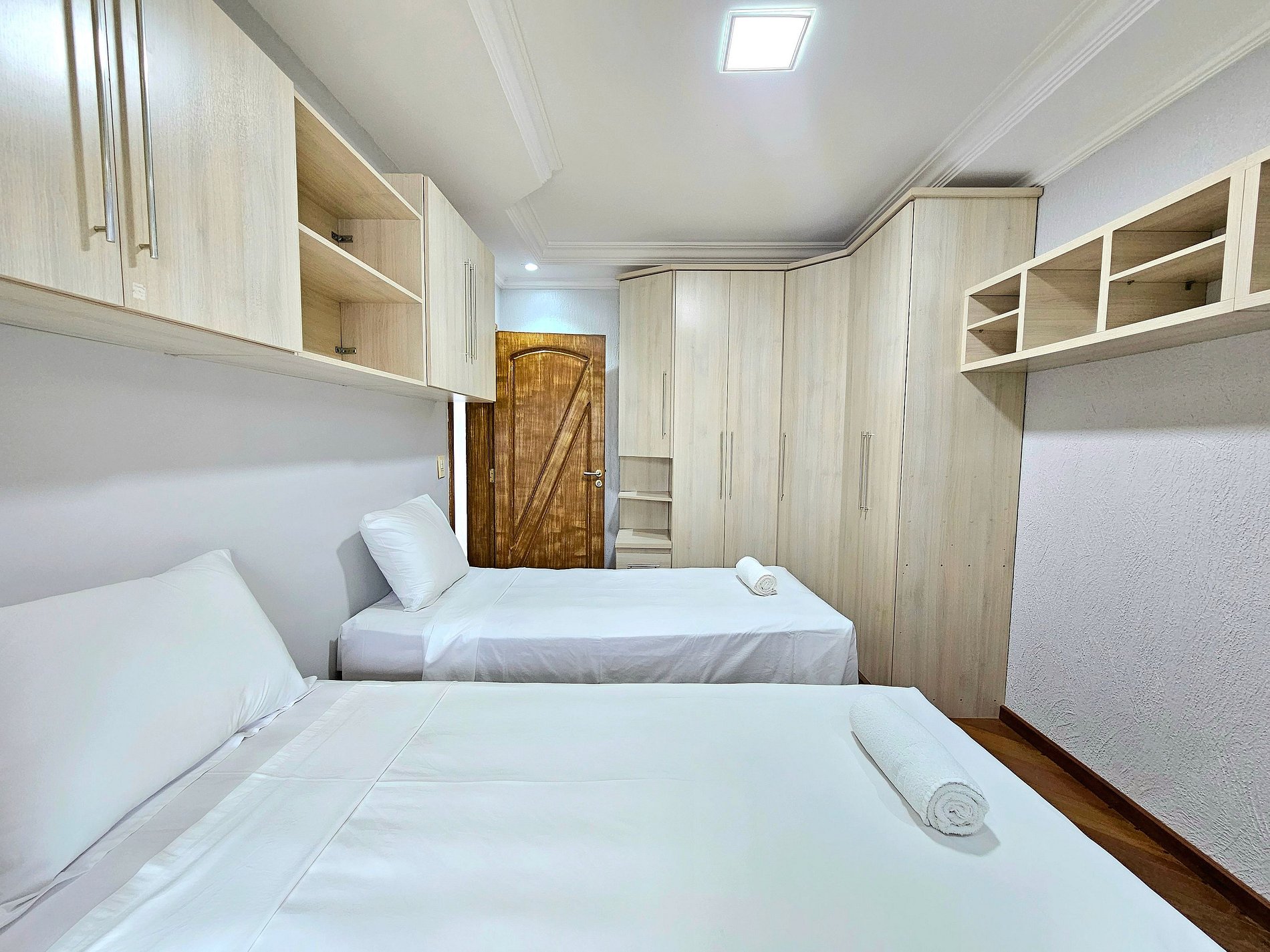 01 quarto com 01 cama de casal + 01 cama de solteiro
