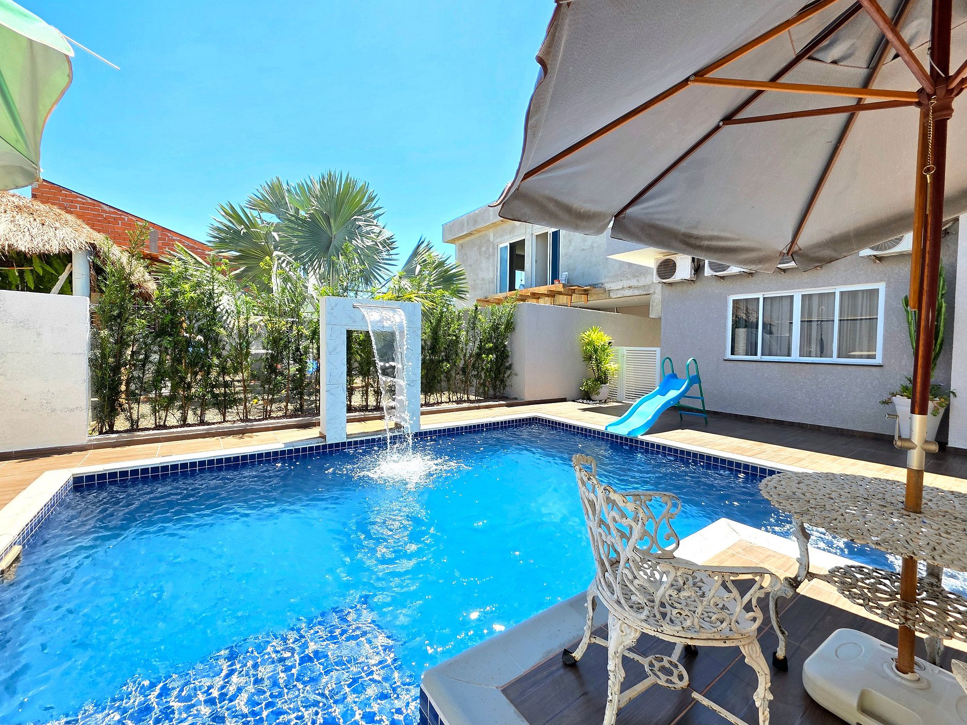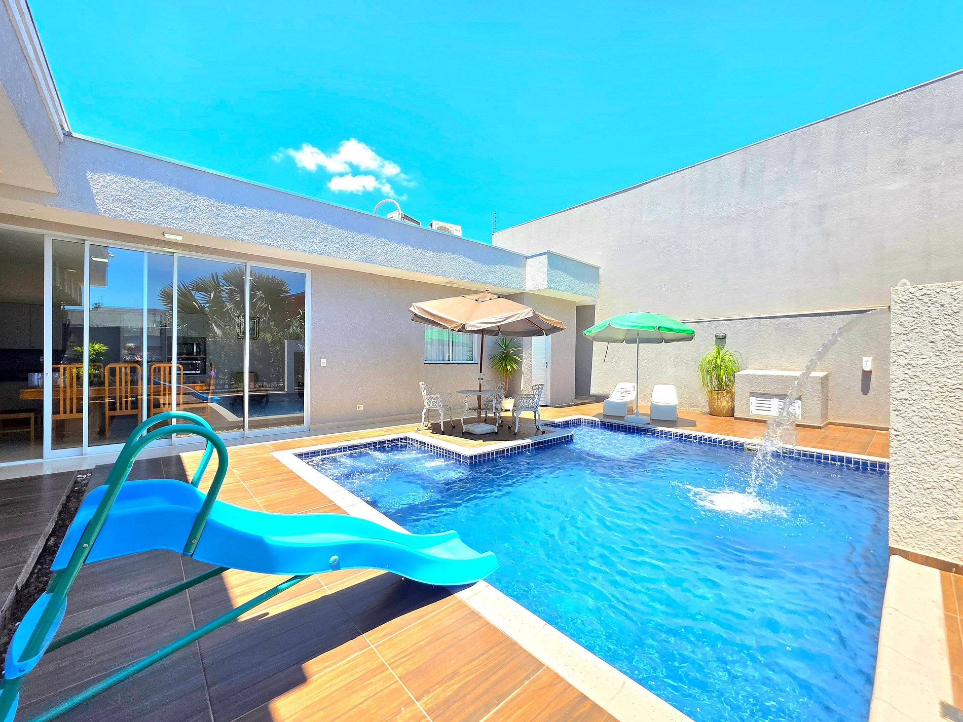 *Piscina: com led colorido (a noite fica muito legal) e cascata, acionamento fácil por controle.
