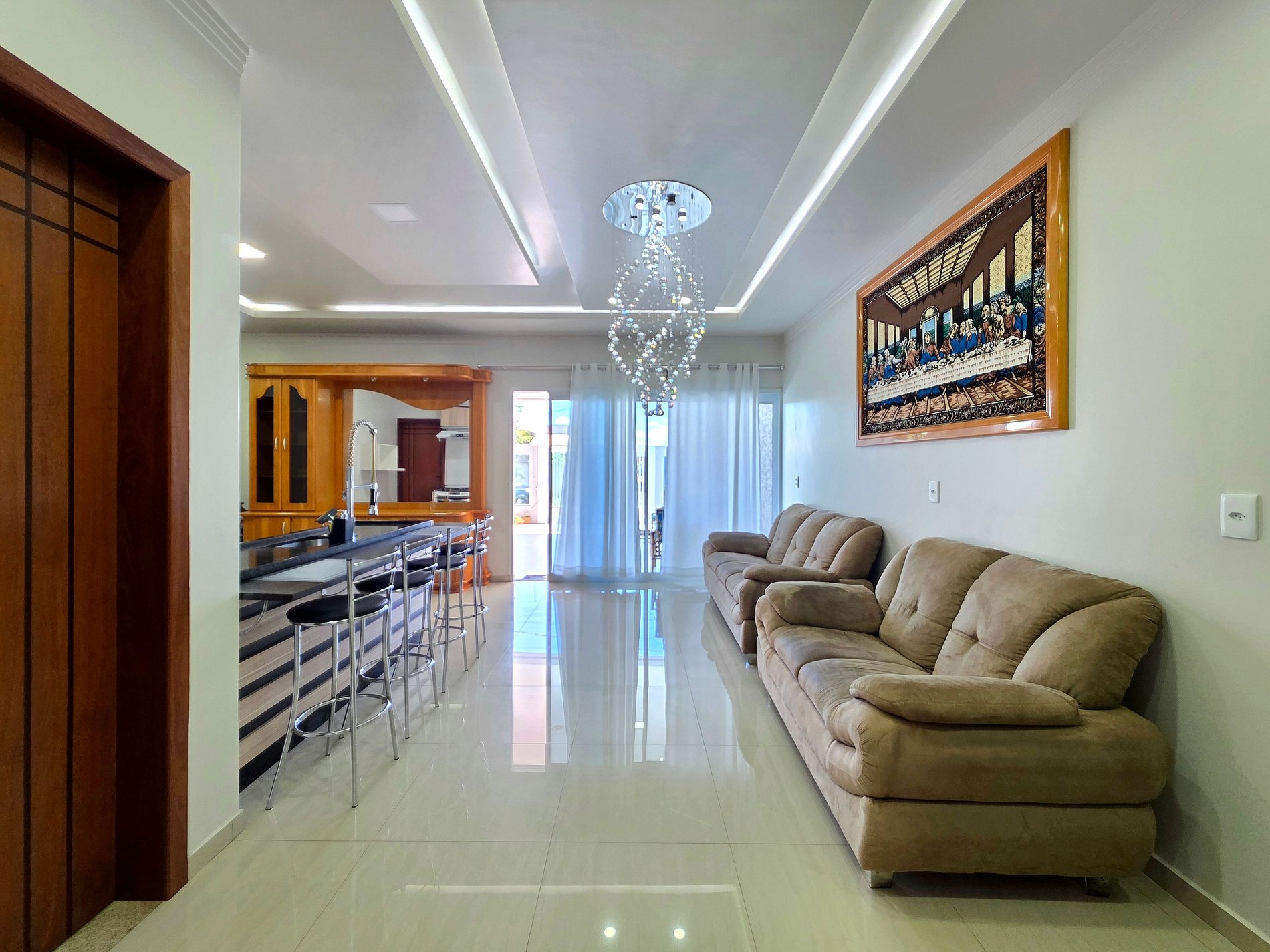 * Cozinha: Cozinha completa com utensílios e louças para refeições. Equipamentos disponíveis: micro-ondas, liquidificador, sanduicheira, cafeteira elétrica e chaleira elétrica.