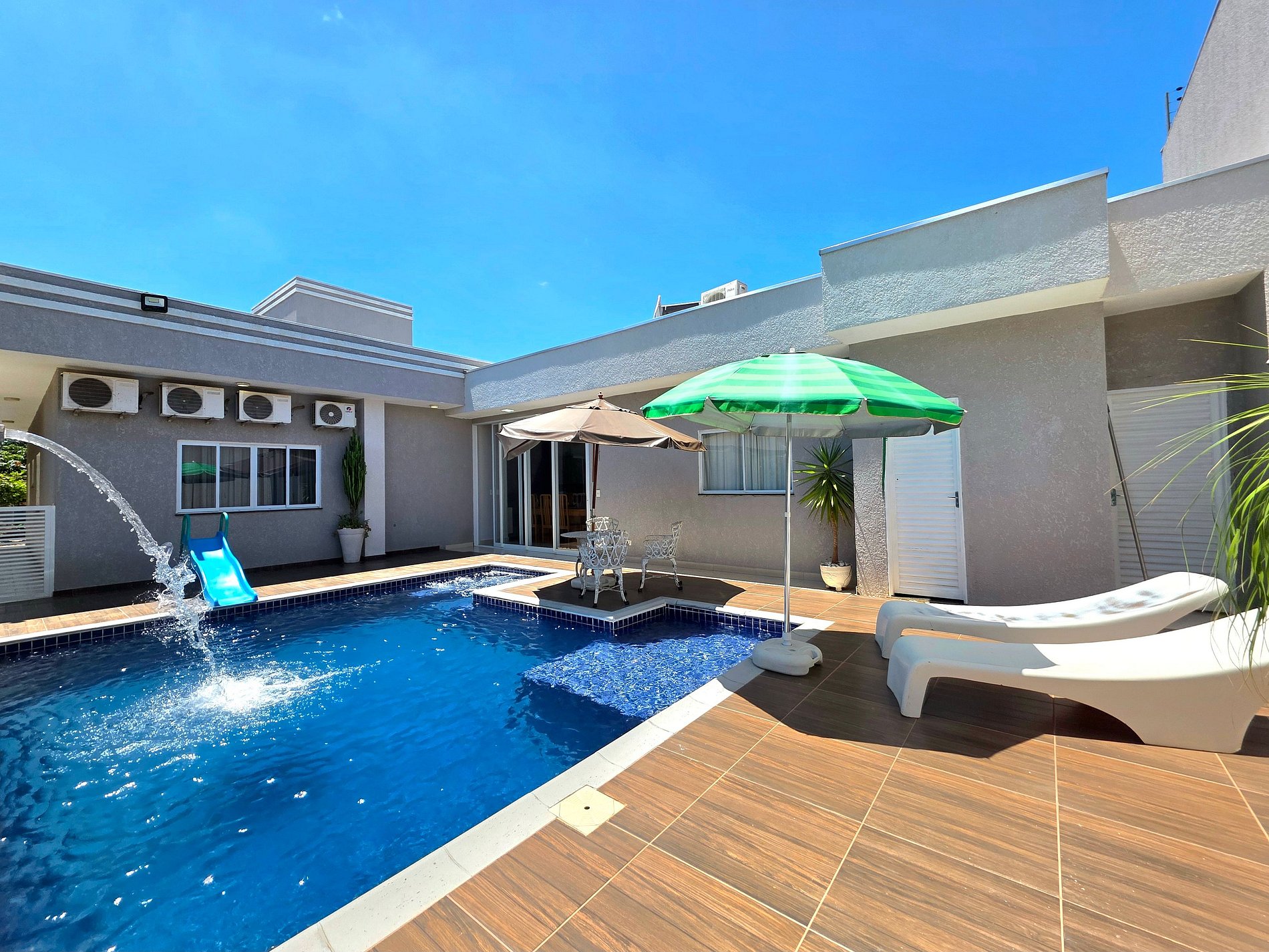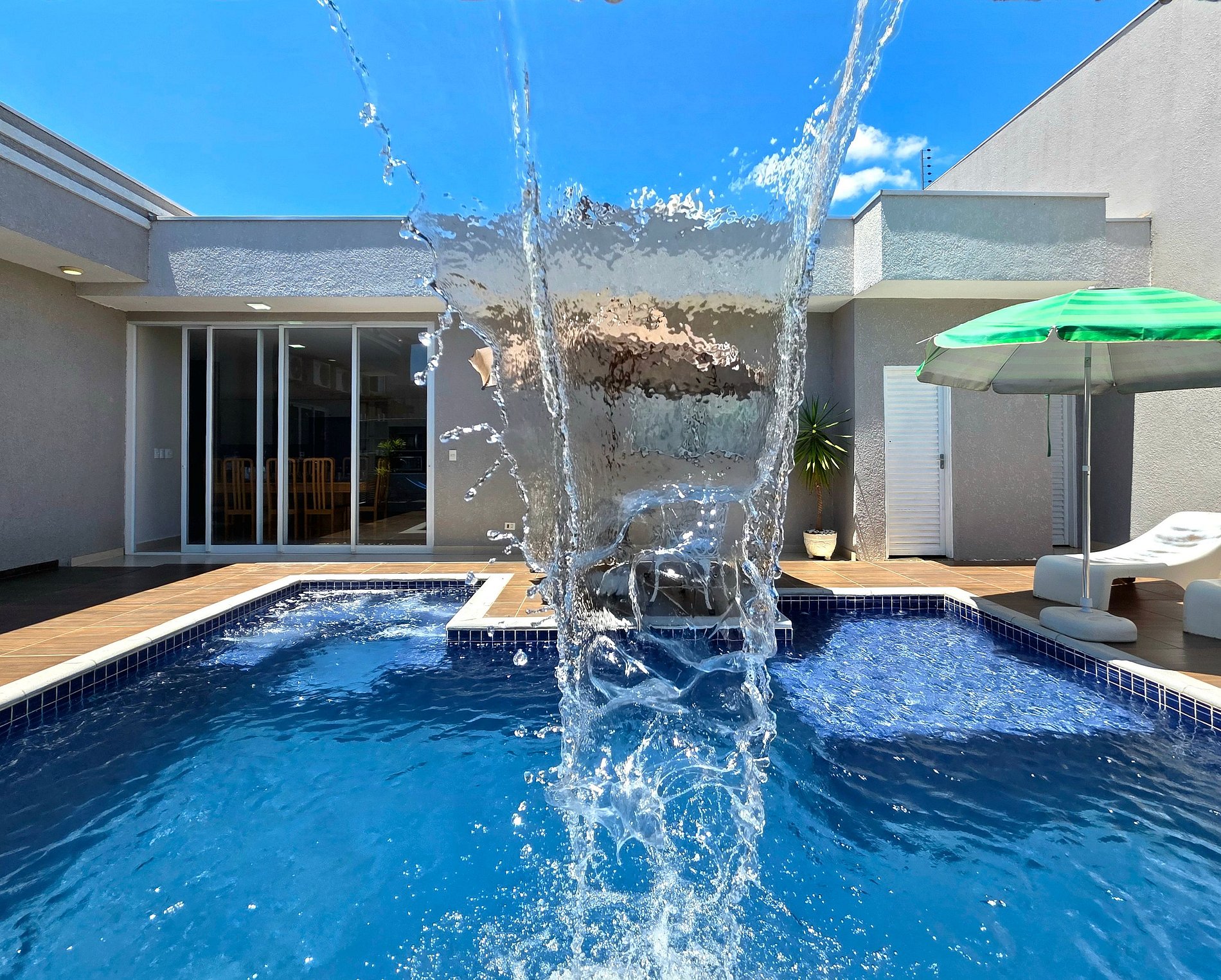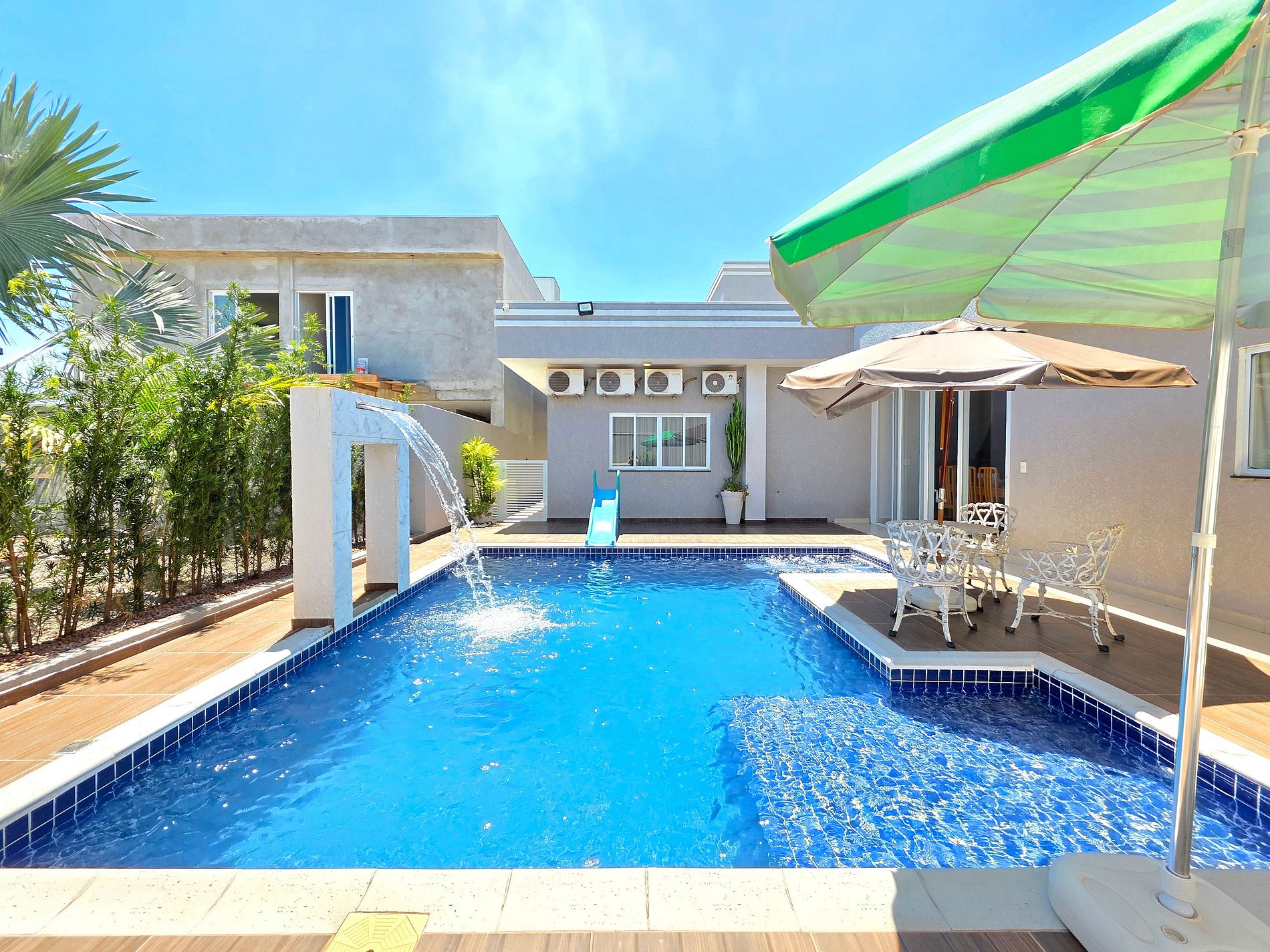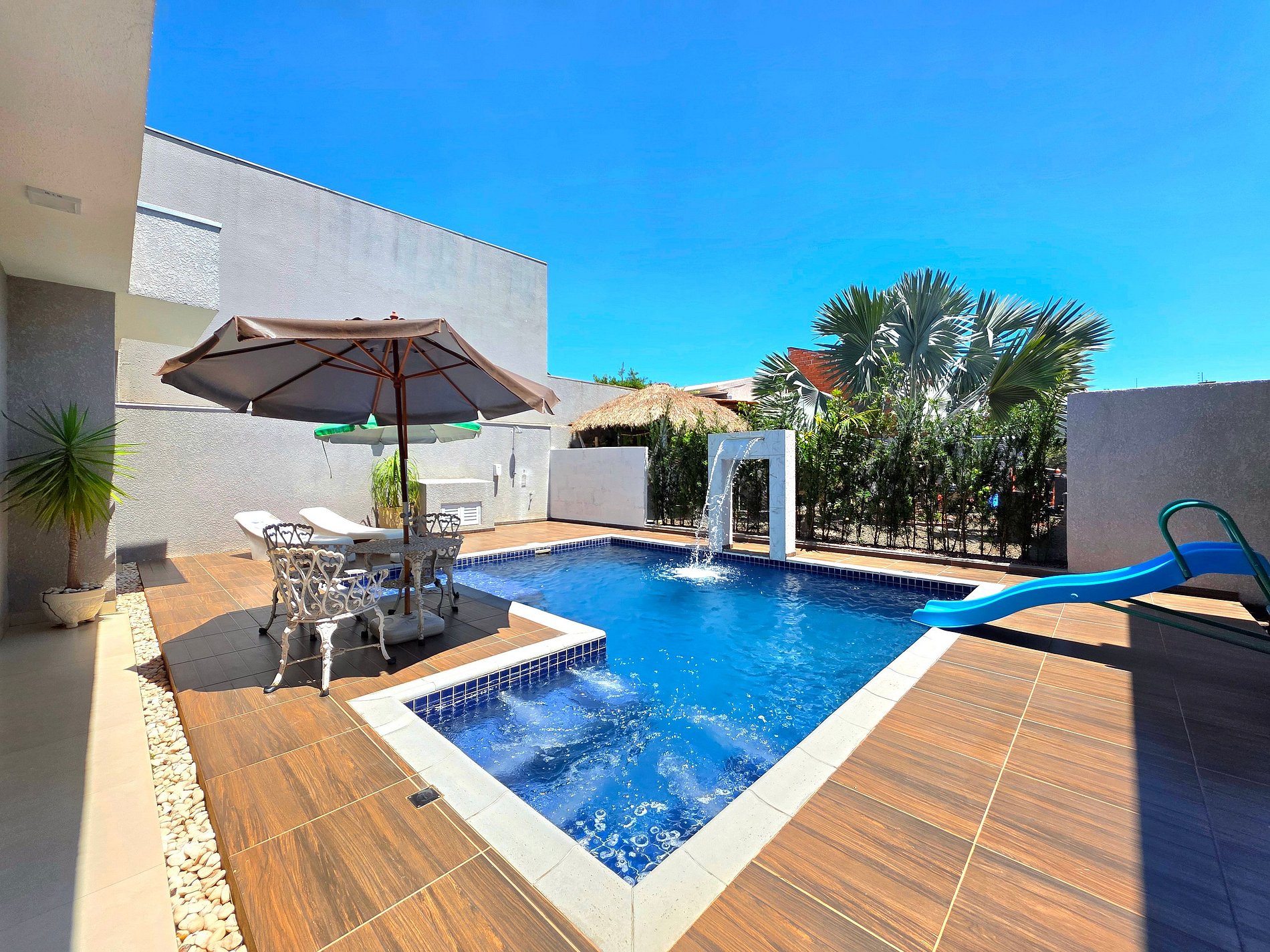 *Piscina: com led colorido (a noite fica muito legal) e cascata, acionamento fácil por controle.
