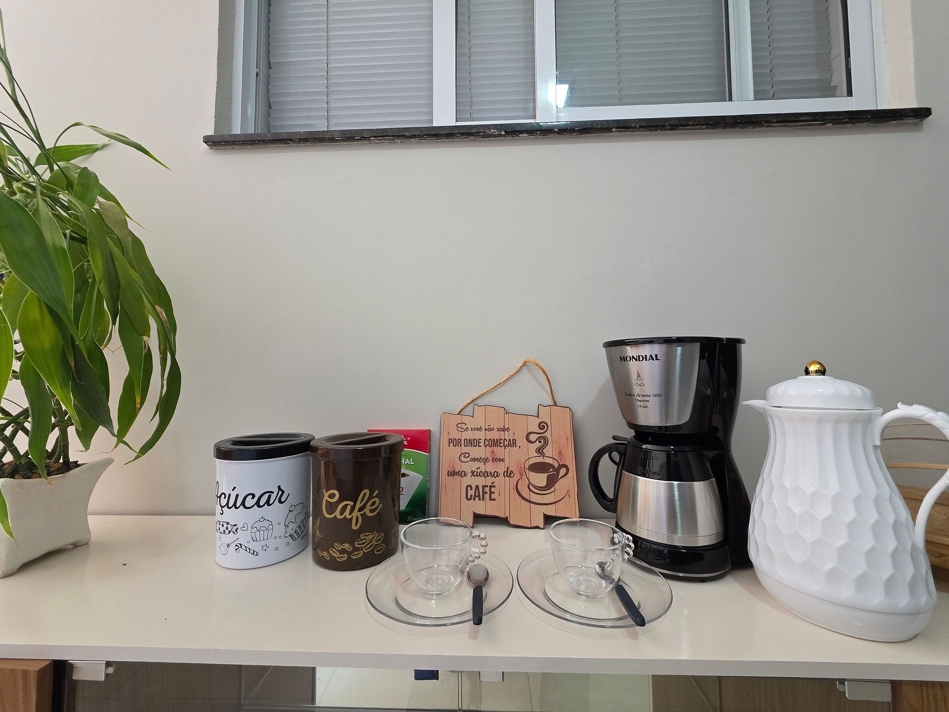 * Cozinha: Cozinha completa com utensílios e louças para refeições. Equipamentos disponíveis: micro-ondas, liquidificador, sanduicheira, cafeteira elétrica e chaleira elétrica.