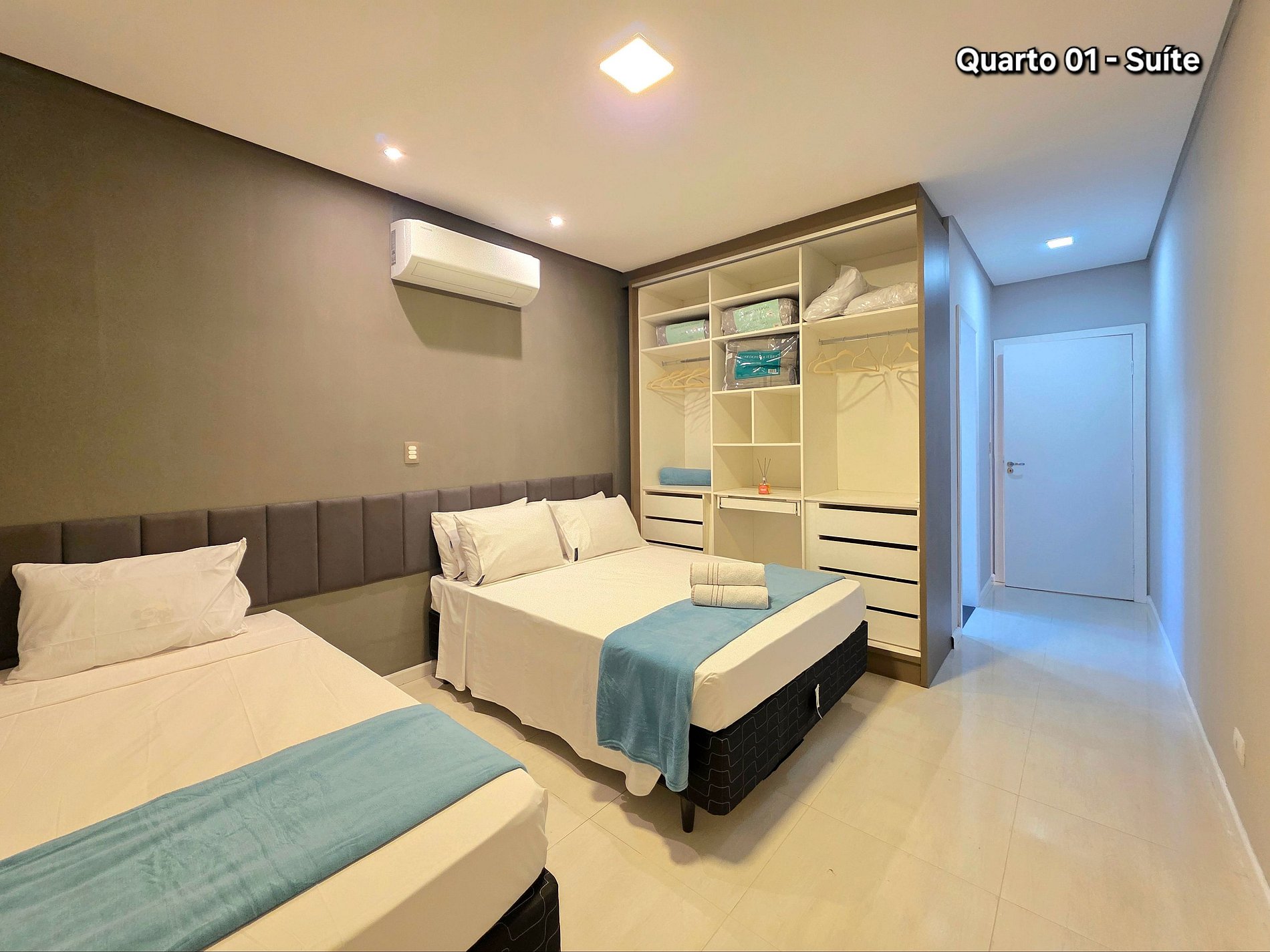 Quarto 01: Suíte com 01 cama casal + 01 solteiro