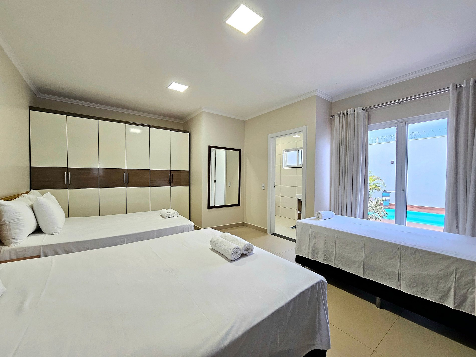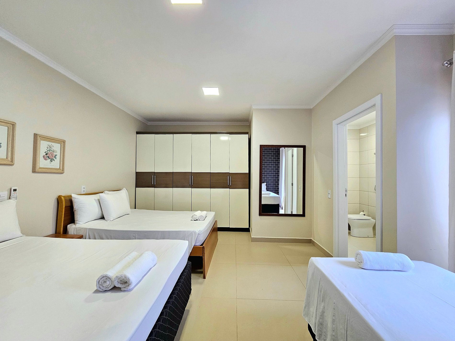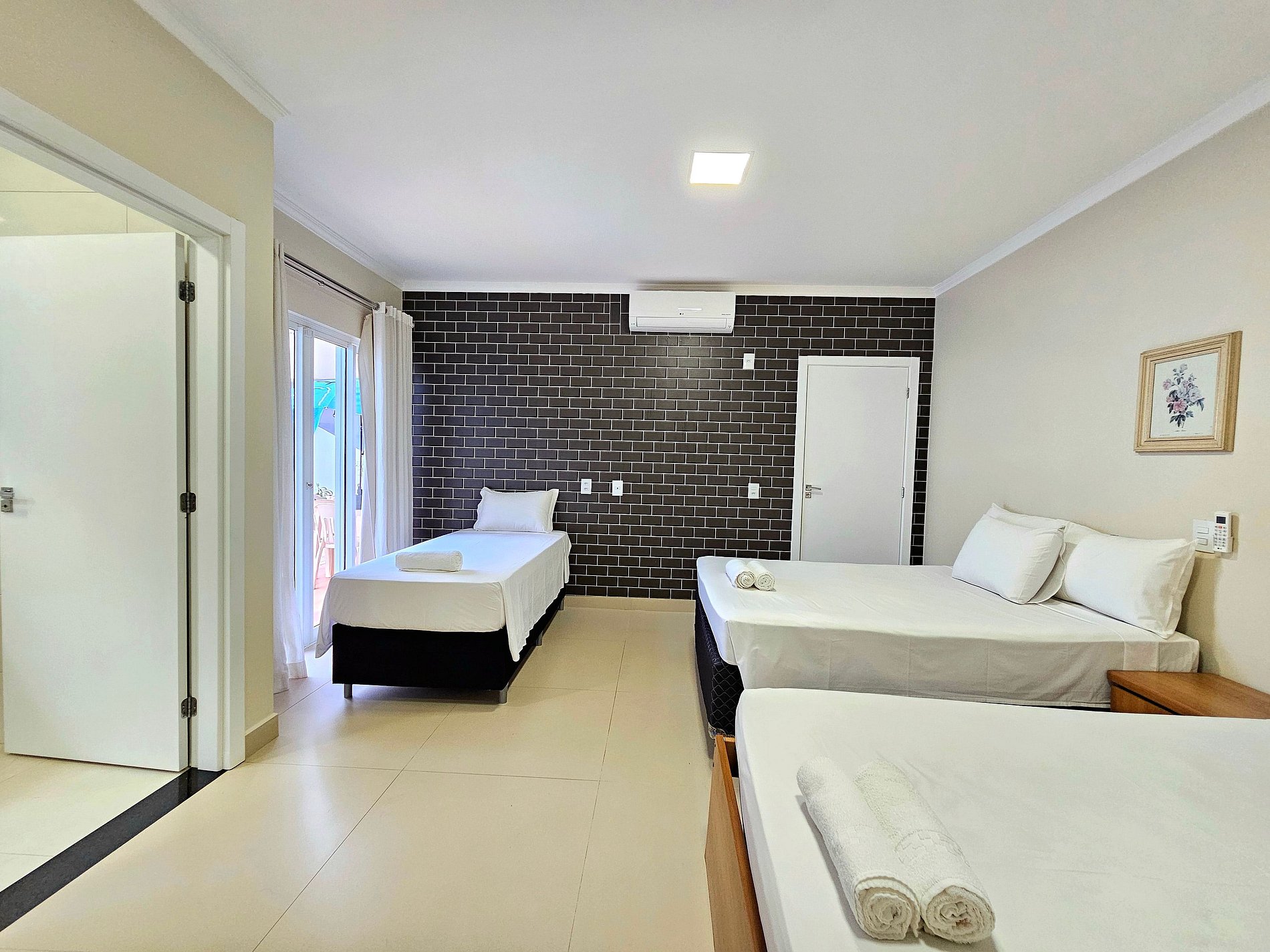 01 suíte com 02 camas de casal e 1 solteiro (com banheiro) - ar condicionado