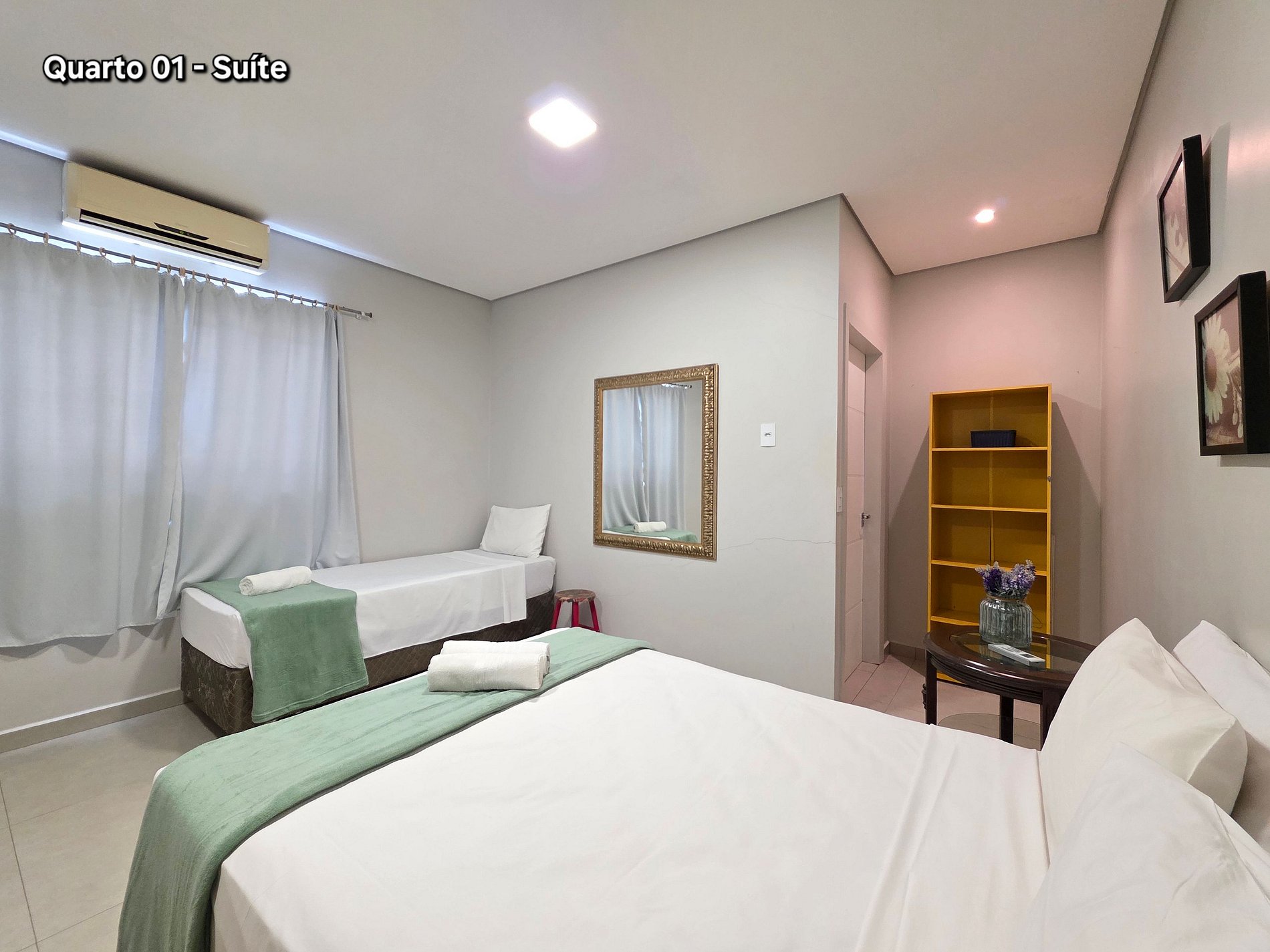01 quarto com 01 cama de casal + 01 cama de solteiro