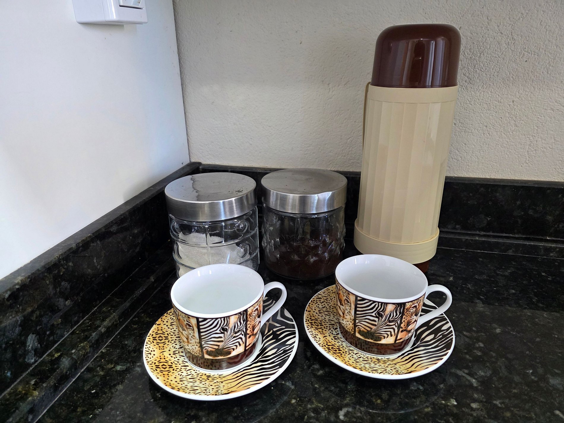 Cozinha completa com todos os utensilios e louça para as refeições.