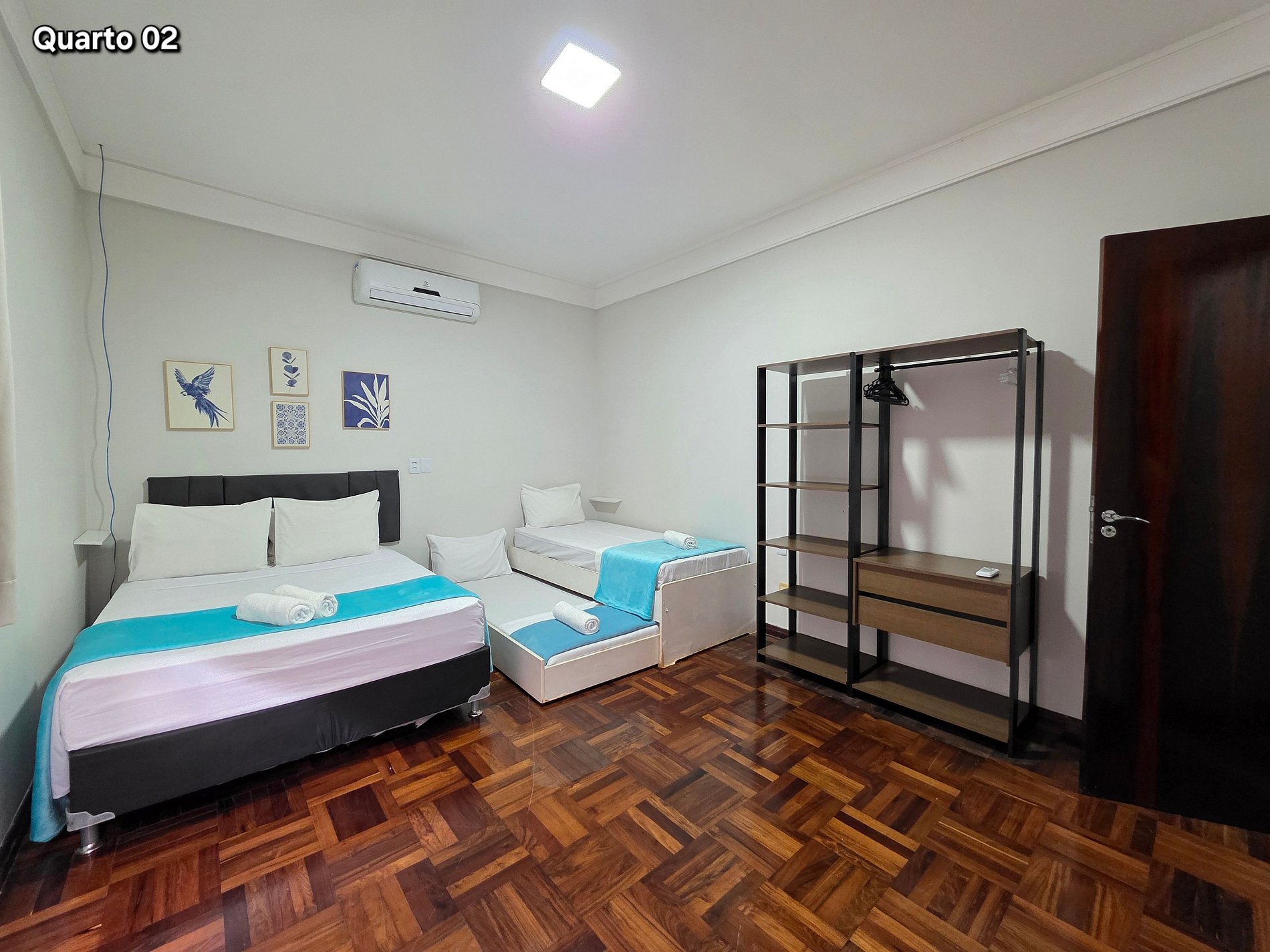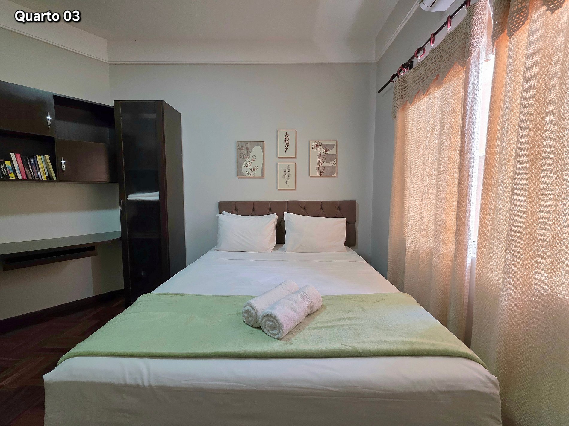 01 quarto com 01 cama de casal + 01 cama de solteiro + 01 cama solteiro auxiliar (com banheiro) - com ar condicionado