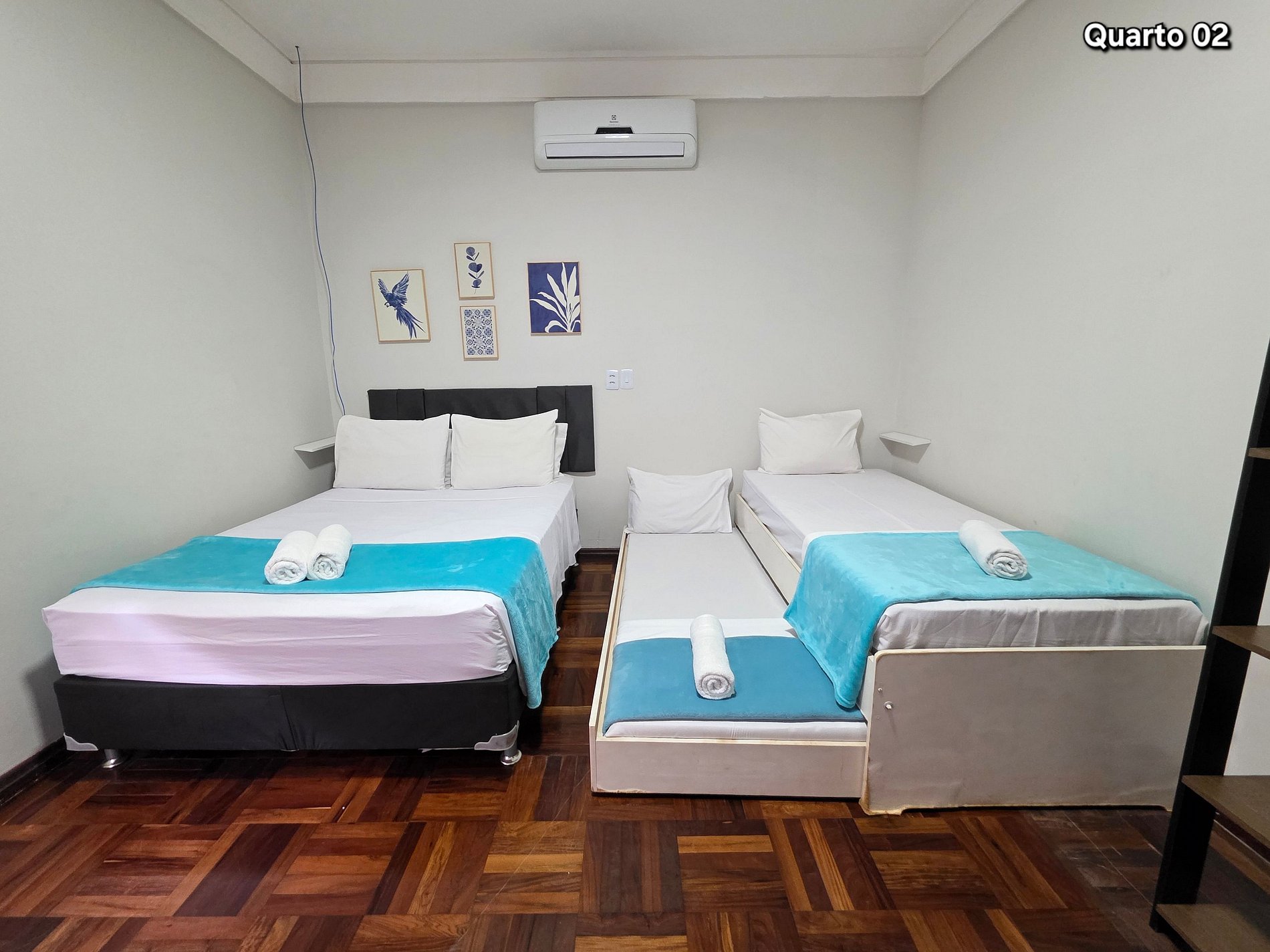 01 quarto com 01 cama de casal + 01 cama de solteiro + 01 cama solteiro auxiliar (com banheiro) - com ar condicionado