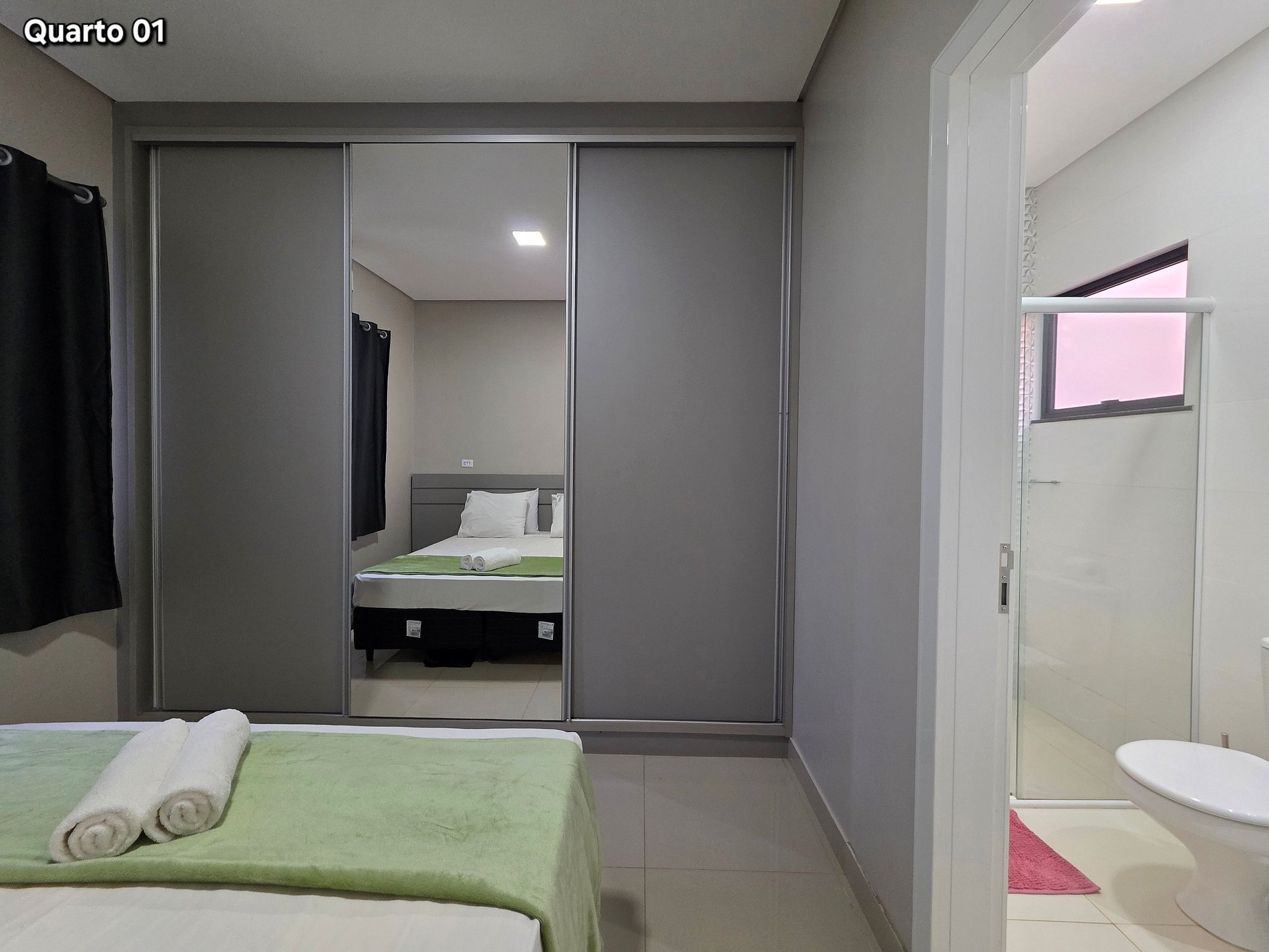 Casa com 2 quartos e 2 banheiros, para até 6 pessoas em excelente localização, 7 minutos do Aeroporto, 10 min Cataratas, 2 minutos da Argentina e 15 do Paraguai, 5 min do Shopping Catuaí e 5 min do centro. Seu PET é bem-vindo. Incluso roupa de cama e toalhas de banho. Quartos e sala/cozinha climatizados. Cozinha equipada com utensilios para as refeições, churrasqueira completa. Garagem e wifi de qualidade. Bairro seguro e familiar. Somos anfitriões comprometidos com sua estadia.