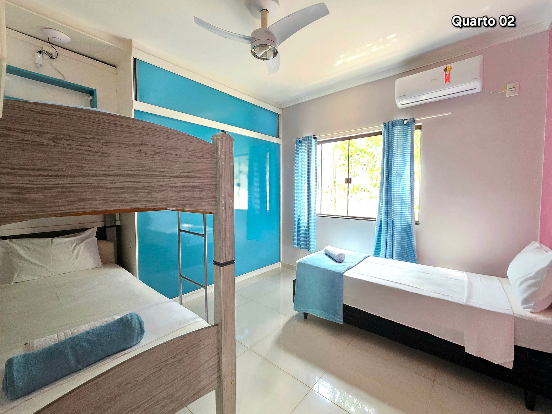 Quarto 02: 01 beliche + 01 cama solteiro (com ar condicionado)