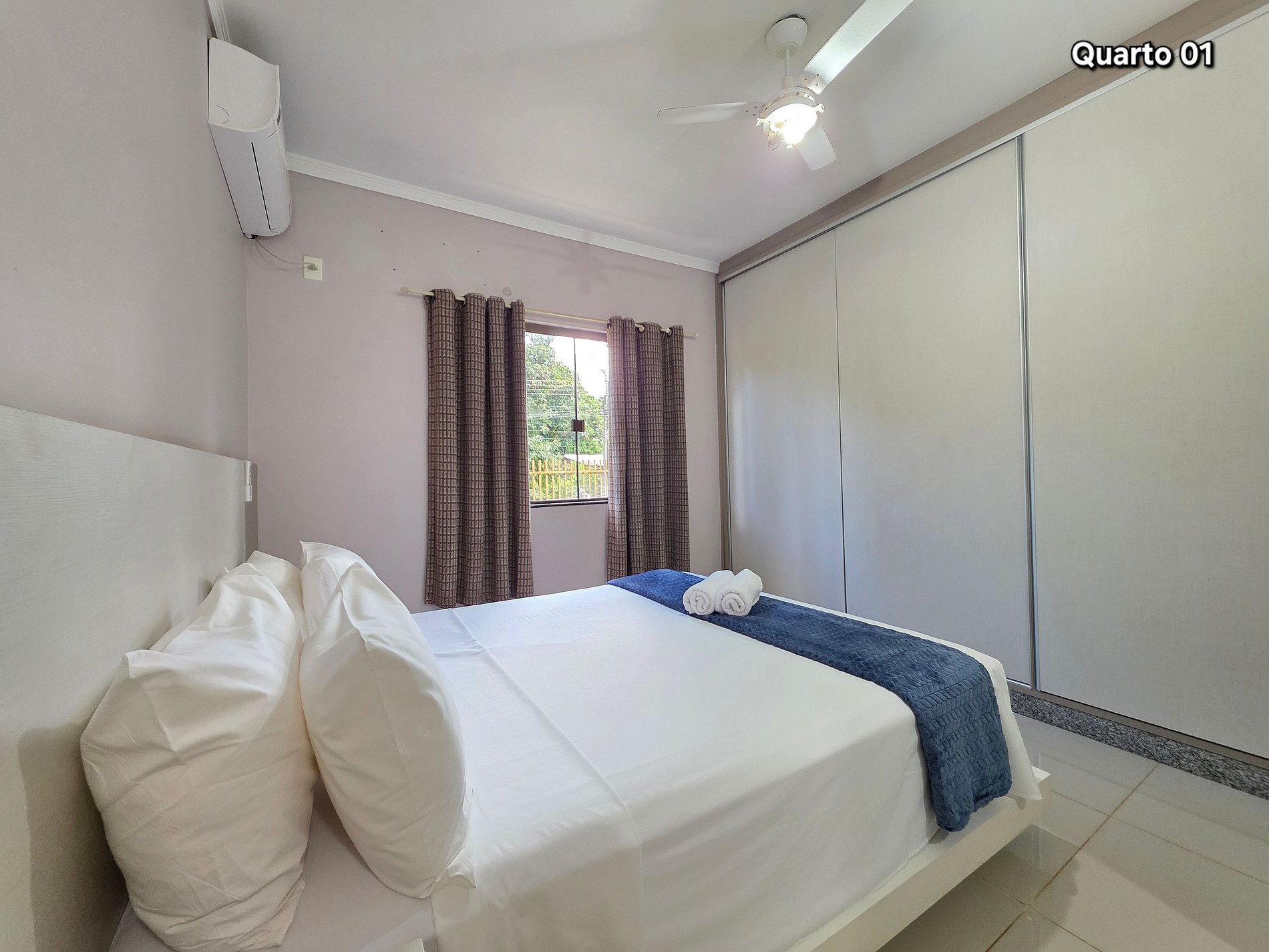 Sinta-se em casa nessa hospedagem com 2 quartos e 2 banheiros, localizada de 15 a 25 min das Cataratas, parque das aves, museu de cera, Paraguai, apenas 10-15 minutos do centro e Paraguai. Também fica a 5 min do Ginásio Costa Cavalcanti e o Hotel de Eventos Rafain Palace. Seu PET é muito bem-vindo. Incluso roupa de cama e toalhas de banho. Equipada com os utensílios para cozinhar. Garagem e Wi-Fi. Bairro seguro e familiar. Somos anfitriões comprometidos com sua estadia.