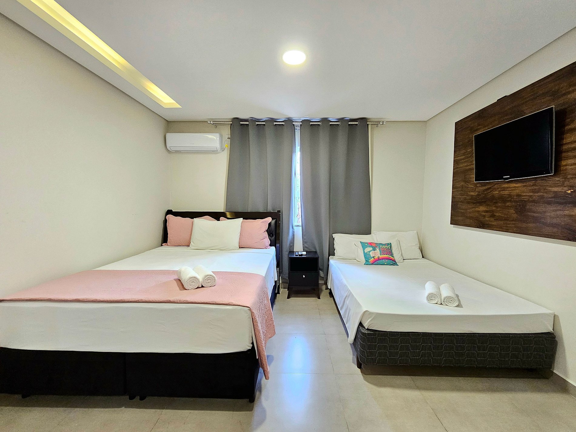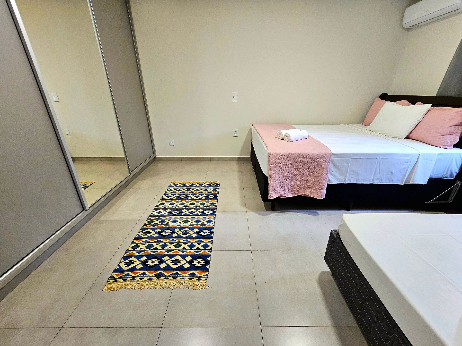 01 quarto com 01 cama queen e 01 cama casal (com ar condicionado)