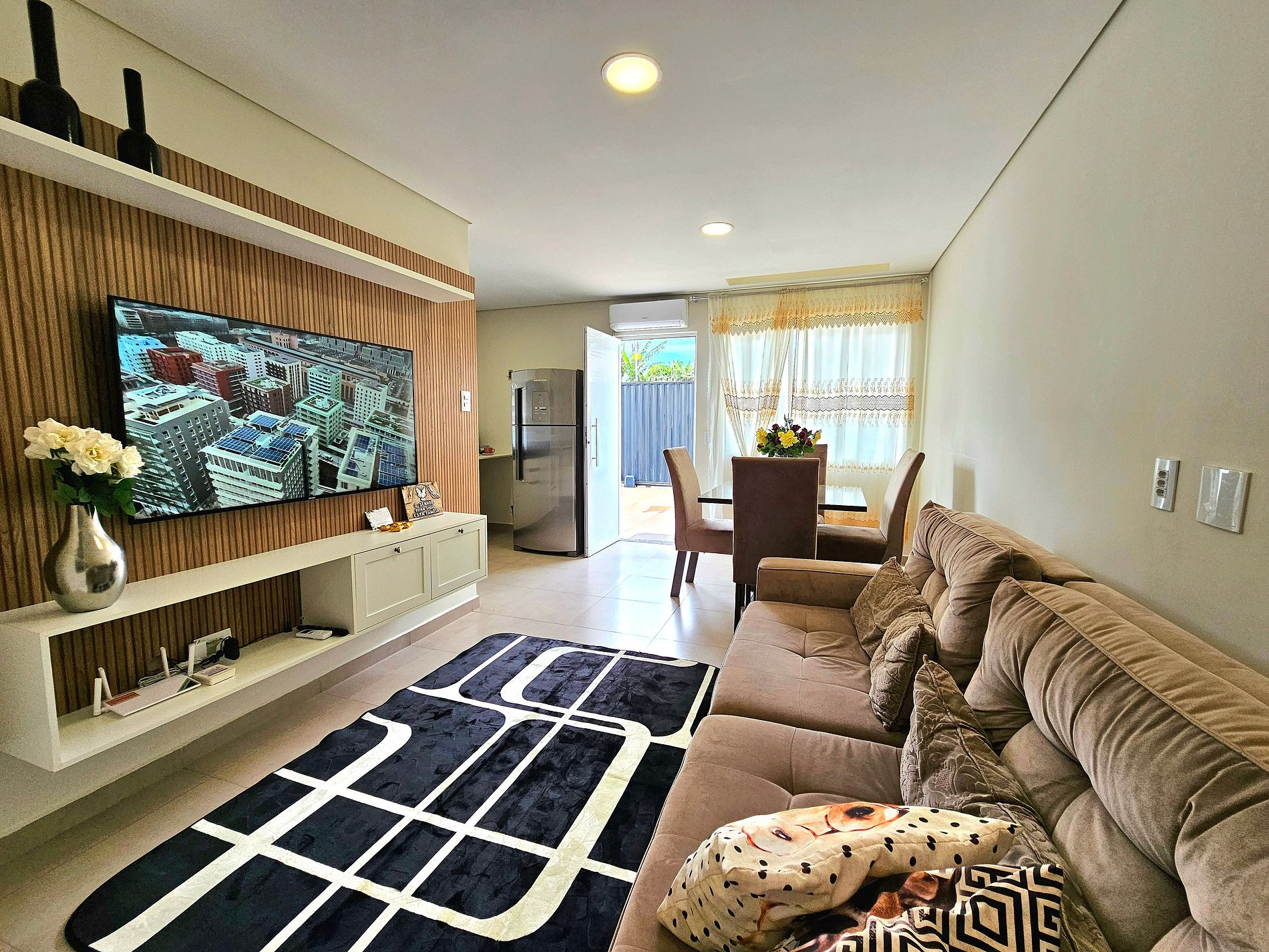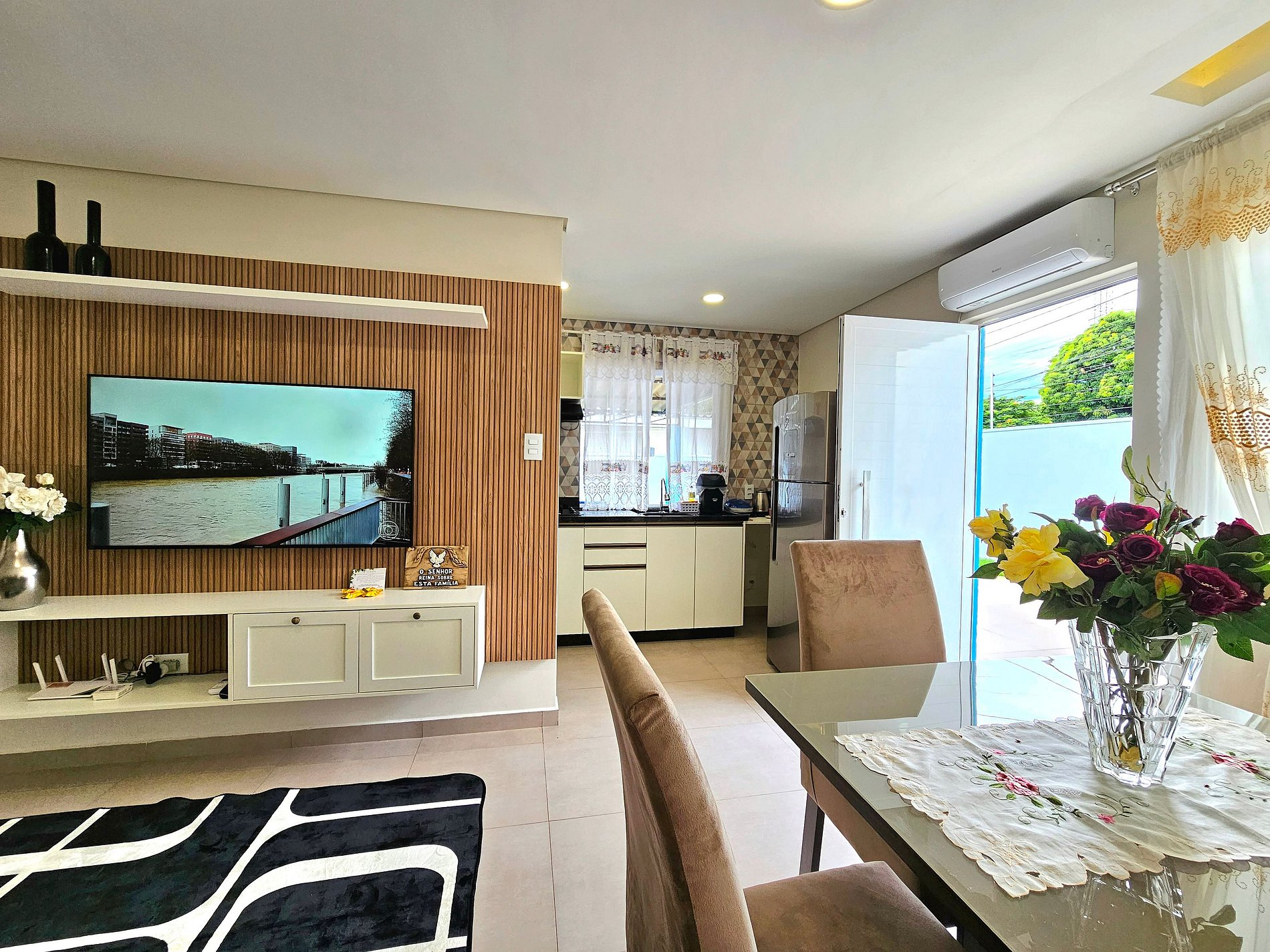 Linda casa recém construida localizada na região da Vila A, bem proximo ao Hospital Costa Cavalcanti e a 6 minutos da Ponte da Amizade para o Paraguai, 20 minutos das Cataratas. Quarto e sala climatizado, com 2 camas de casal e o sofá cama na sala para 1 pessoa.Também fica 10 minutos do centro. Seu PET é muito bem-vindo. Incluso roupa de cama e toalhas de banho. Equipada com os utensílios para cozinhar e churrasqueira. Garagem com portão eletrônico e Wi-Fi de qualidade. Bairro seguro e familiar.