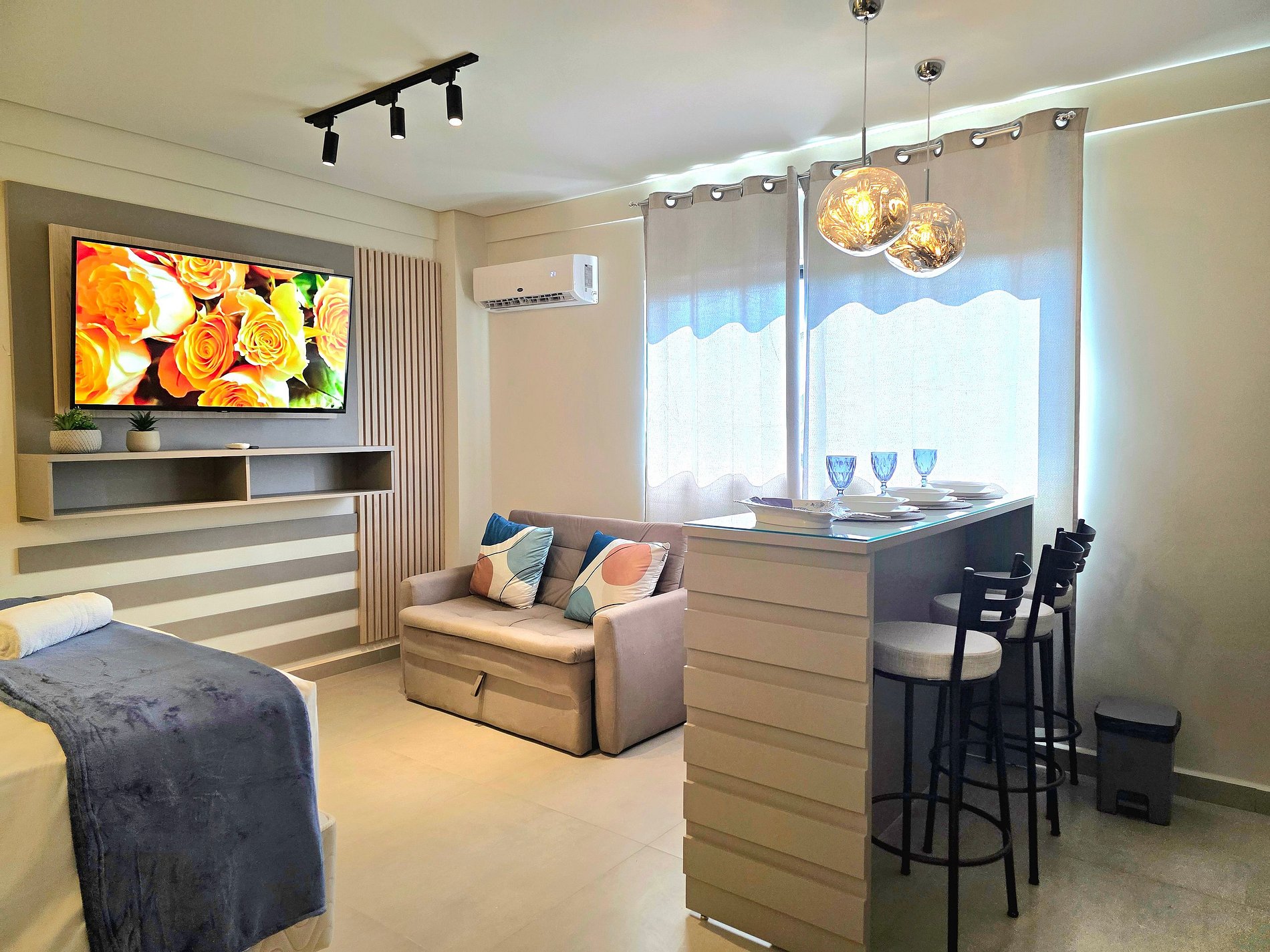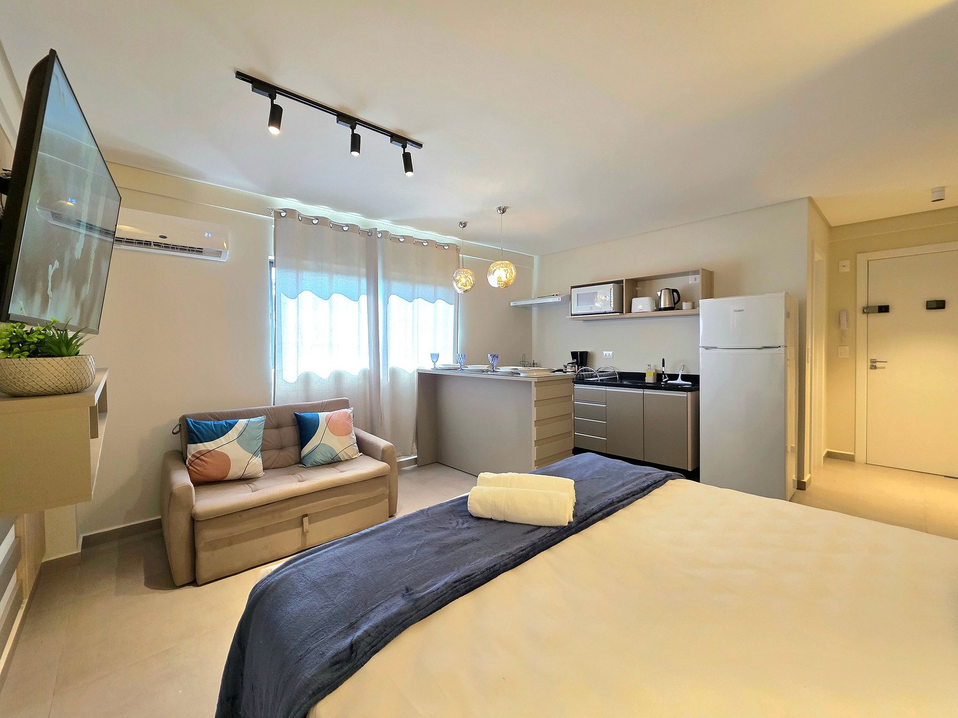 * Tecnologia e entretenimento: Smart TV Samsung de última geração com acesso às suas plataformas favoritas (Netflix, HBO, Prime), ideal para relaxar após visitar as Cataratas. Academia no último andar e salão de usos múltiplos (SUM).