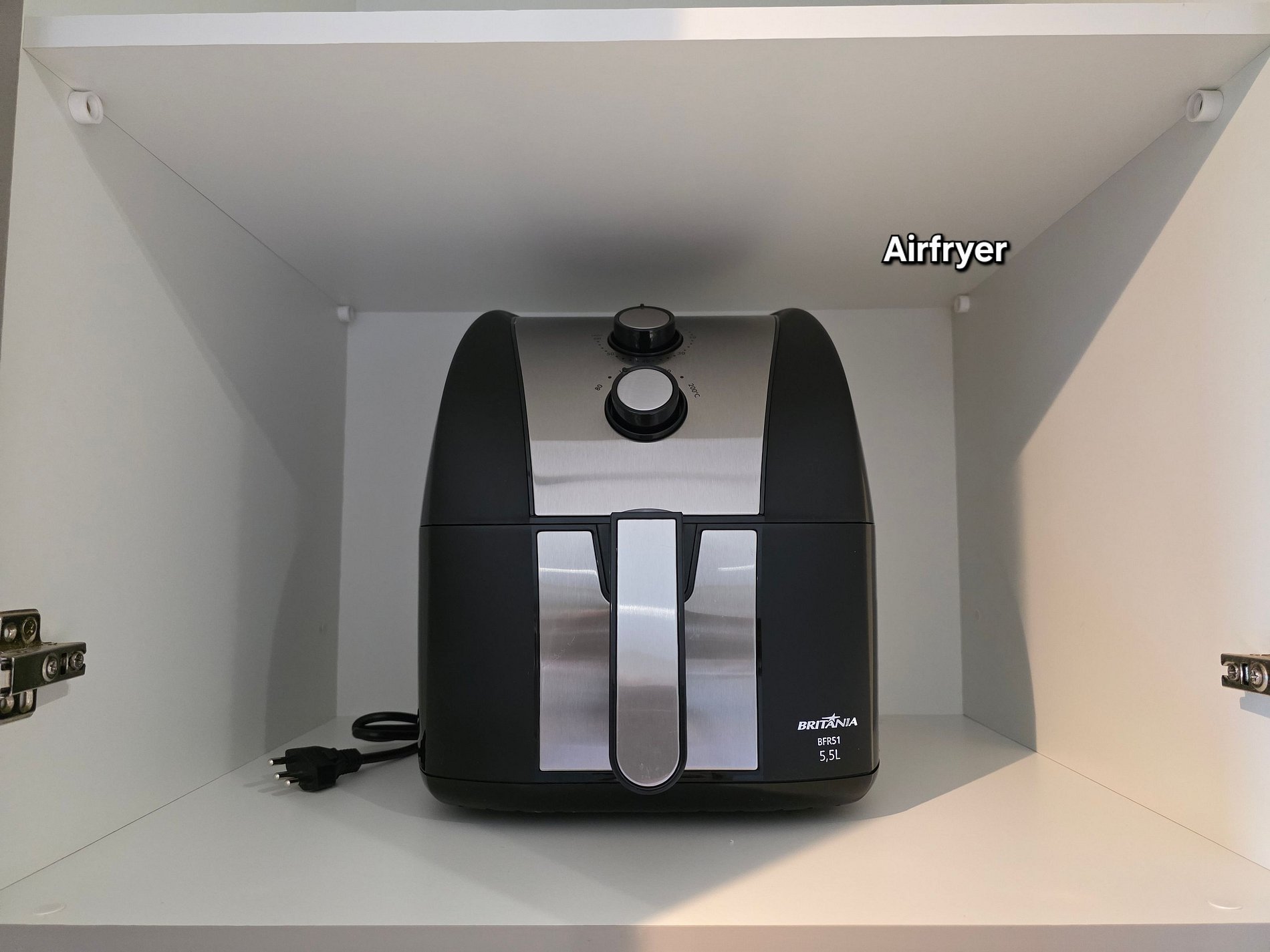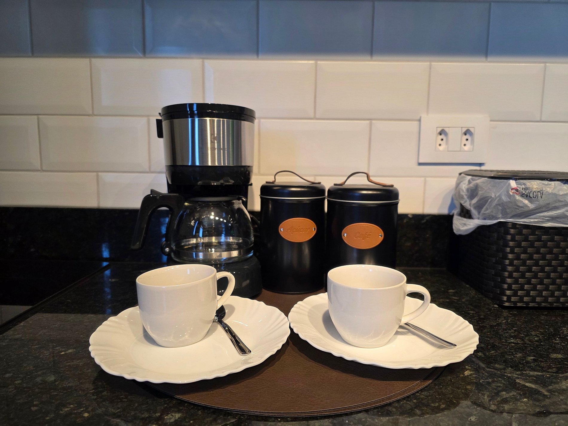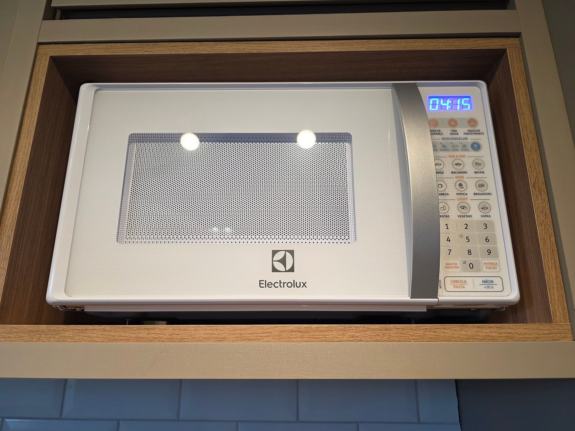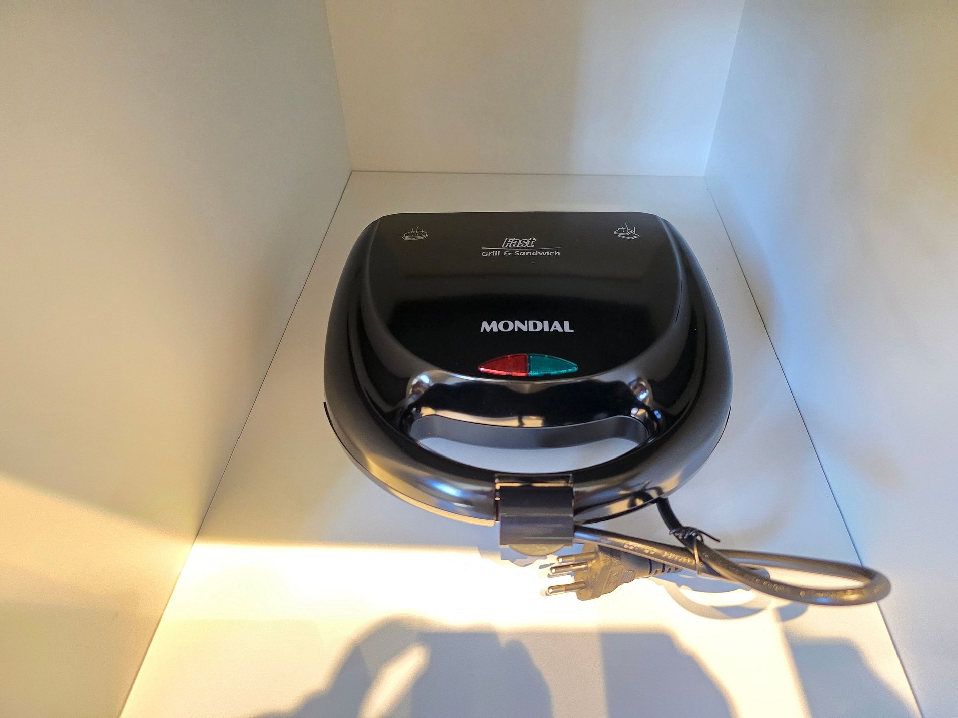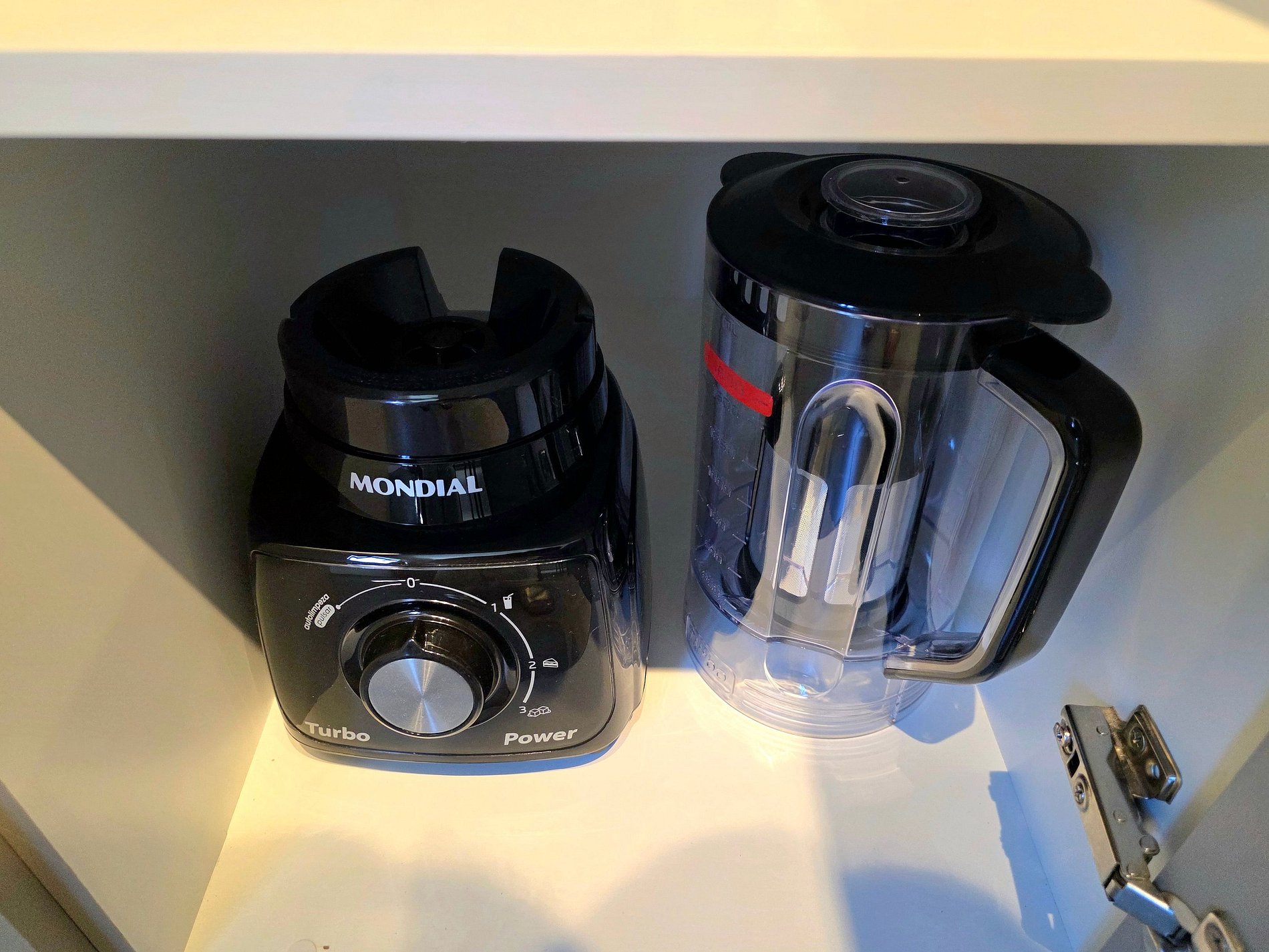 Equipamentos disponíveis: micro-ondas, liquidificador, sanduicheira, cafeteira elétrica e Airfryer.