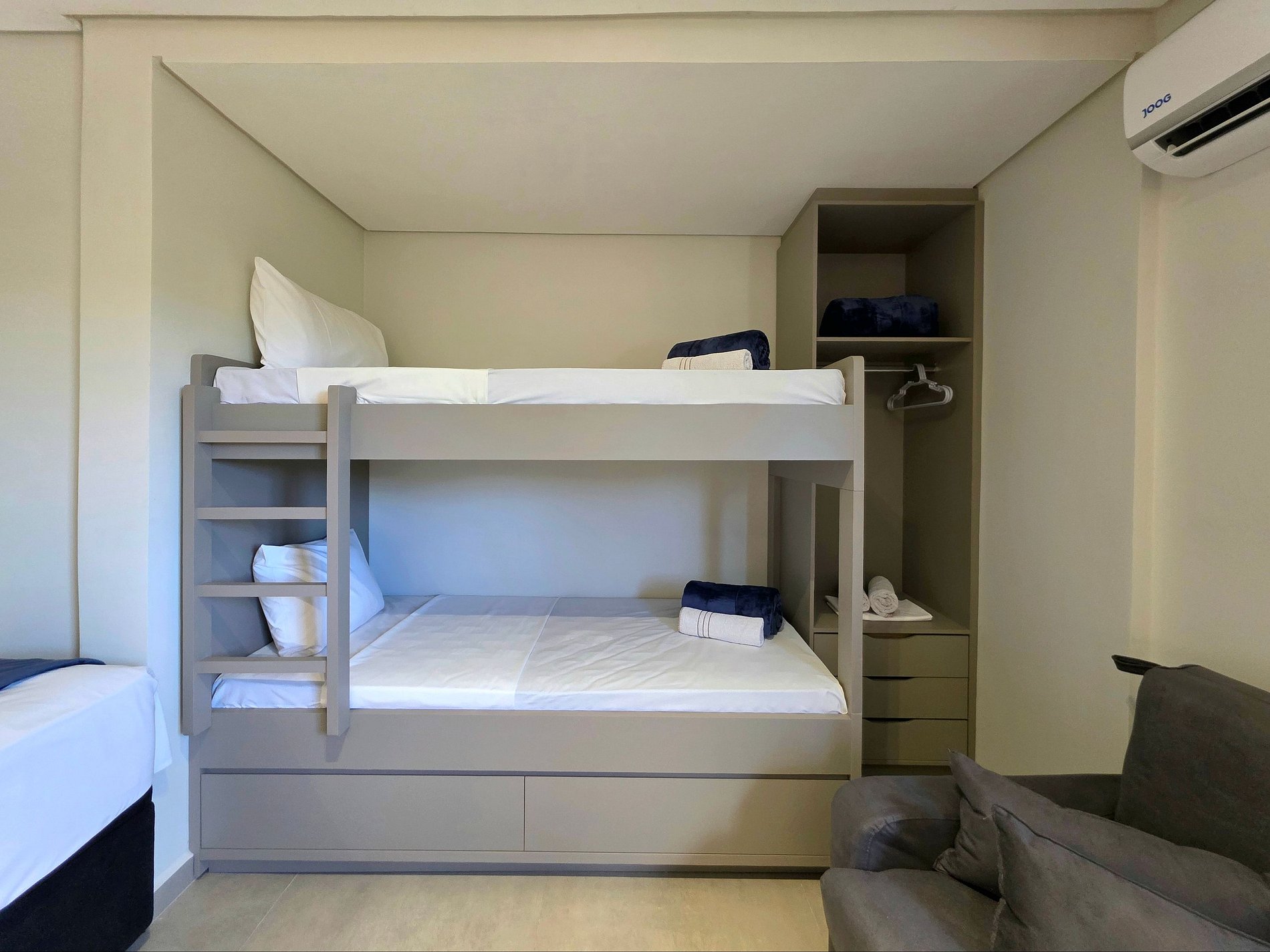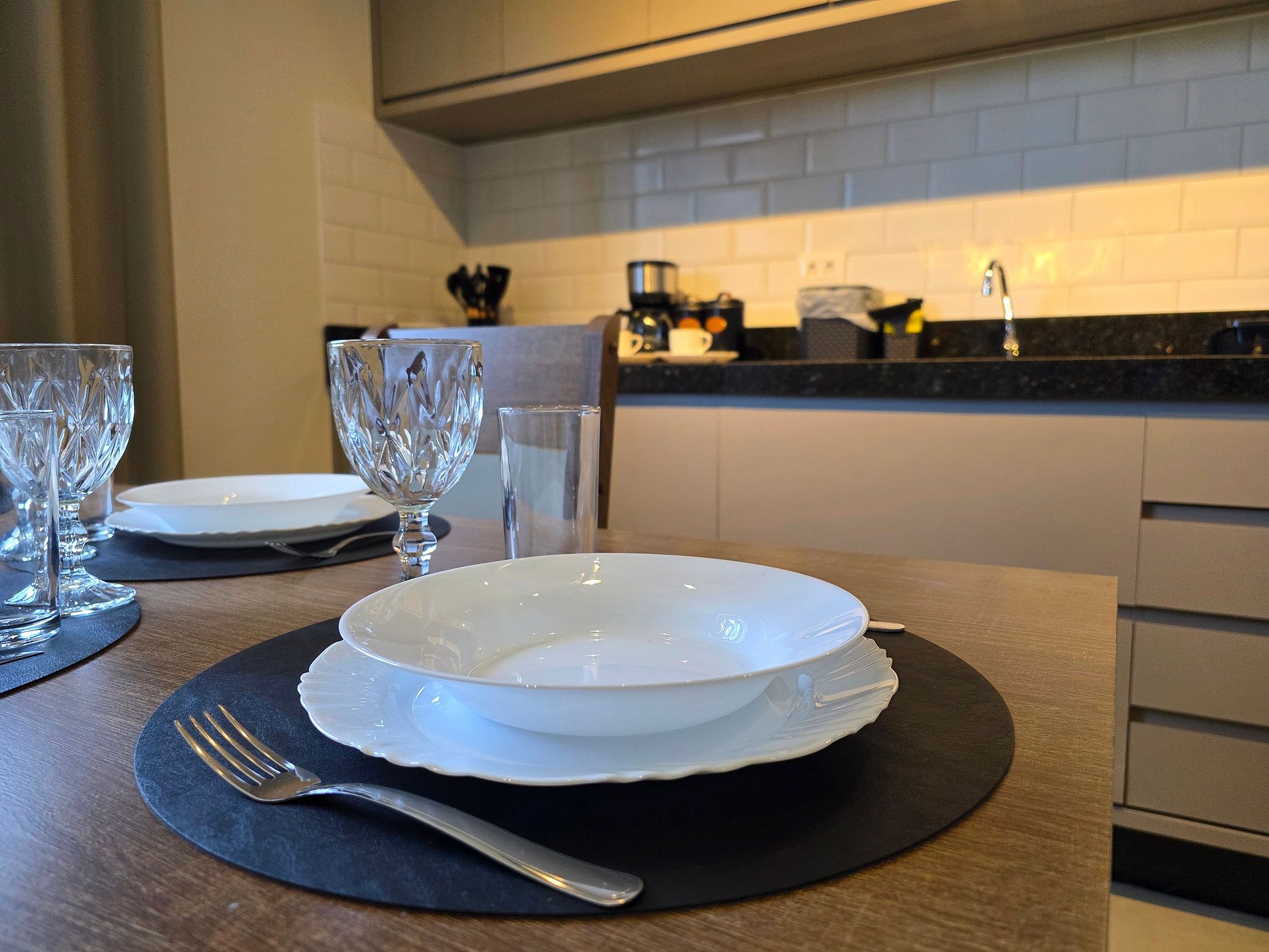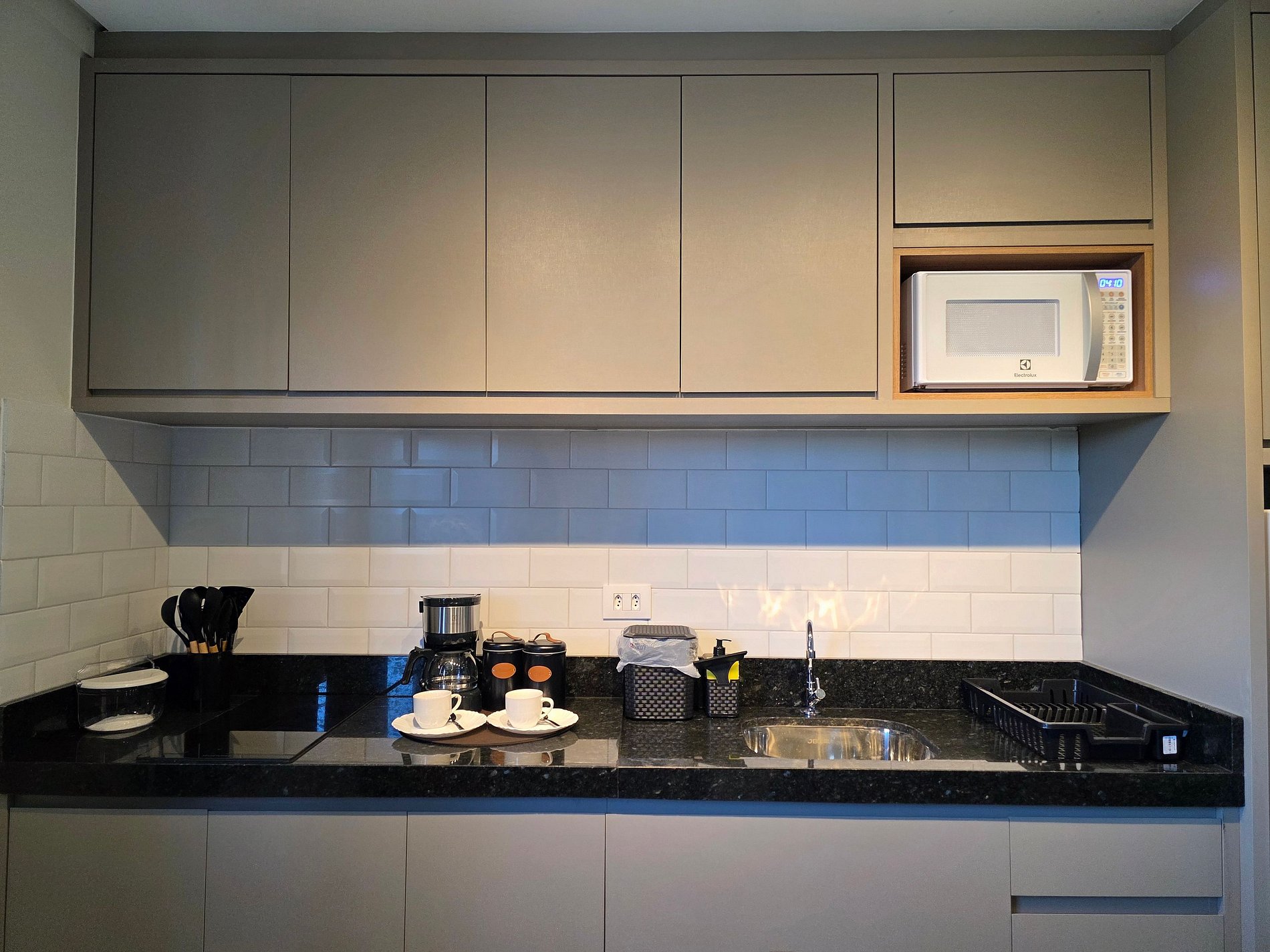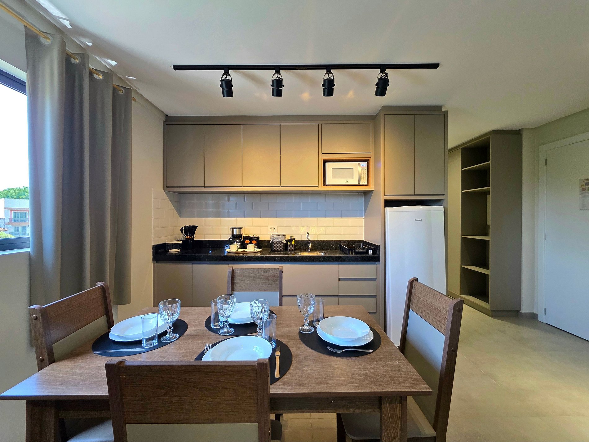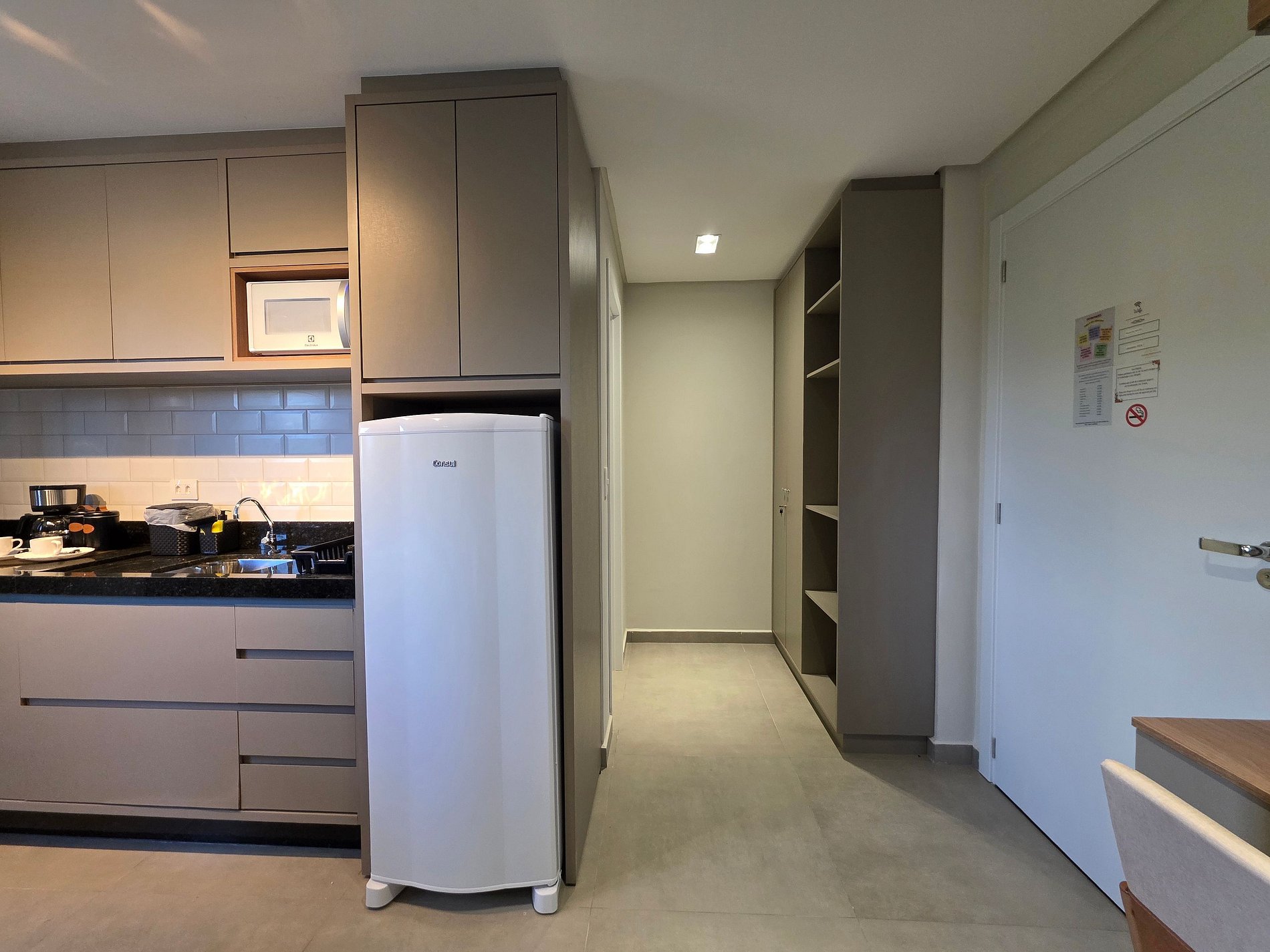 Equipamentos disponíveis: micro-ondas, liquidificador, sanduicheira, cafeteira elétrica e Airfryer.