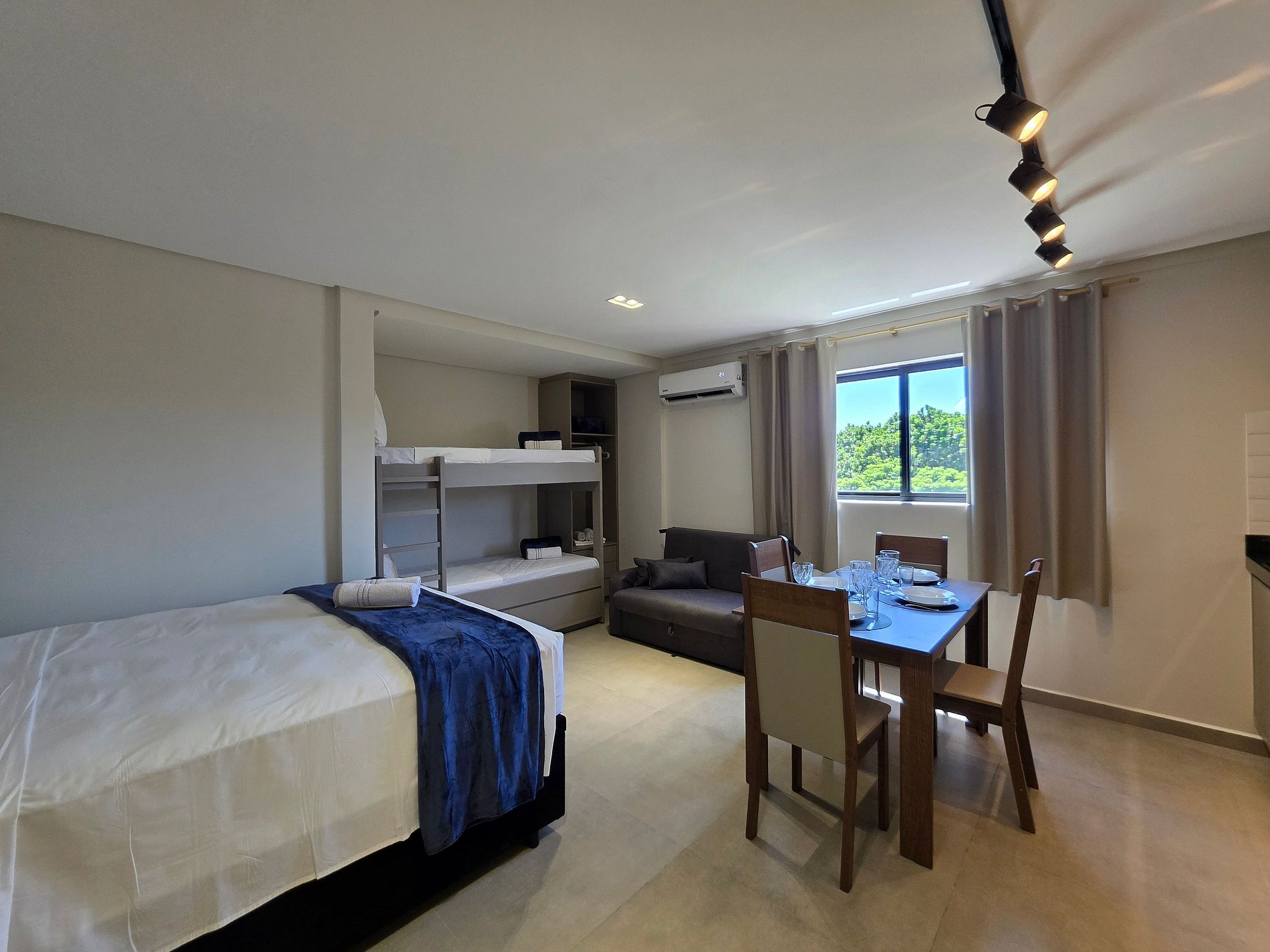 Sinta-se em casa neste studio novo e moderno, localizado no centro de Foz — o ponto de partida perfeito para explorar as Cataratas, o Marco das Três Front. e as cidades vizinhas da Argentina e do Paraguai. Encontrará próximo: farmácia, supermercado e restaurantes. Edificio com elevador - apt 504 no quinto andar. Um dos poucos apartamentos no Edifício com garagem. Conforto, praticidade e charme se encontram para tornar sua estadia inesquecível.