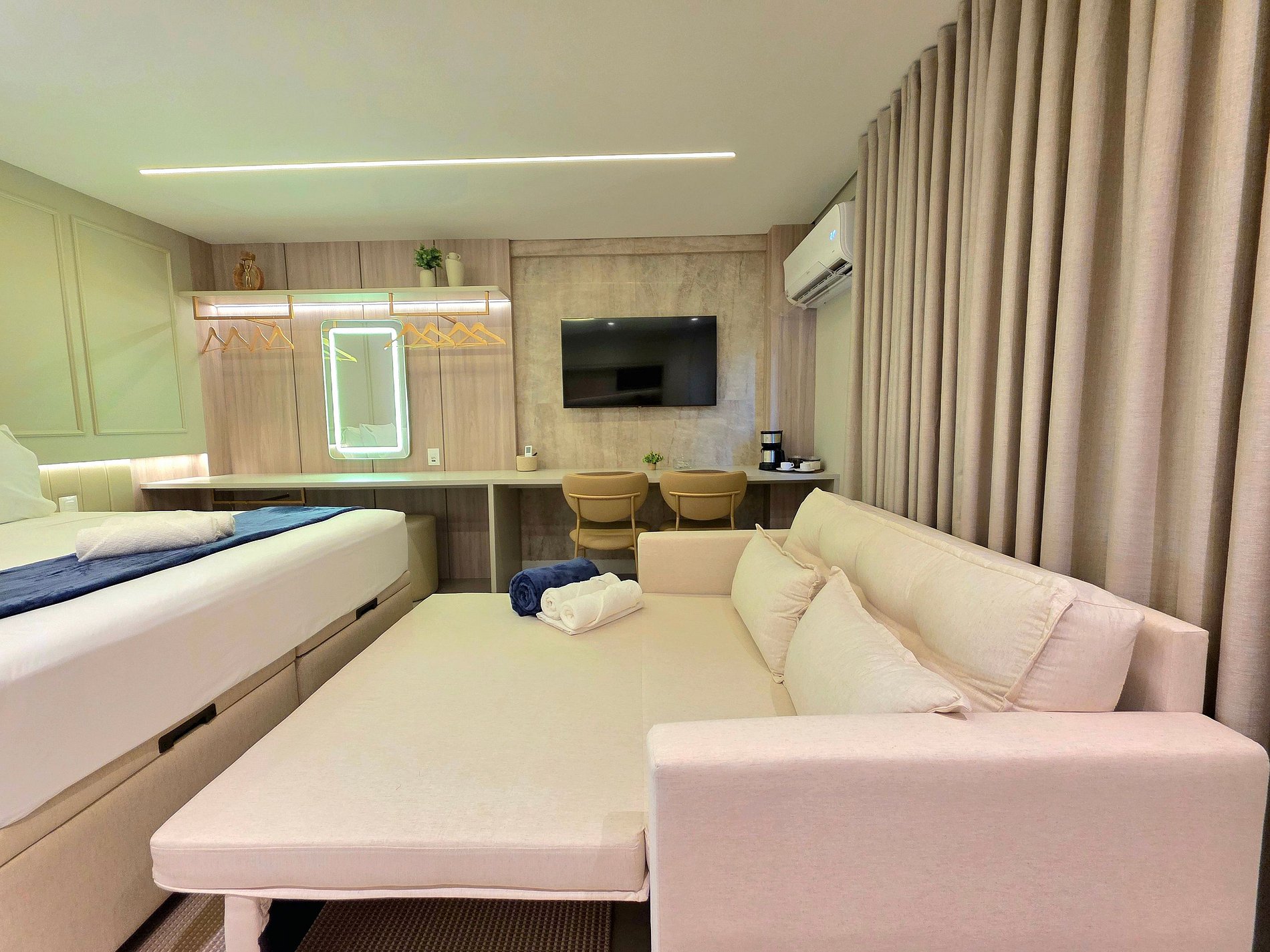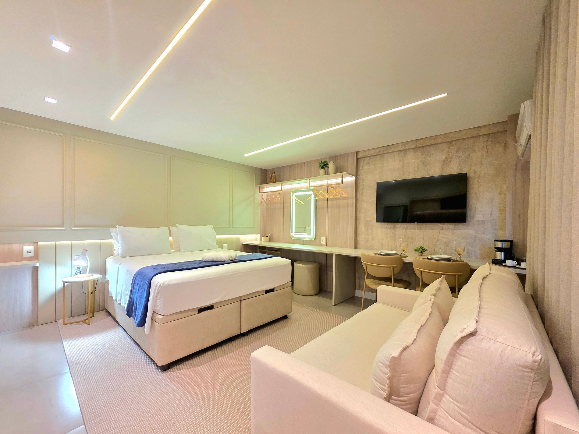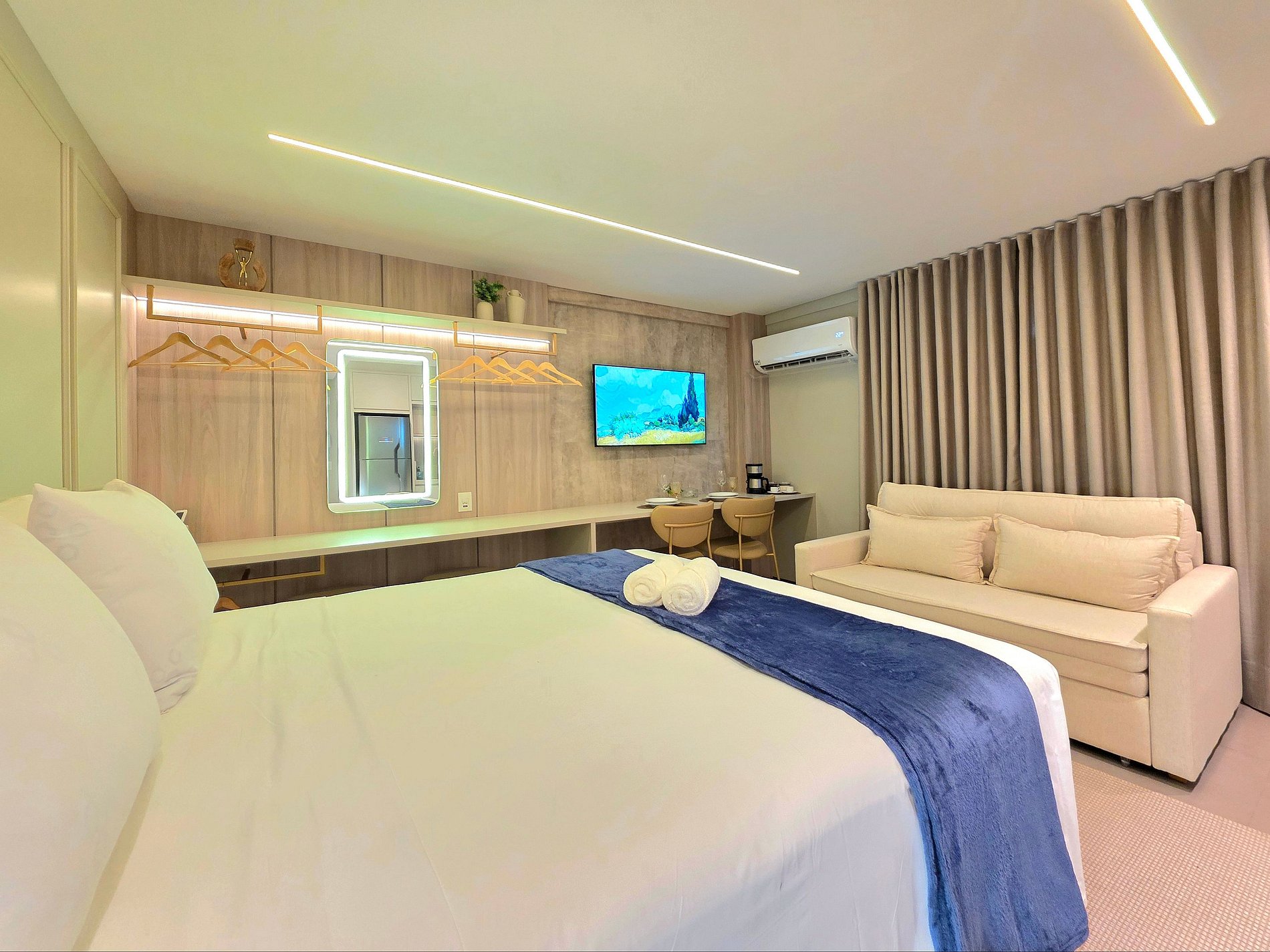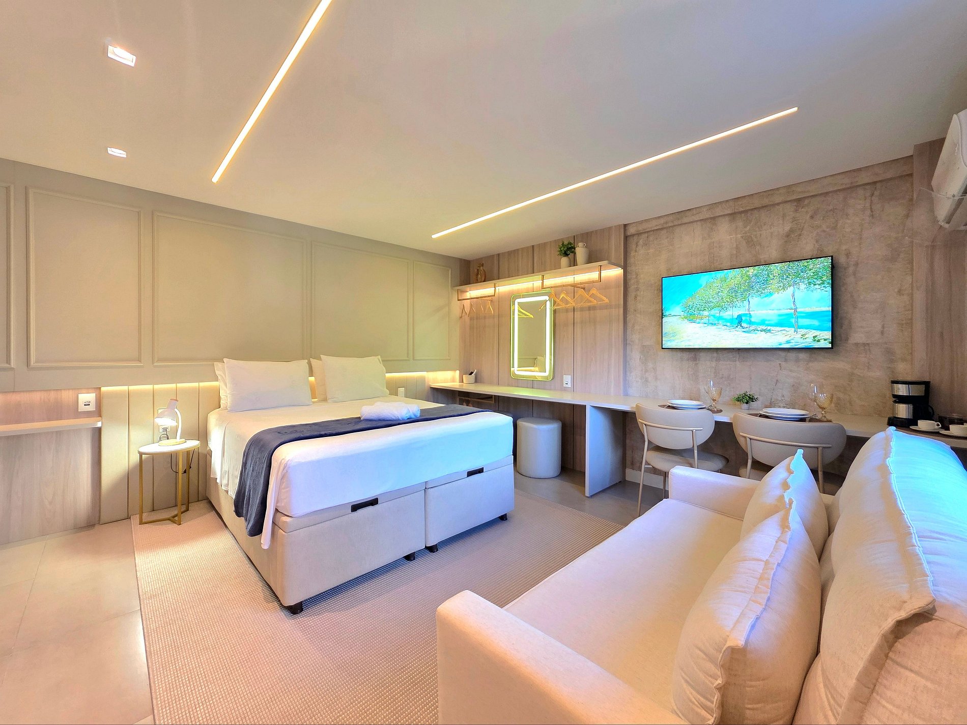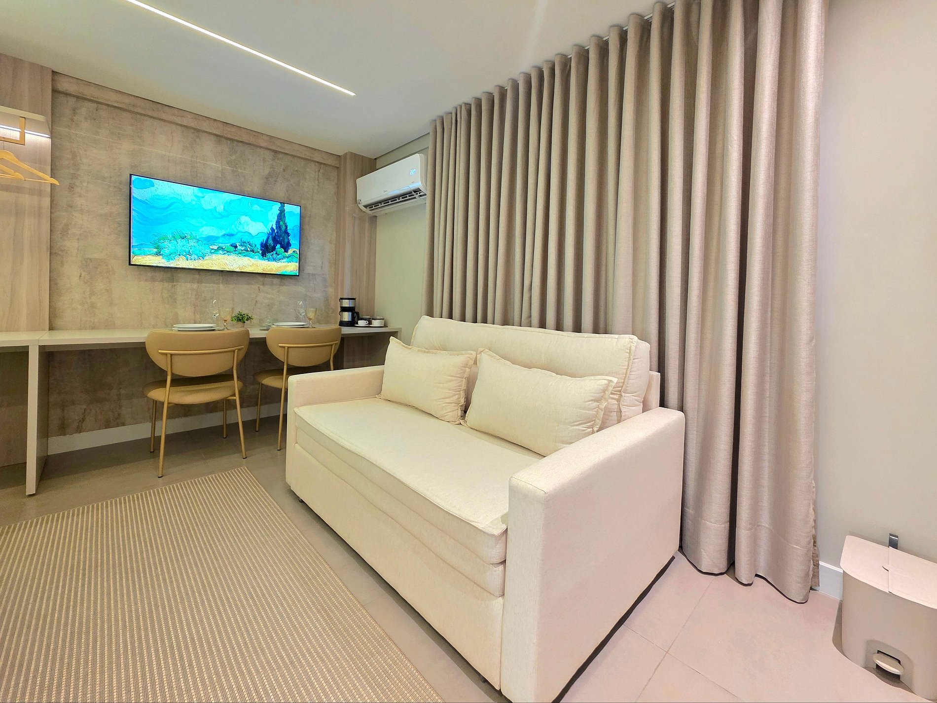 Apartamento Studio novíssimo de alto padrão, onde cada detalhe foi pensado para proporcionar conforto, charme e bem-estar. Finamente mobiliado, climatizado e envolto por uma atmosfera acolhedora, está a poucos passos da principal avenida gastronômica da cidade. Com elevador e vaga de garagem, oferece localização privilegiada, a 10–25 minutos dos principais atrativos. Anfitriões dedicados a proporcionar uma experiência impecável, com atenção a cada detalhe.
