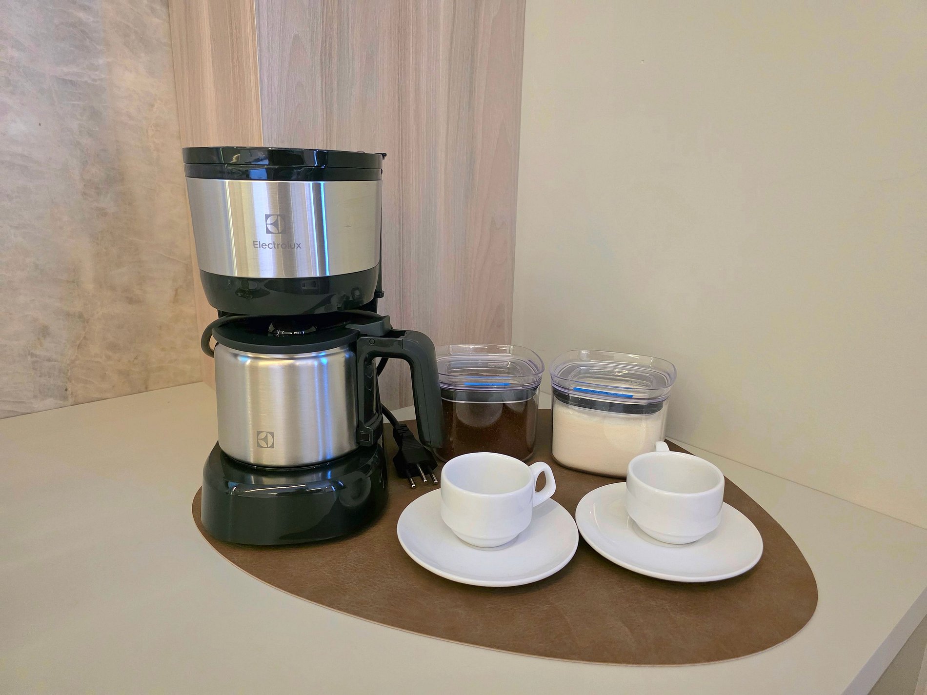 Equipamentos disponíveis: micro-ondas, liquidificador, sanduicheira, cafeteira elétrica.