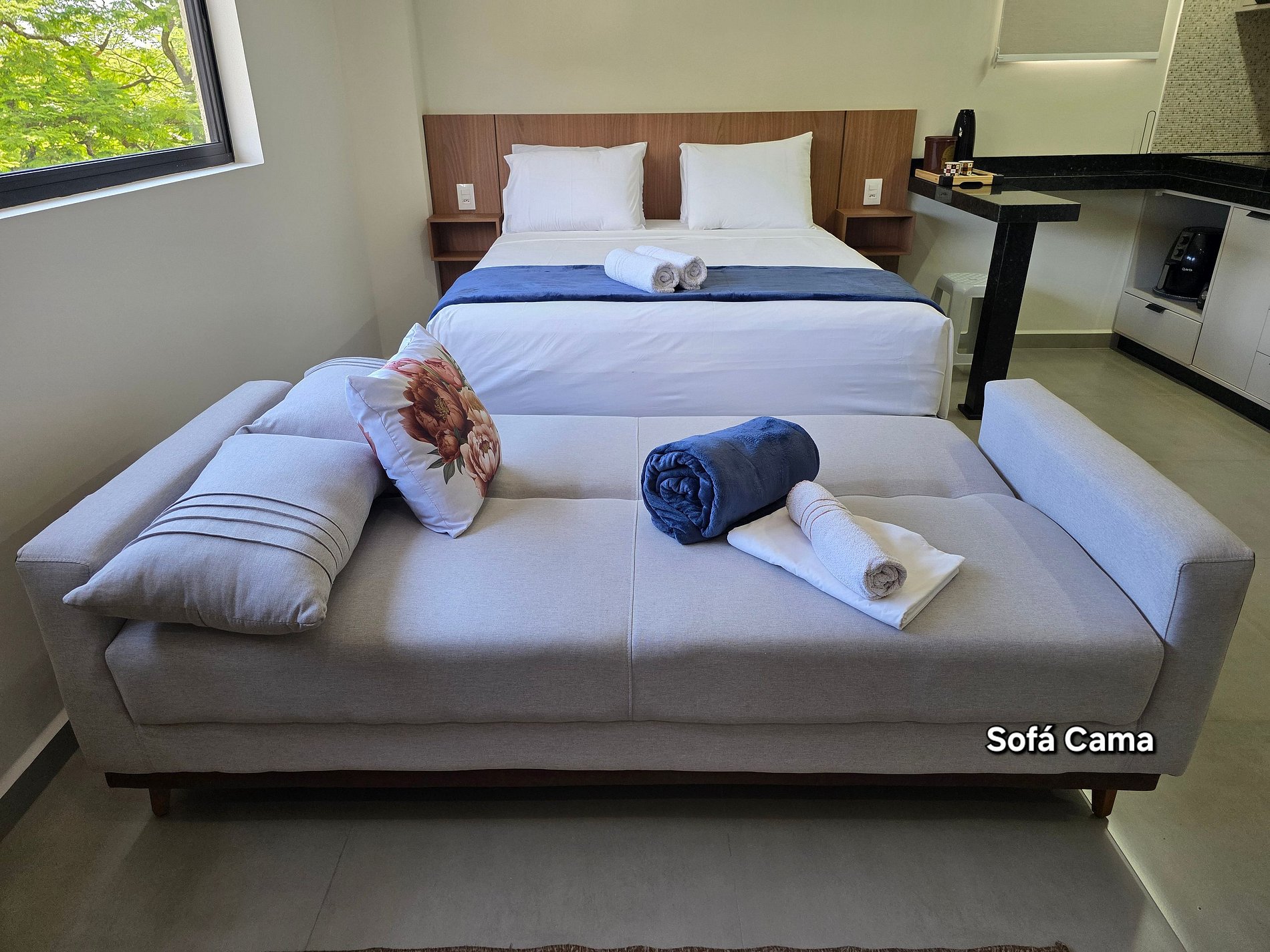 Roupas de cama incluídas para a cama de casal e o sofá cama