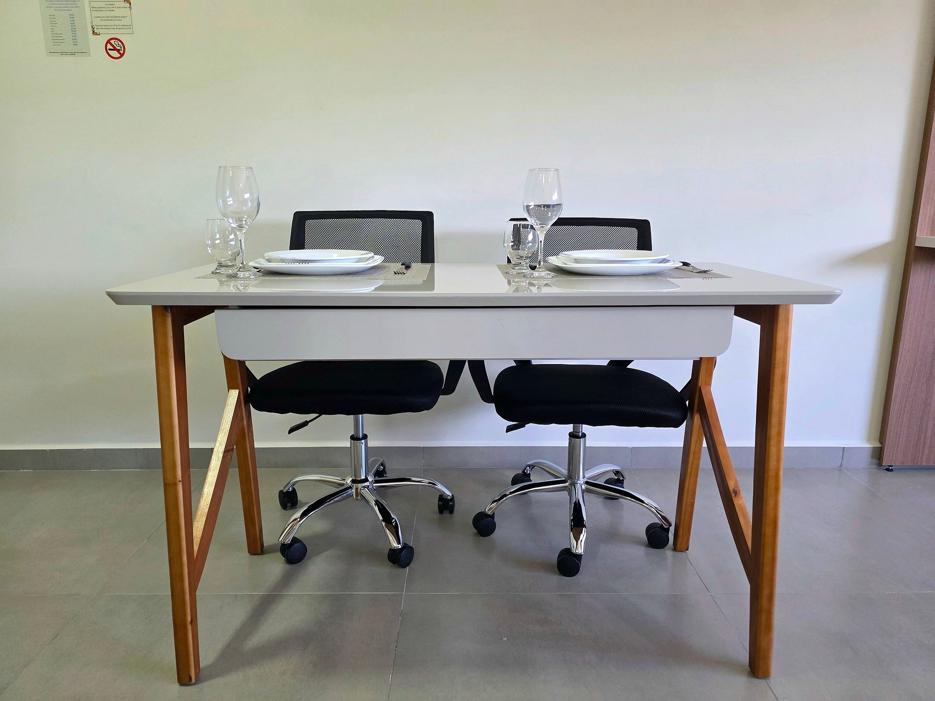 Equipamentos disponíveis: micro-ondas, liquidificador, sanduicheira, cafeteira elétrica.