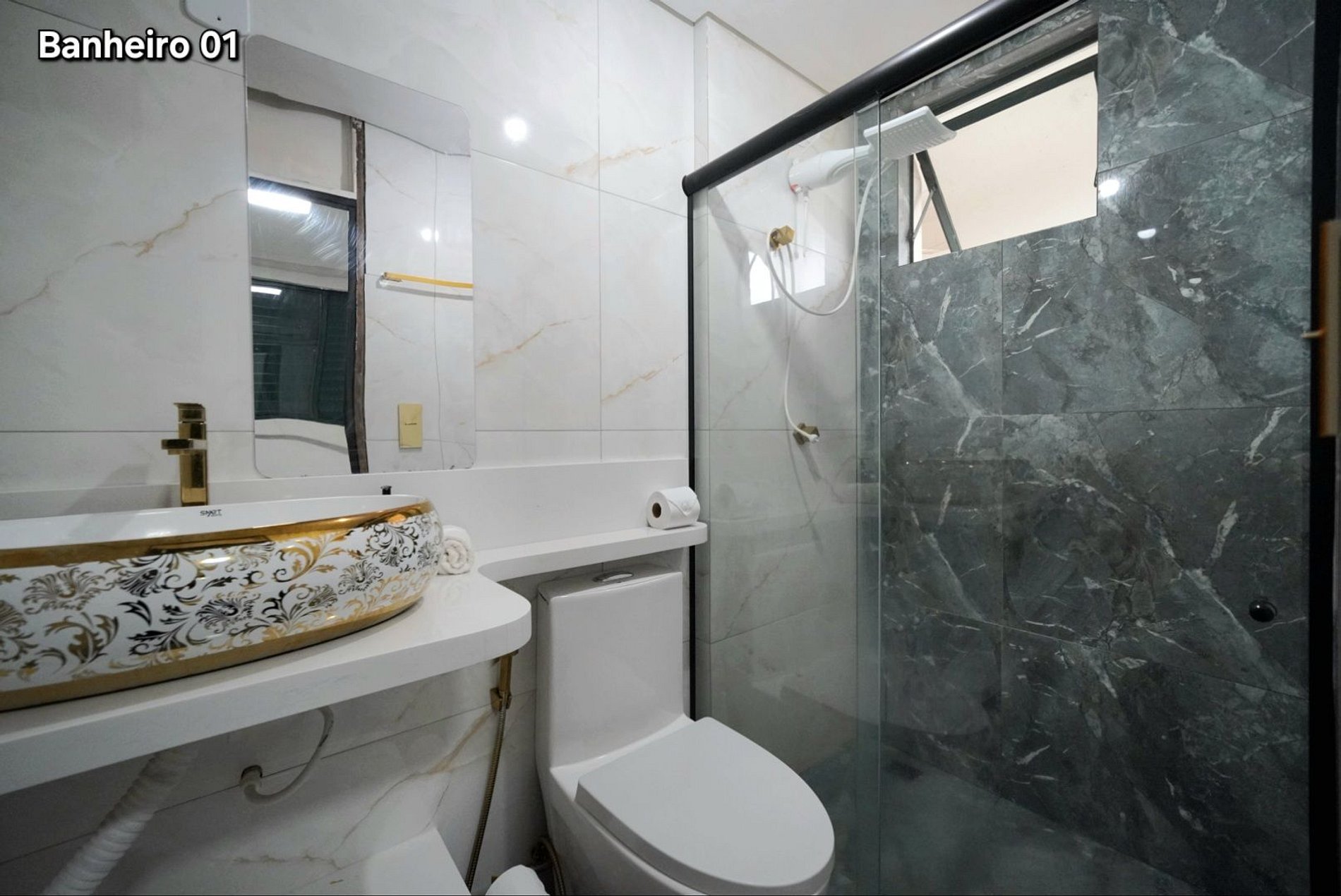 02 banheiros completo sendo 01 na suíte.