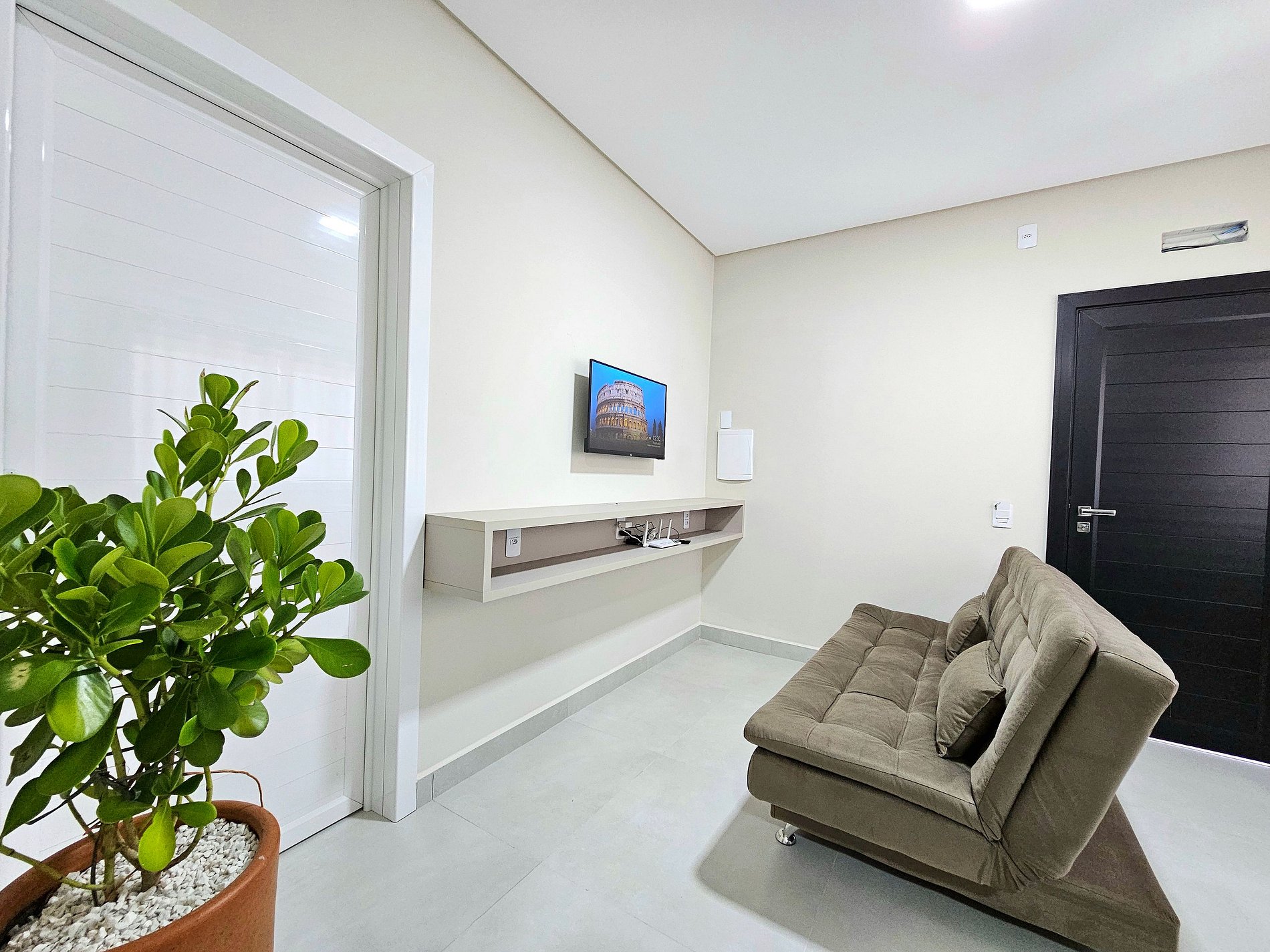 Quarto 01: 01 cama de casal + 01 sofá cama de qualidade na sala (deixamos roupas de cama para ele também)