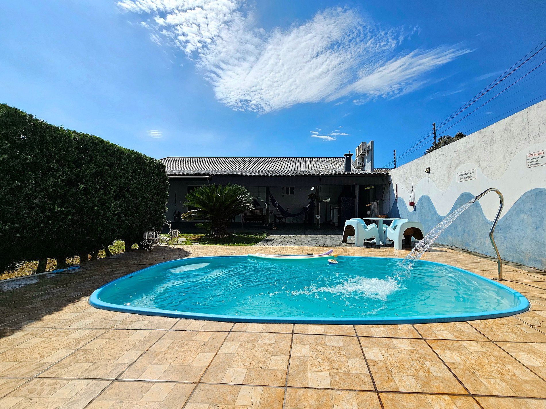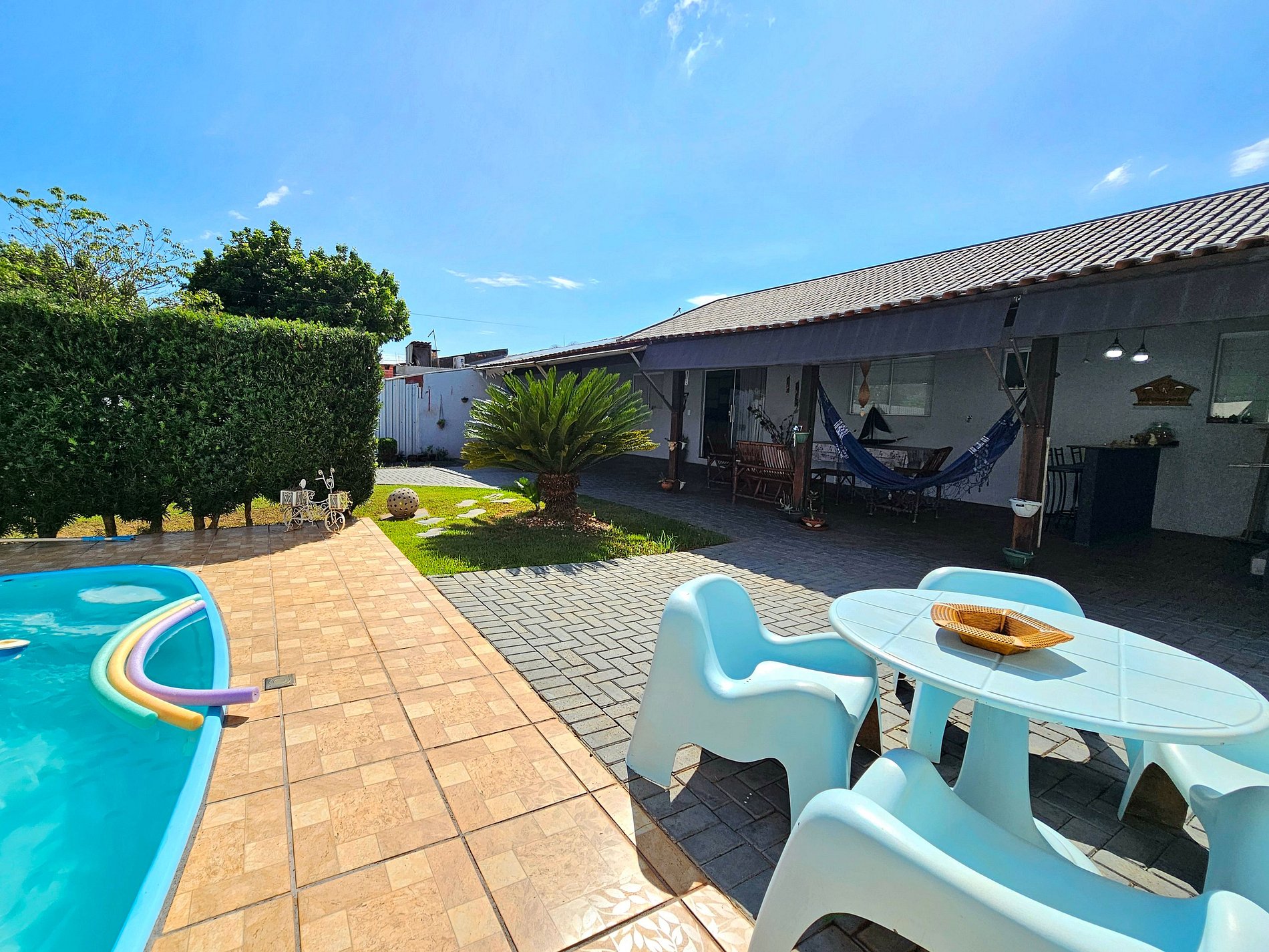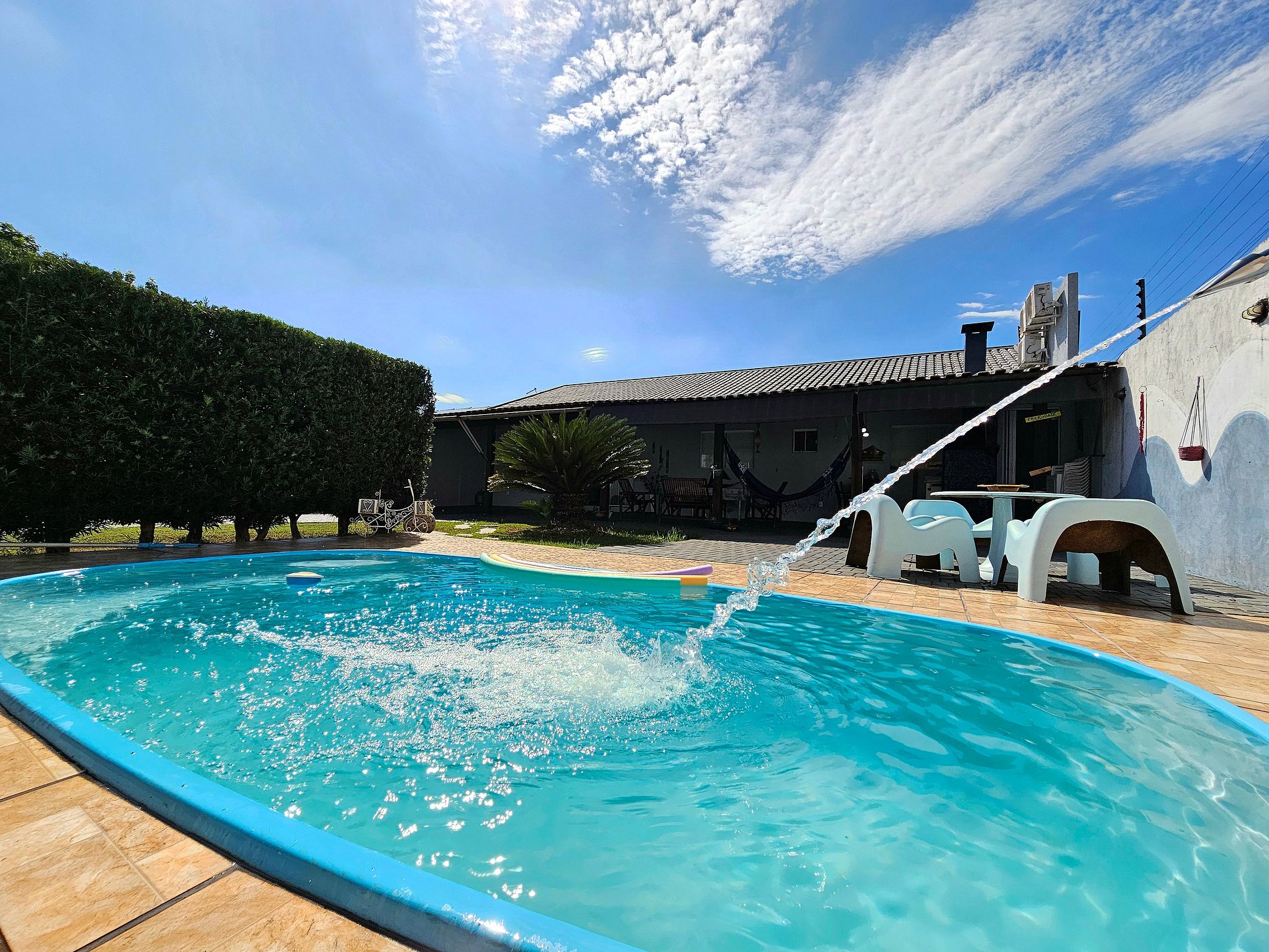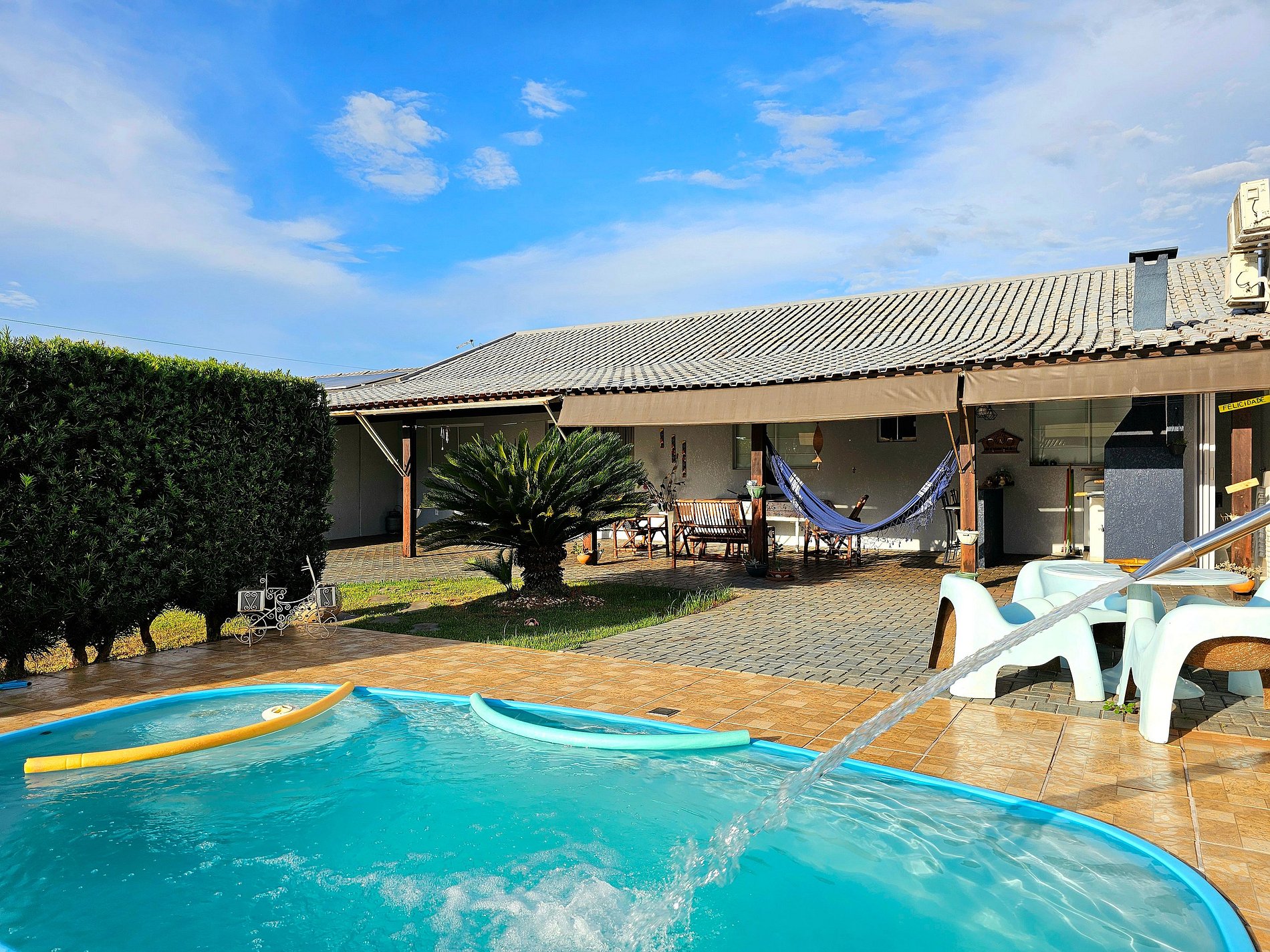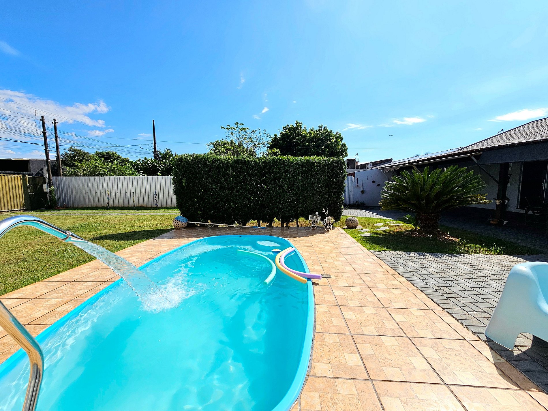 Ótima propriedade para famílias com um quintal super amplo com piscina e churrasqueira, ideal para crianças e Pets.15 minutos das Cataratas, 5 minutos do Centro e Argentina, 15 a 20 minutos do Paraguai. Para até 8 pessoas, com uma suíte e outro quartos, temos 3 banheiros completos. Com roupa de cama e toalha de banho. Equipada com utensílios. Garagem com portão eletrônico e Wi-Fi. Bairro seguro com supermercado. Somos anfitriões comprometidos com você.