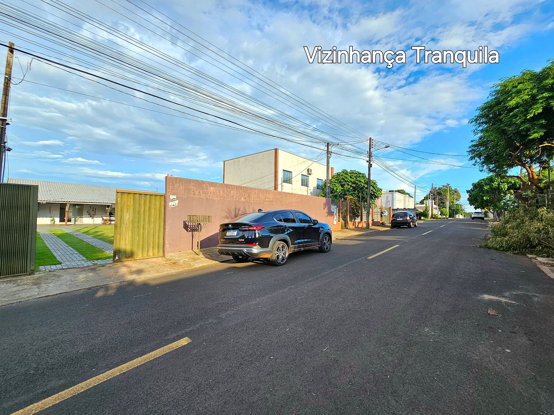 Garagem grande com portão eletrônico.